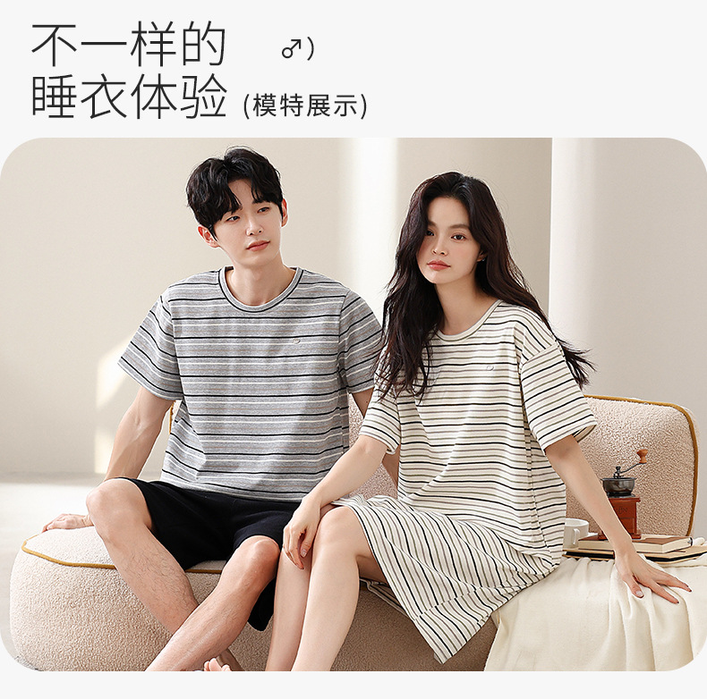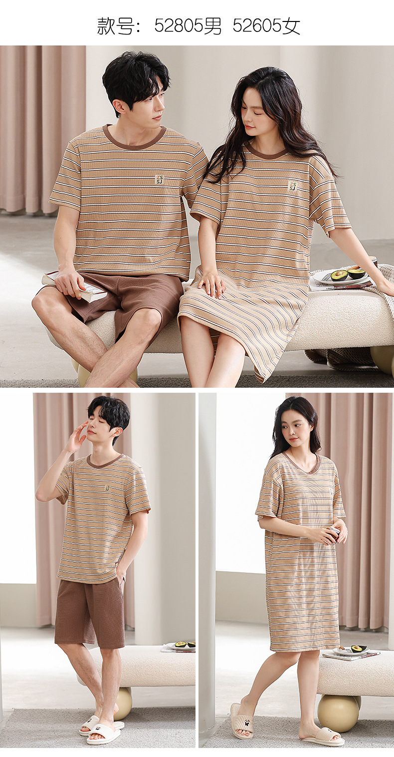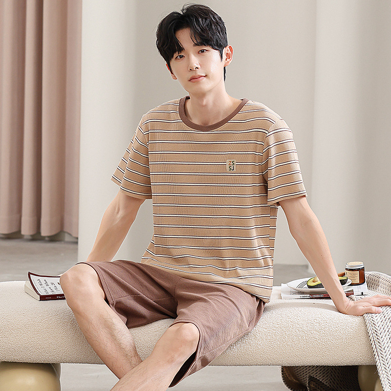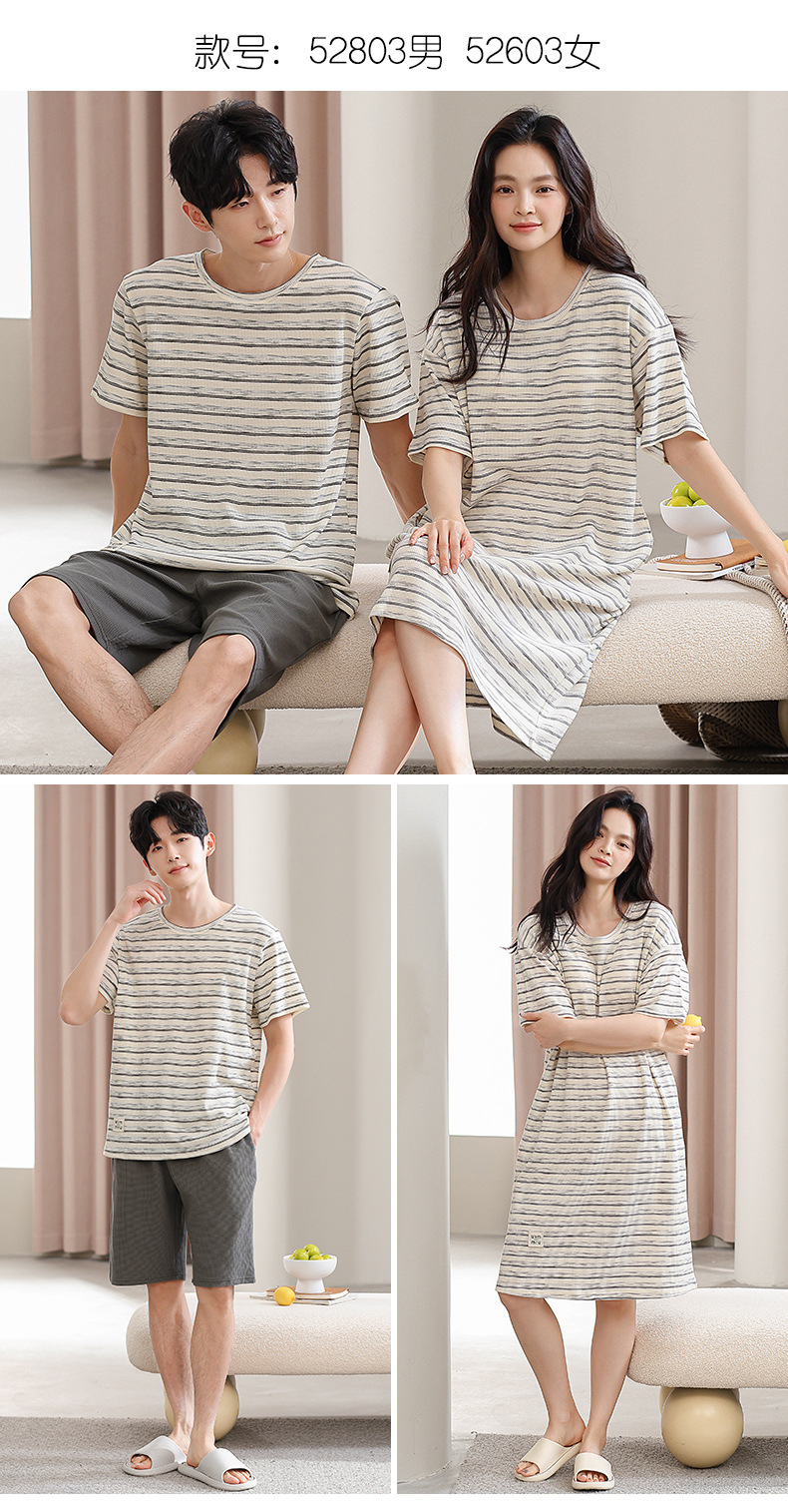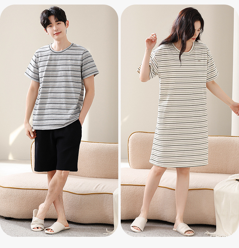 2025년 여름 신상 잠옷, 순면 와플 커플 스타일 남성 반바지, 여성 잠옷, 스트라이프 홈웨어스토어 가기