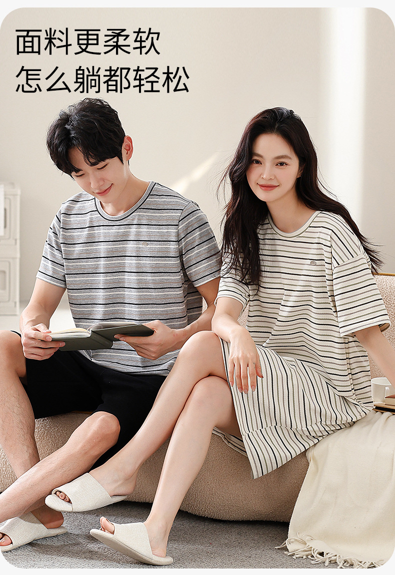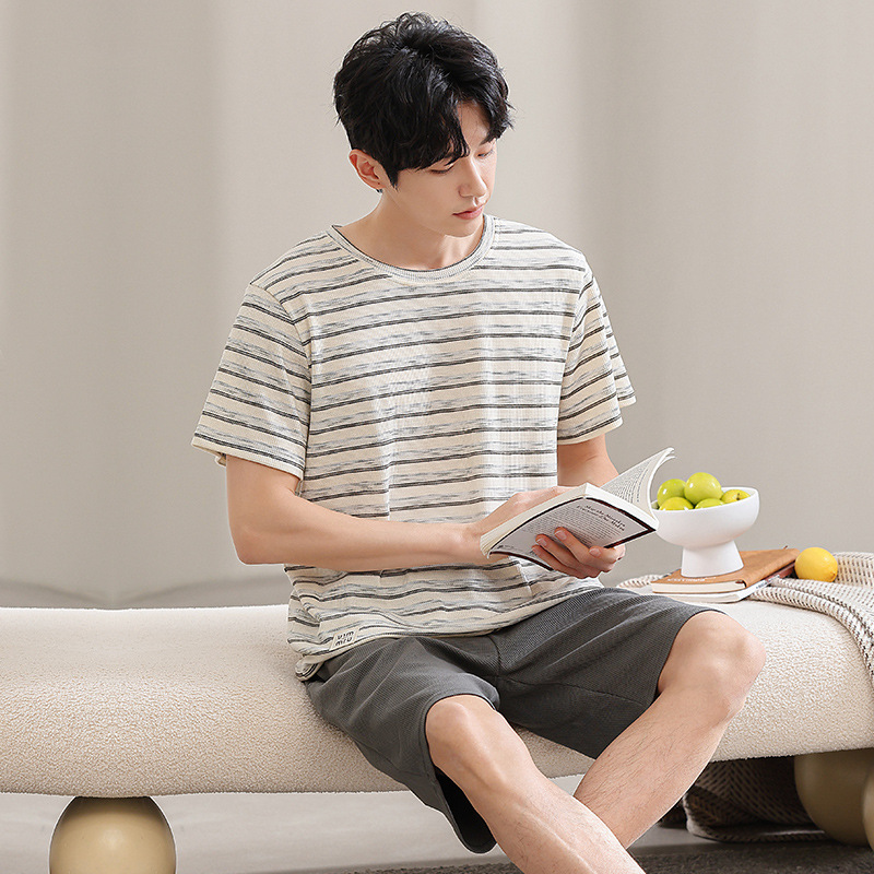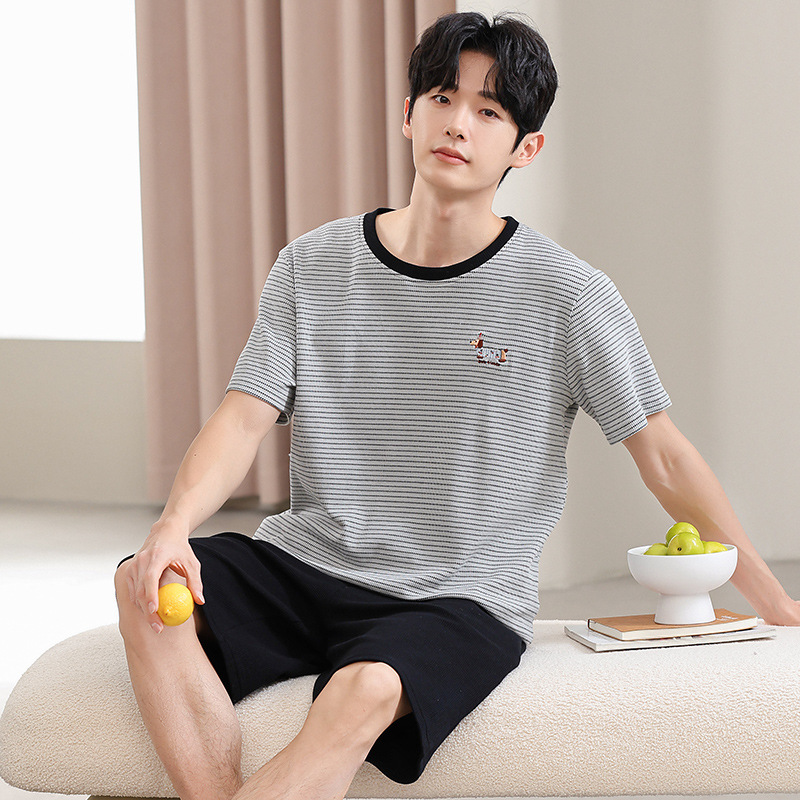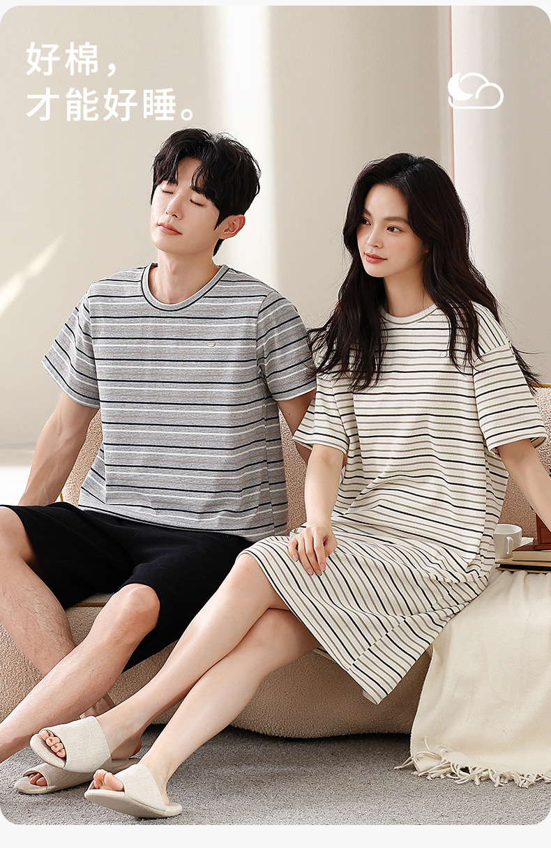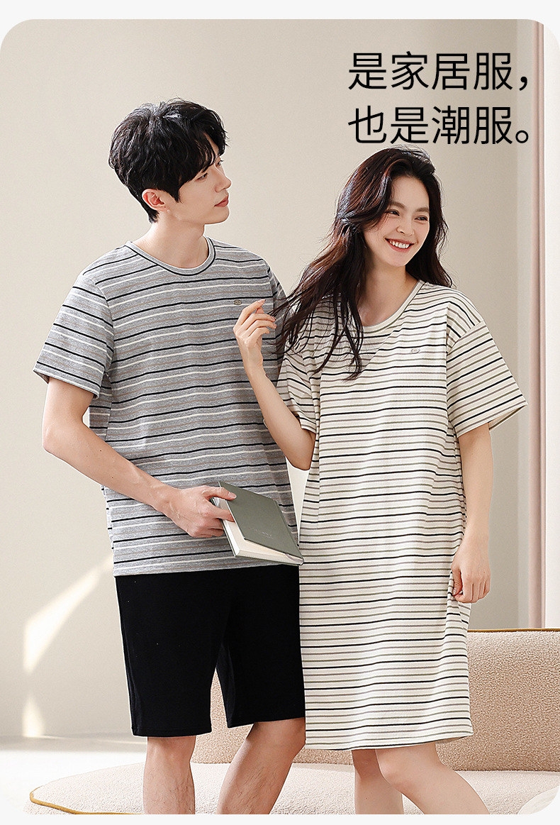 2025년 여름 신상 잠옷, 순면 와플 커플 스타일 남성 반바지, 여성 잠옷, 스트라이프 홈웨어스토어 가기