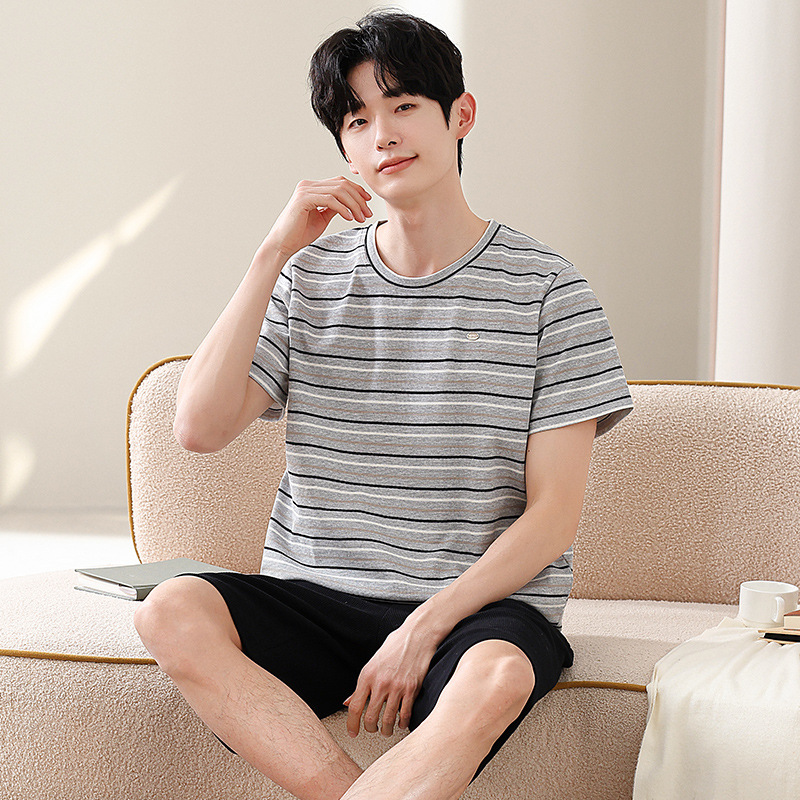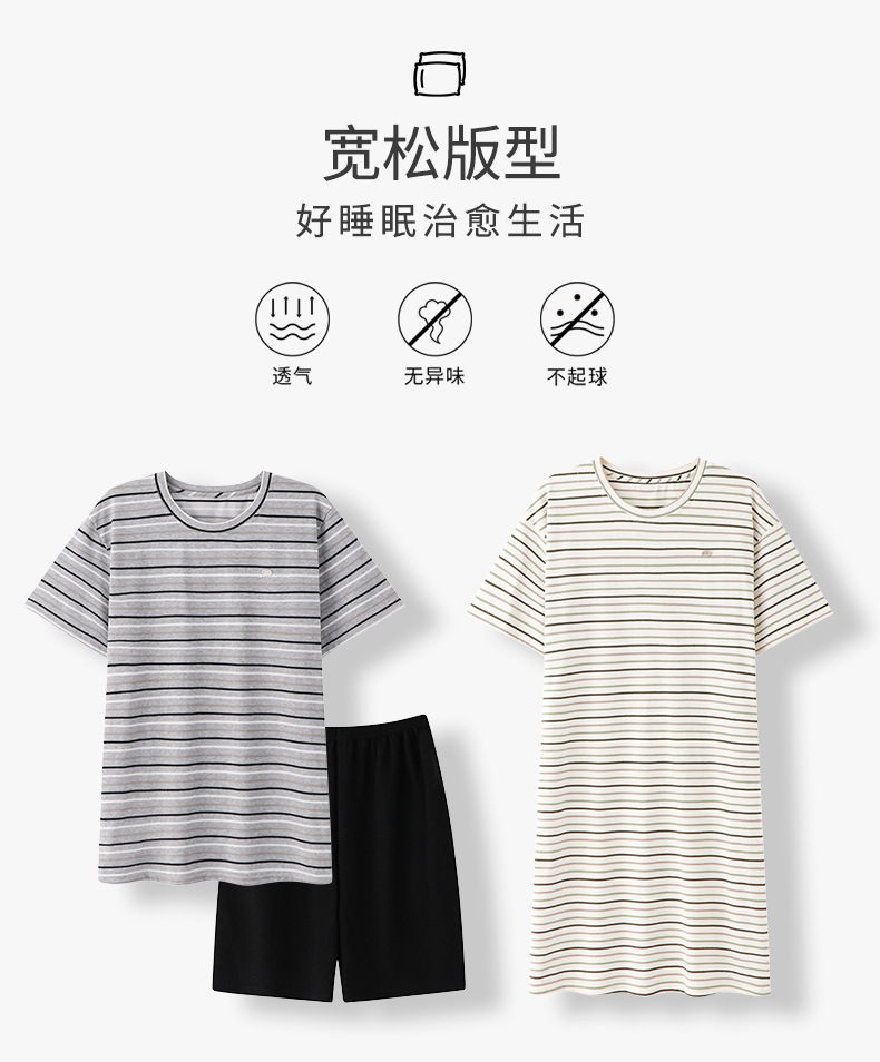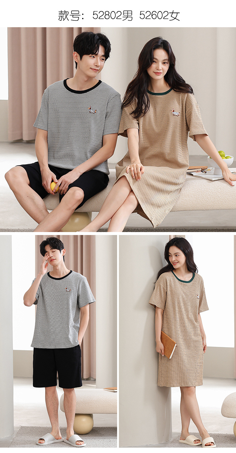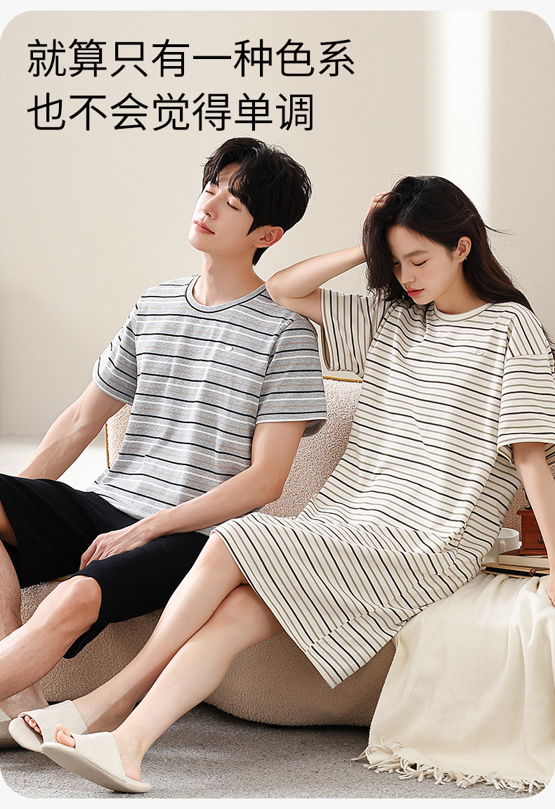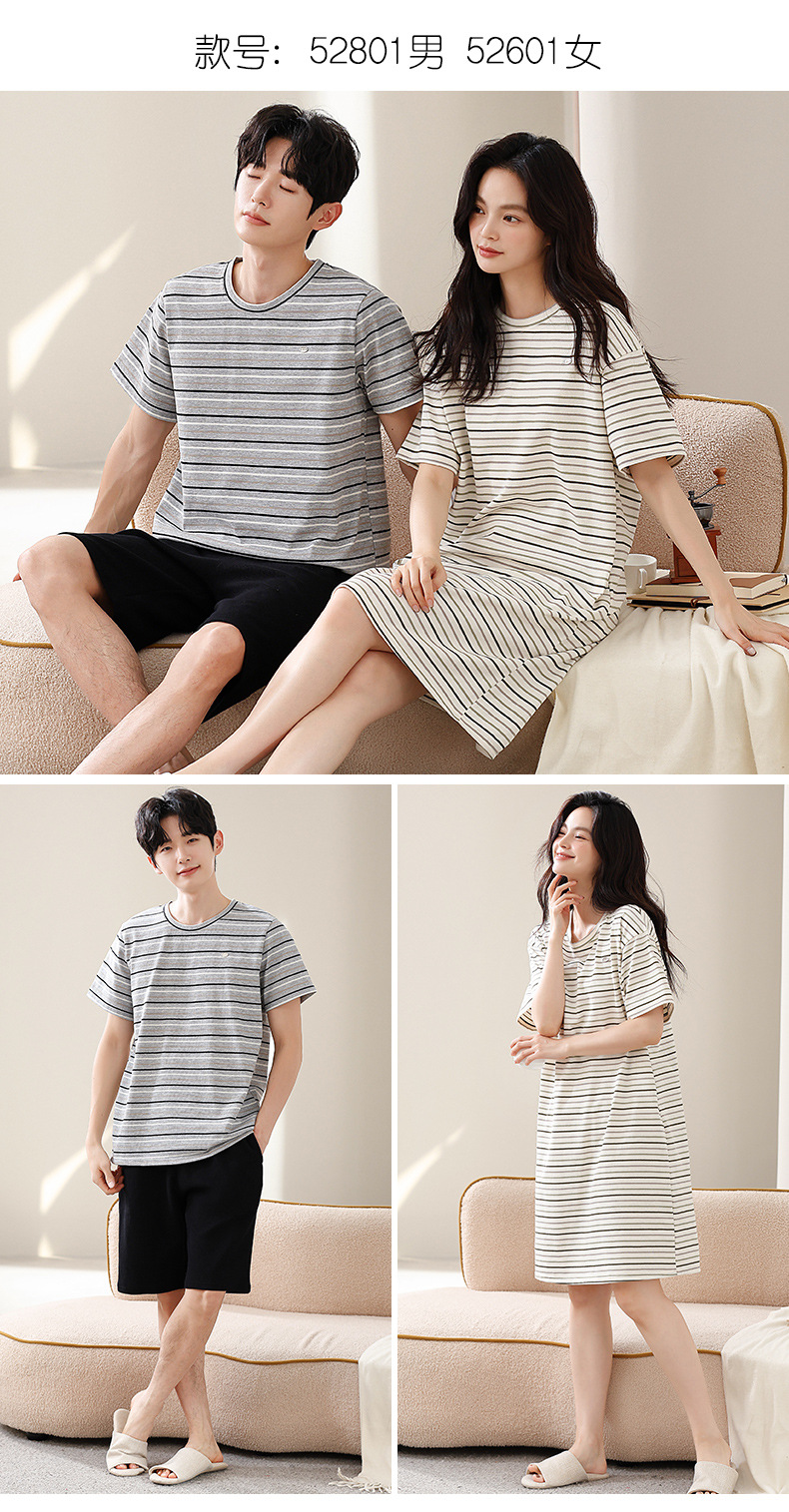 2025년 여름 신상 잠옷, 순면 와플 커플 스타일 남성 반바지, 여성 잠옷, 스트라이프 홈웨어스토어 가기