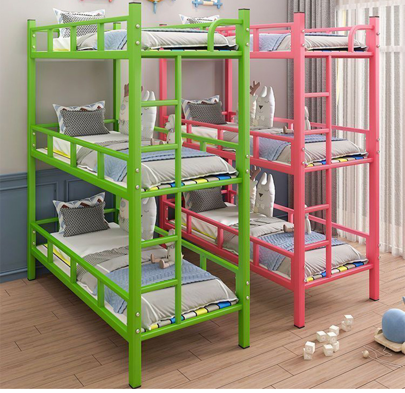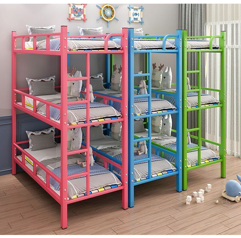 어린이 침대 이층 침대 제조 업체 도매 어린이 상단, 중간 및 하단 침대 학생 3 층 철제 프레임 침대 다양한 색상 철제 침대