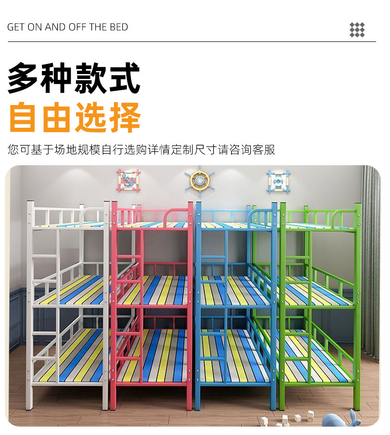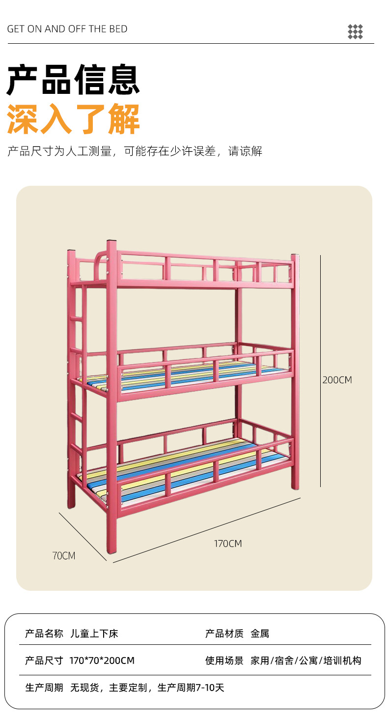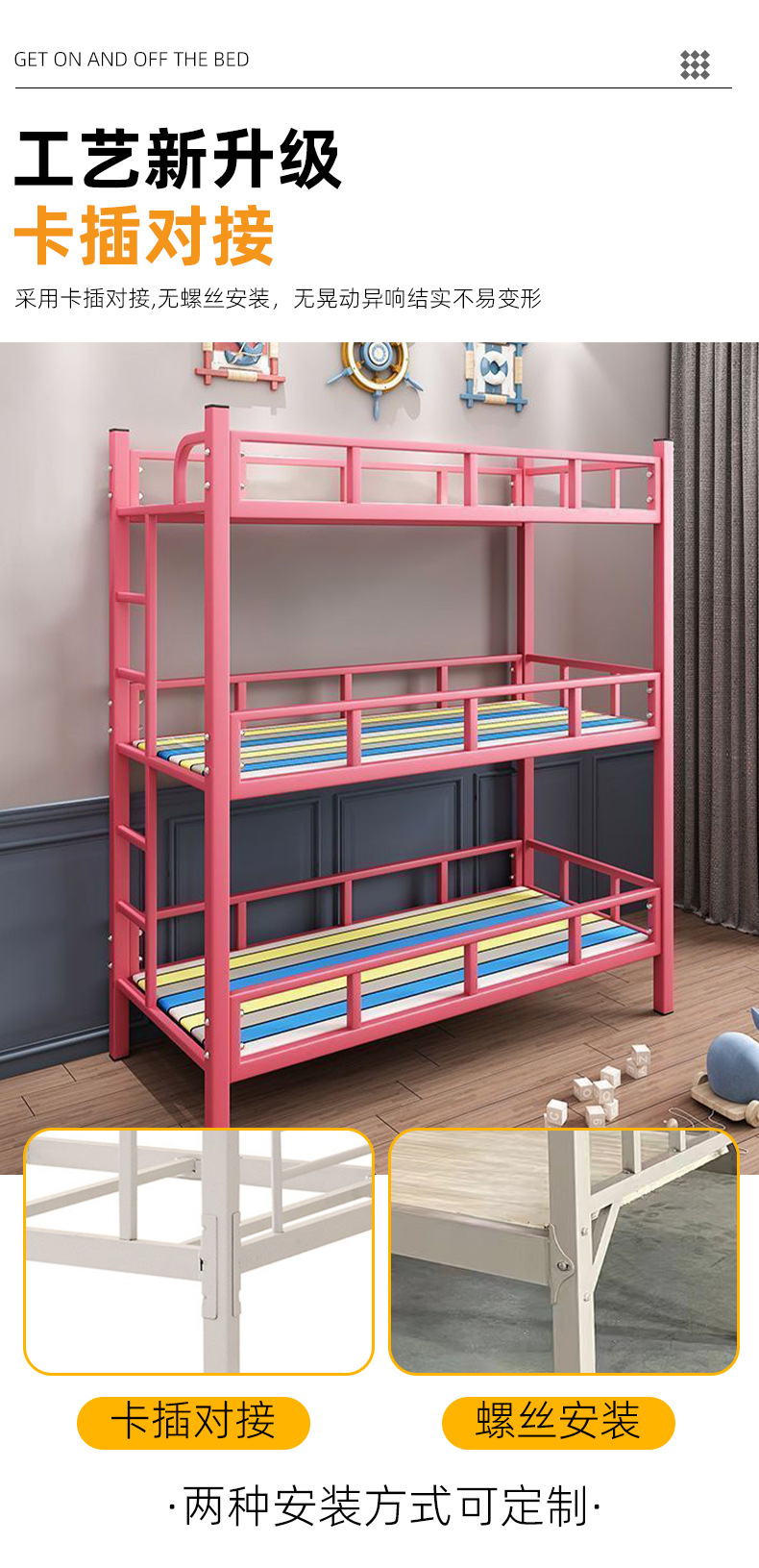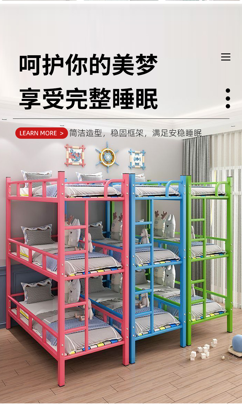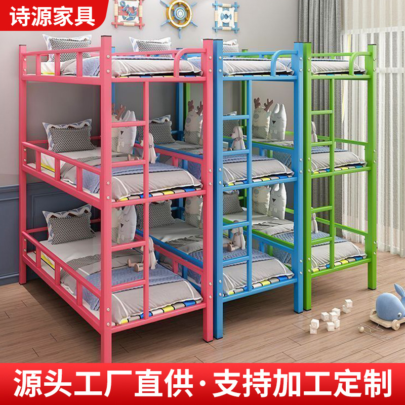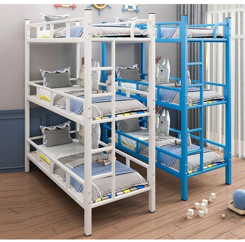 어린이 침대 이층 침대 제조 업체 도매 어린이 상단, 중간 및 하단 침대 학생 3 층 철제 프레임 침대 다양한 색상 철제 침대스토어 가기
