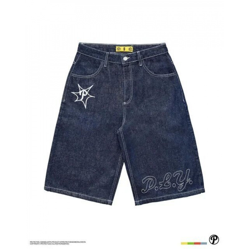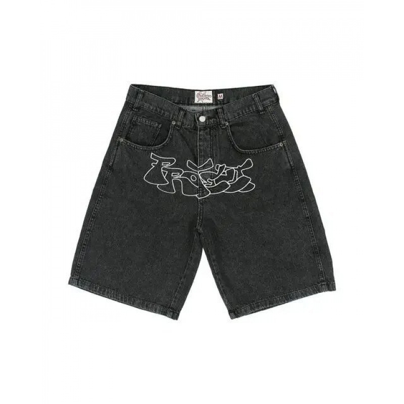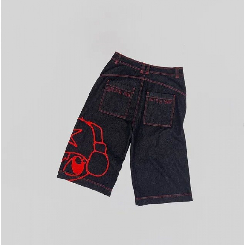 스트리트 반바지 Y2K 바지 하라주쿠 힙합 프린트 루즈 데님 반바지 여름 뉴 고딕 남성 반바지