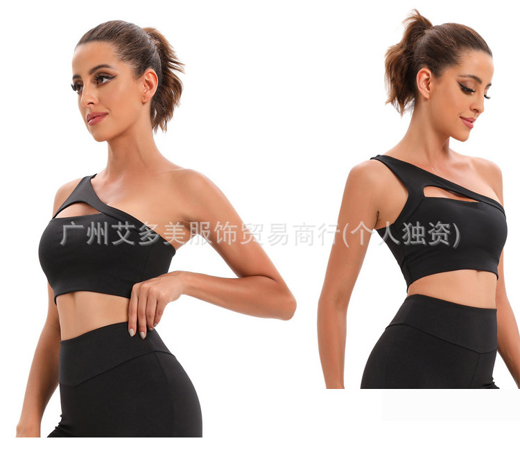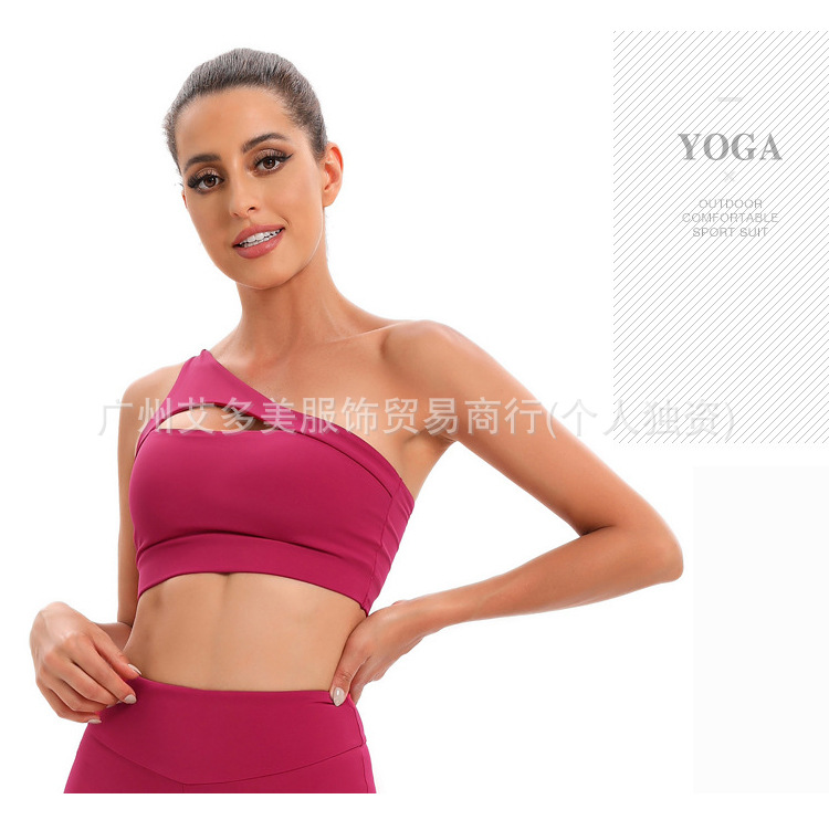 Aloyoga 브래지어 대외 무역 섹시 할로우 원 숄더 조끼 여성 누드 아름다운 등 충격 방지 피트니스 속옷