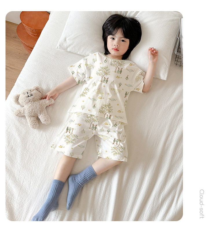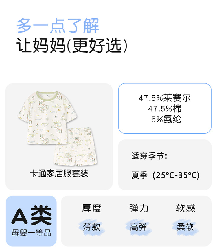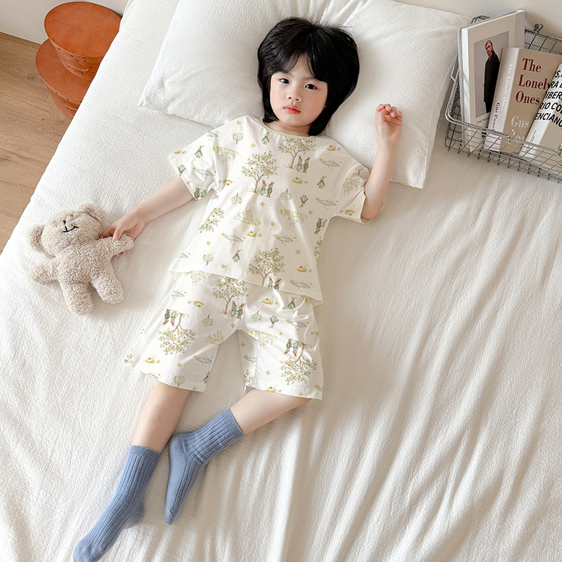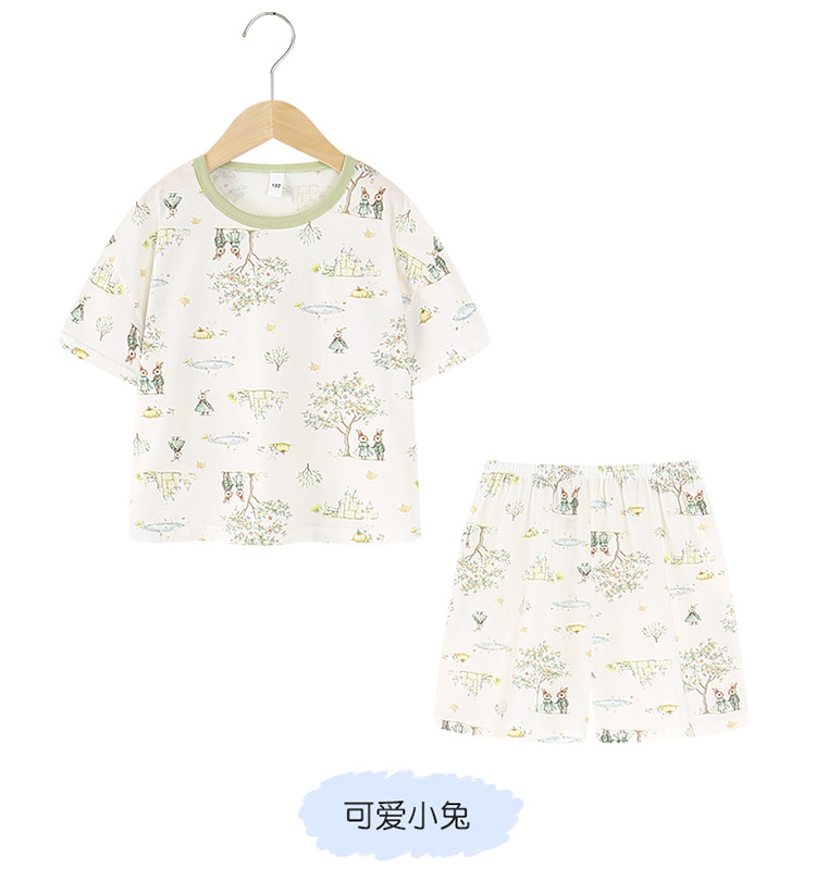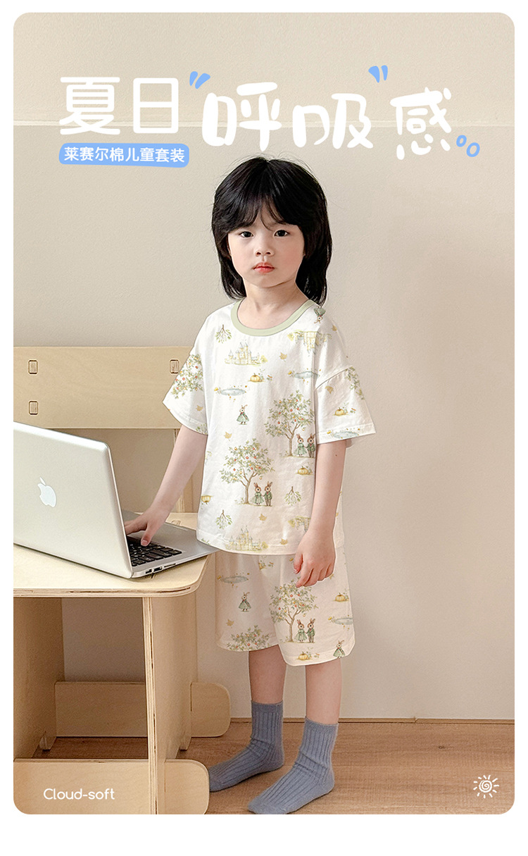 아동 잠옷 여름 리오셀 면 반팔 반바지 정장 소년 라운드 넥 세트 소녀 아기 에어컨 가정복