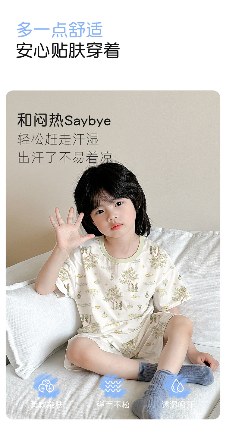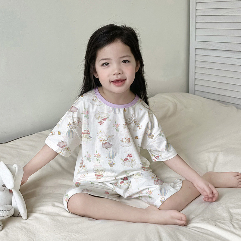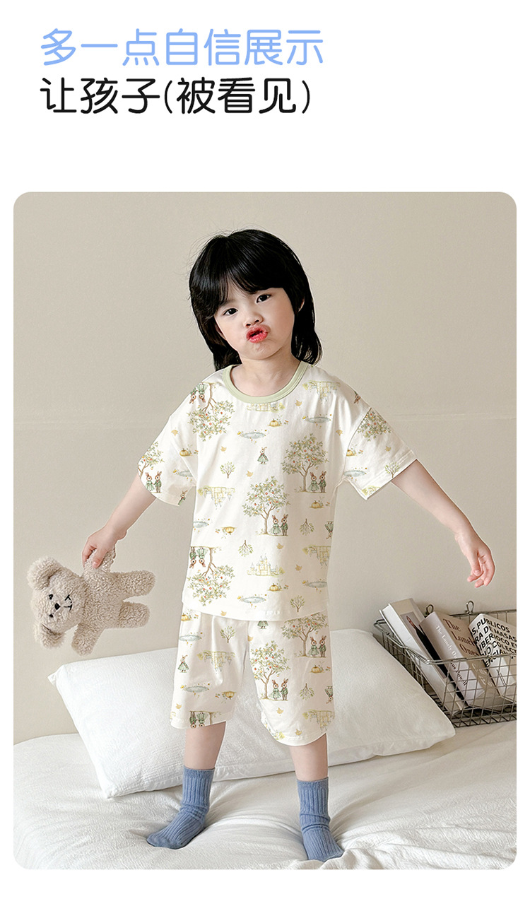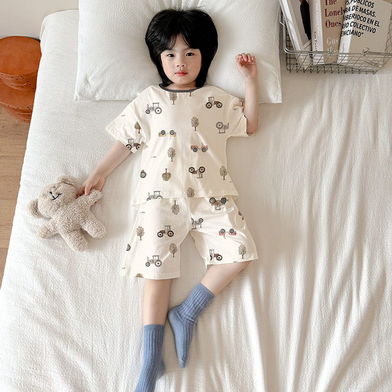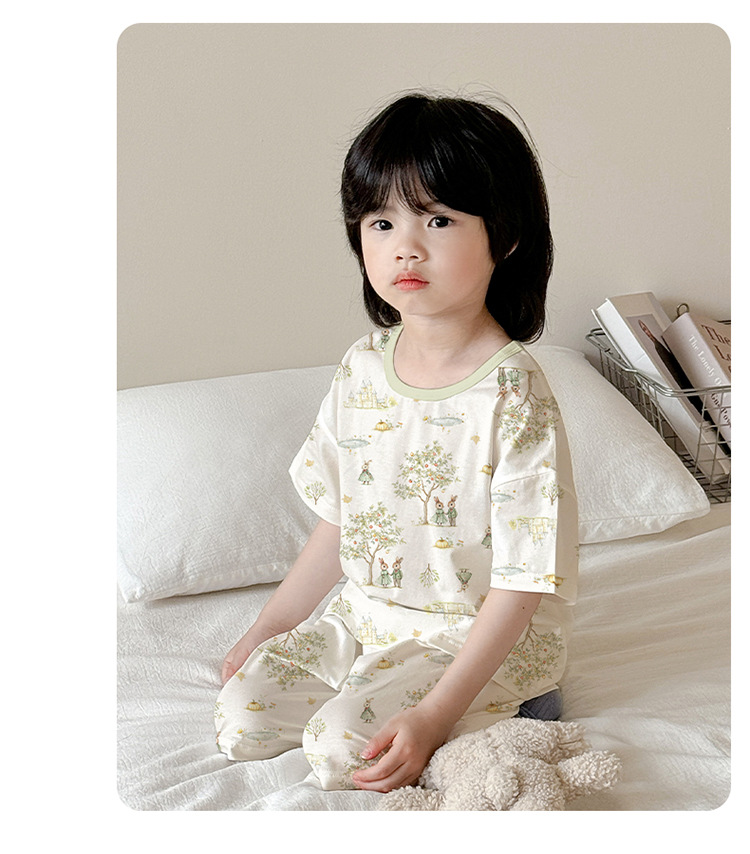 아동 잠옷 여름 리오셀 면 반팔 반바지 정장 소년 라운드 넥 세트 소녀 아기 에어컨 가정복스토어 가기
