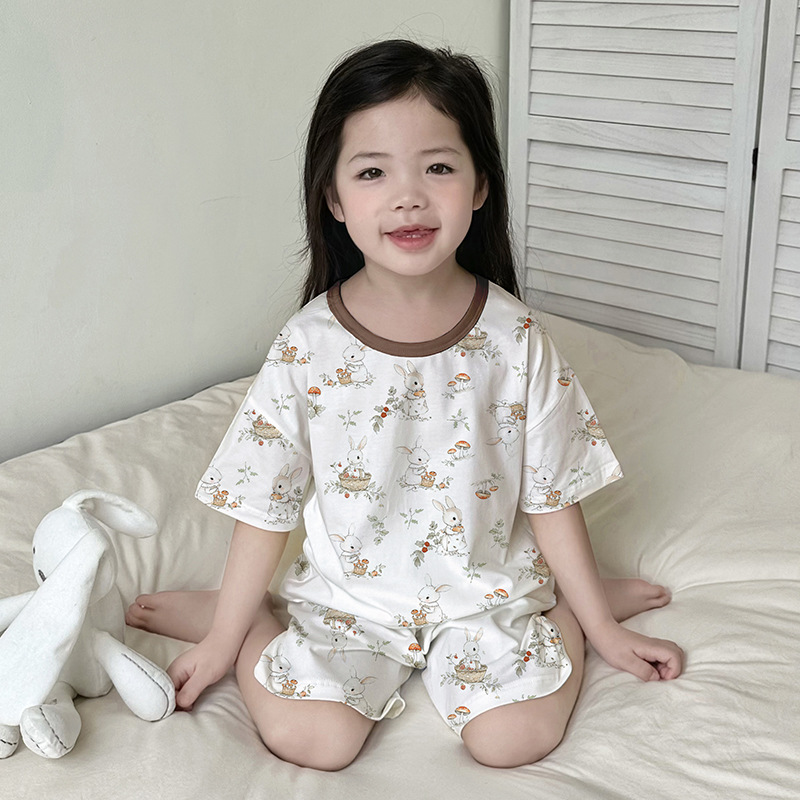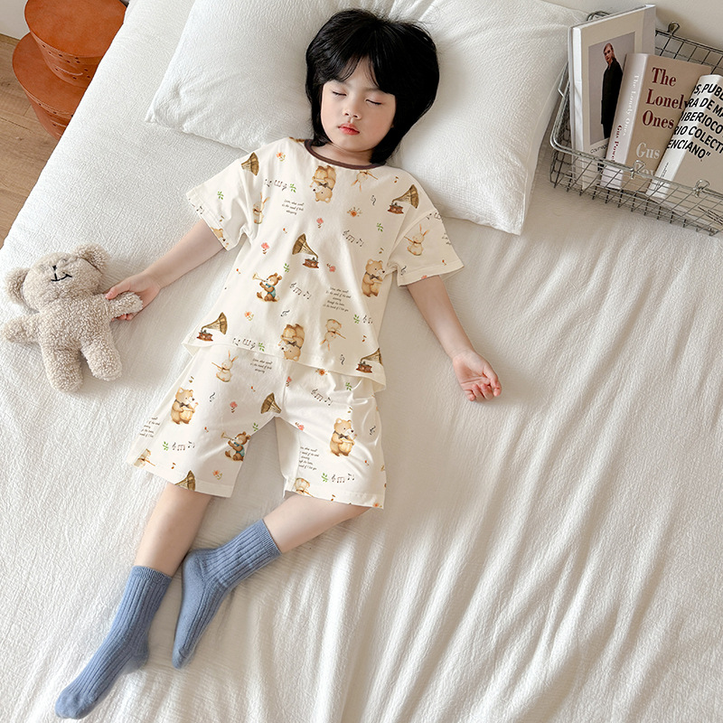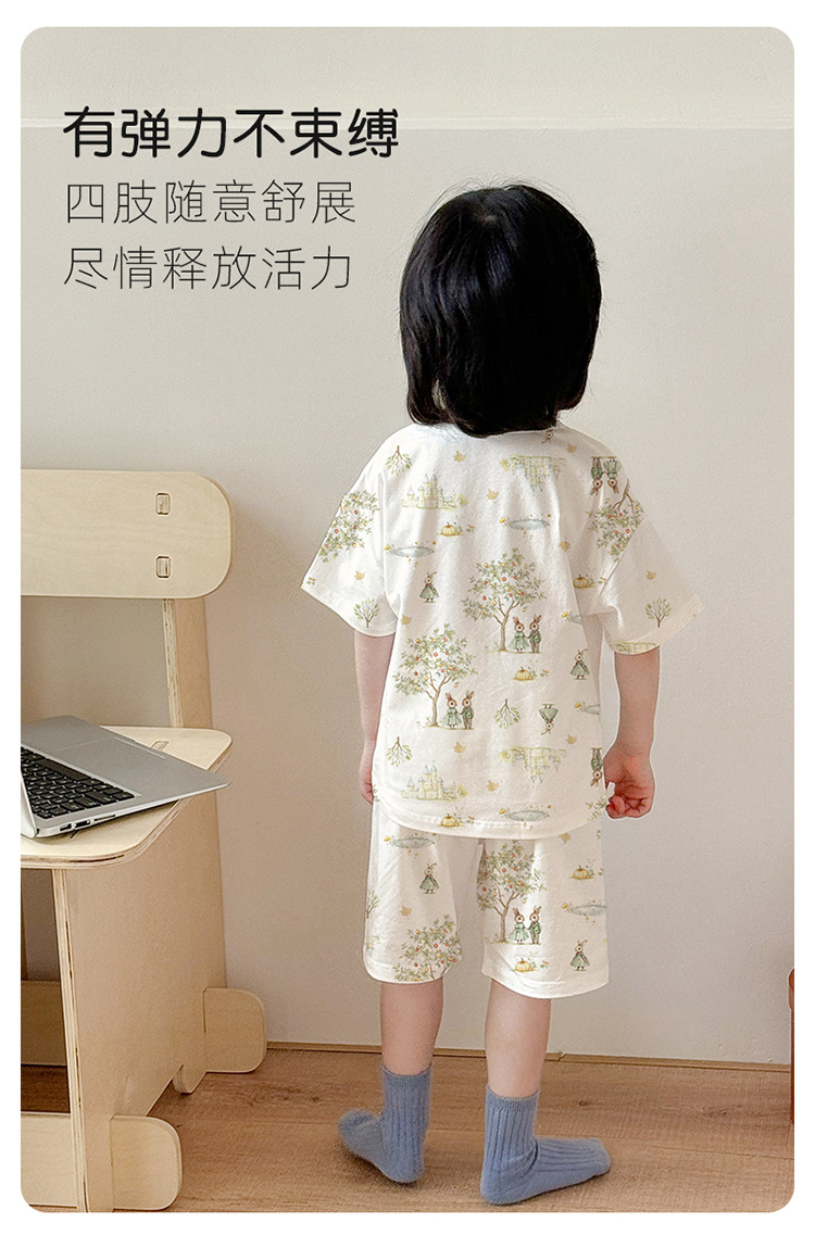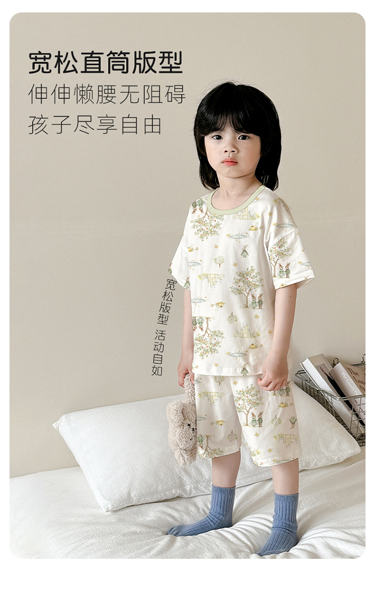 아동 잠옷 여름 리오셀 면 반팔 반바지 정장 소년 라운드 넥 세트 소녀 아기 에어컨 가정복스토어 가기