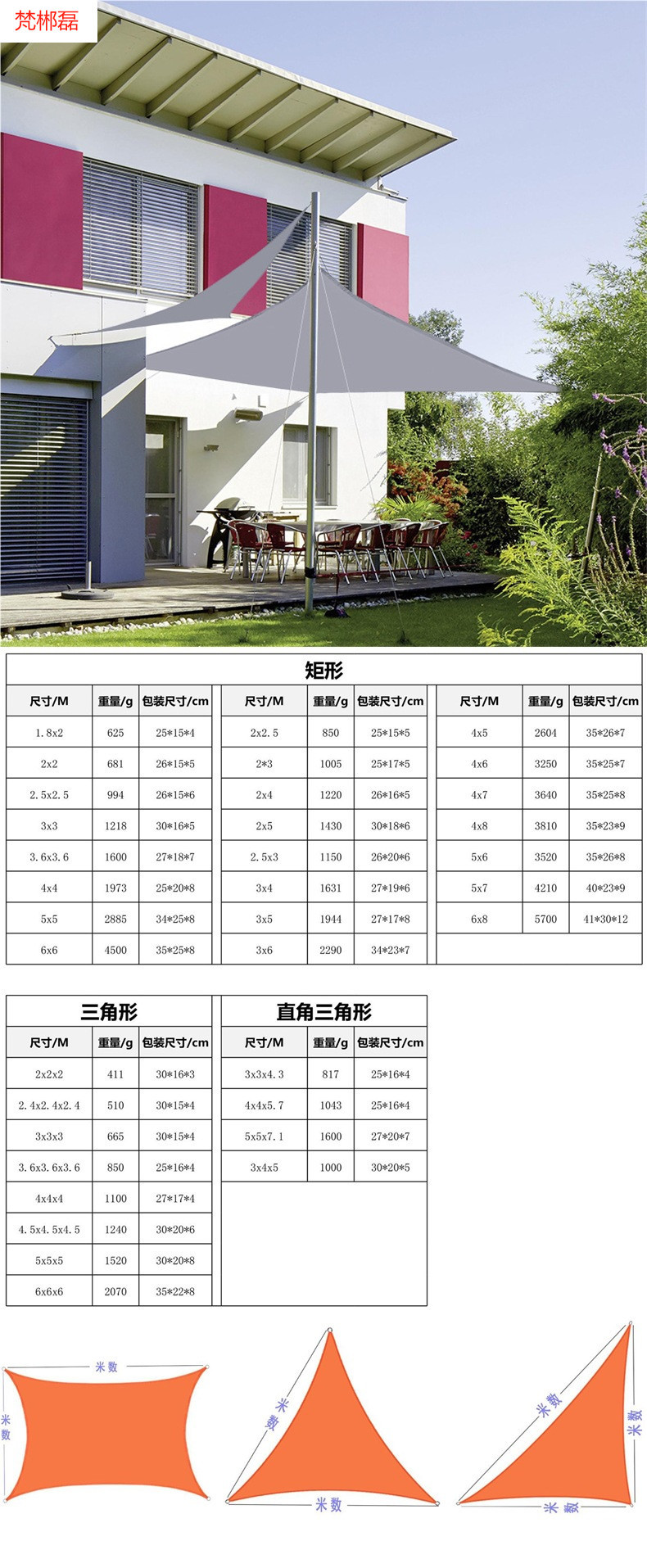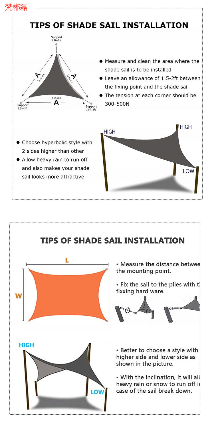 국경 간 야외 안뜰 정원 방수 차양 폴리 에스터 직사각형 차양 방수 및 자외선 차단 캐노피스토어 가기