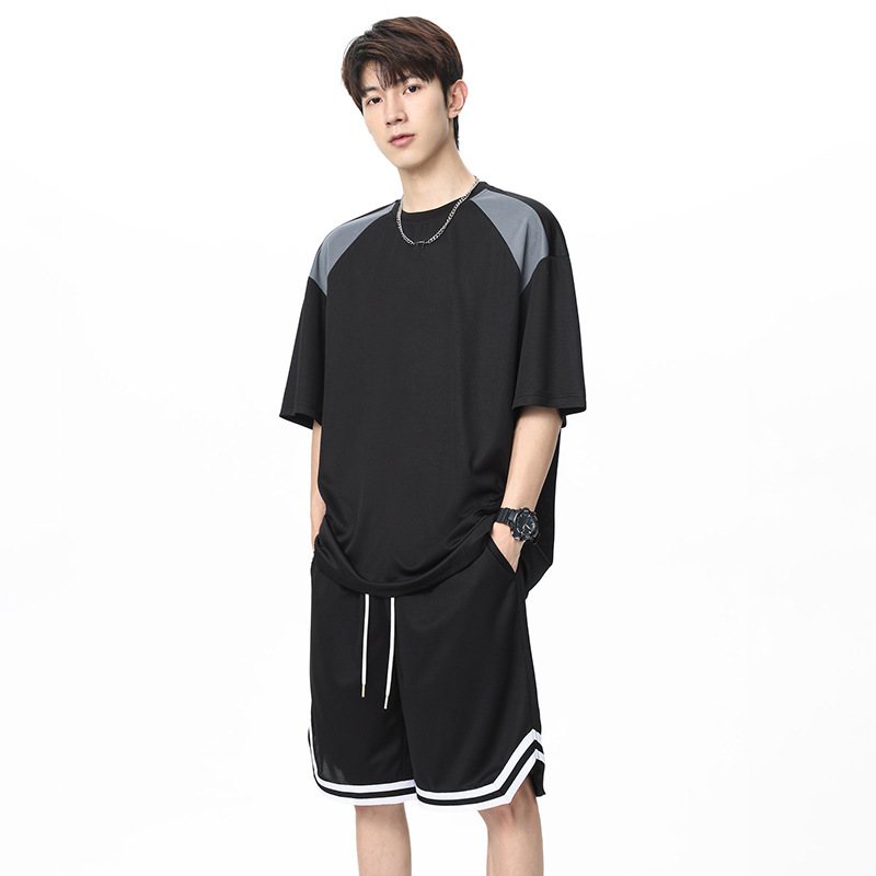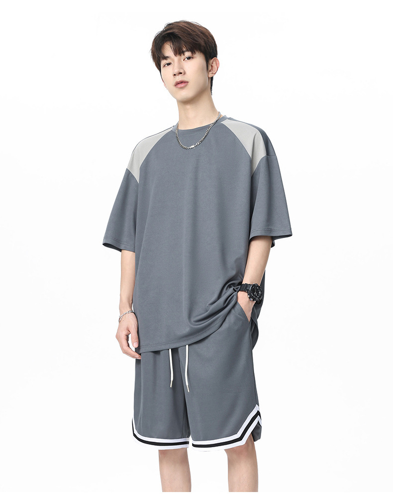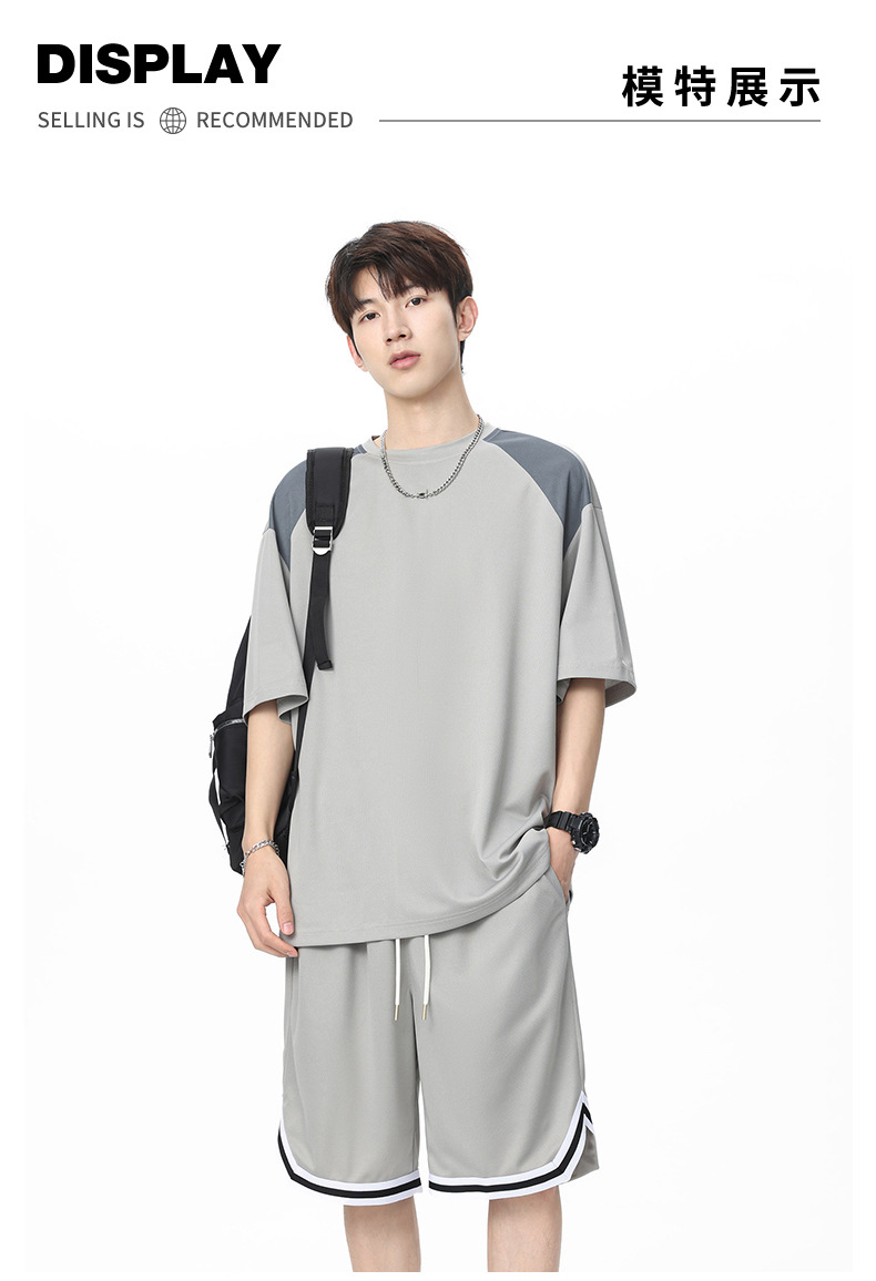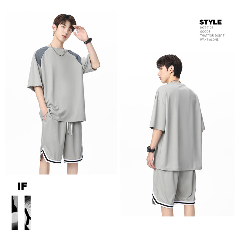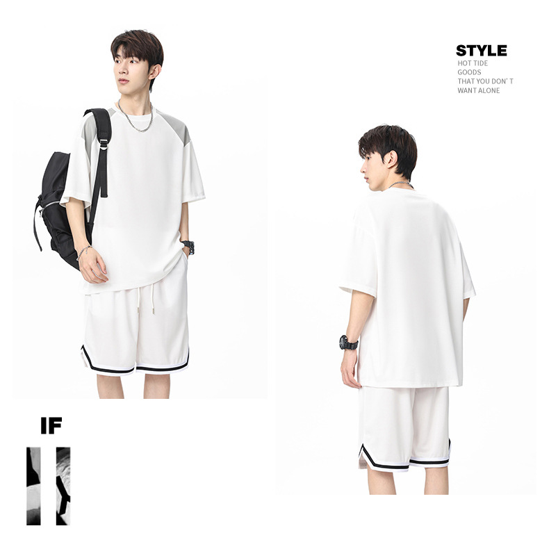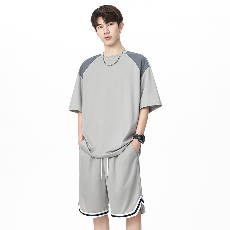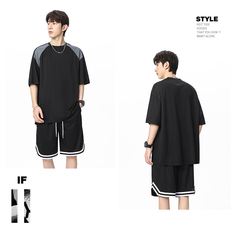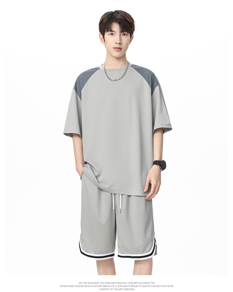 아이스 실크 정장 남성용 아메리칸 콘트라스트 컬러 티셔츠 남성용 여름 2025 새로운 커플 착용 반팔 루즈한 옷