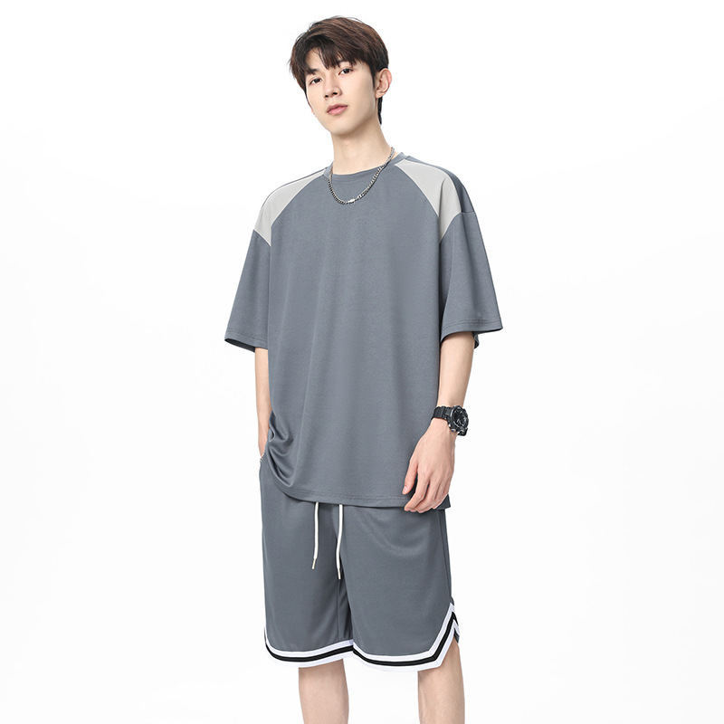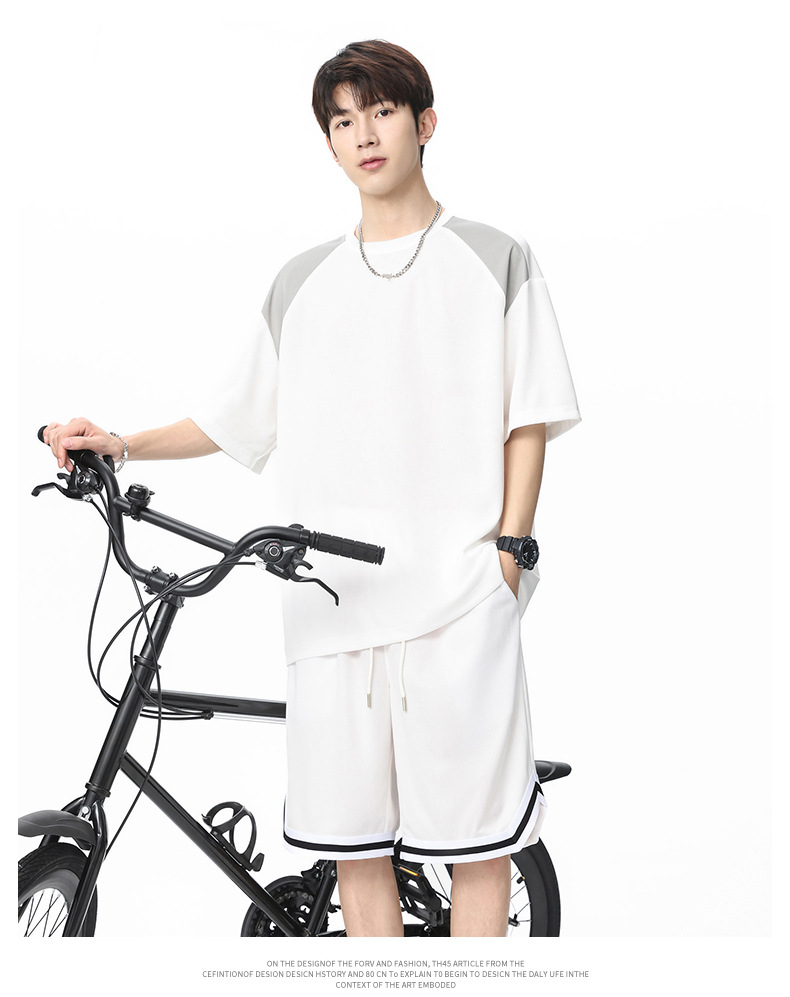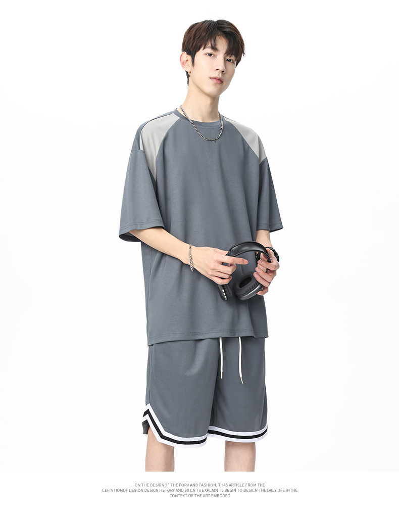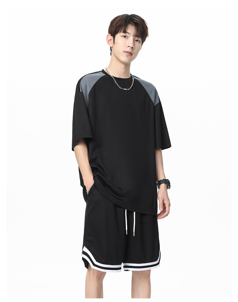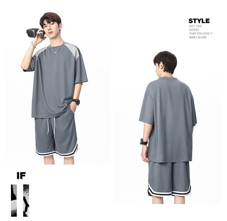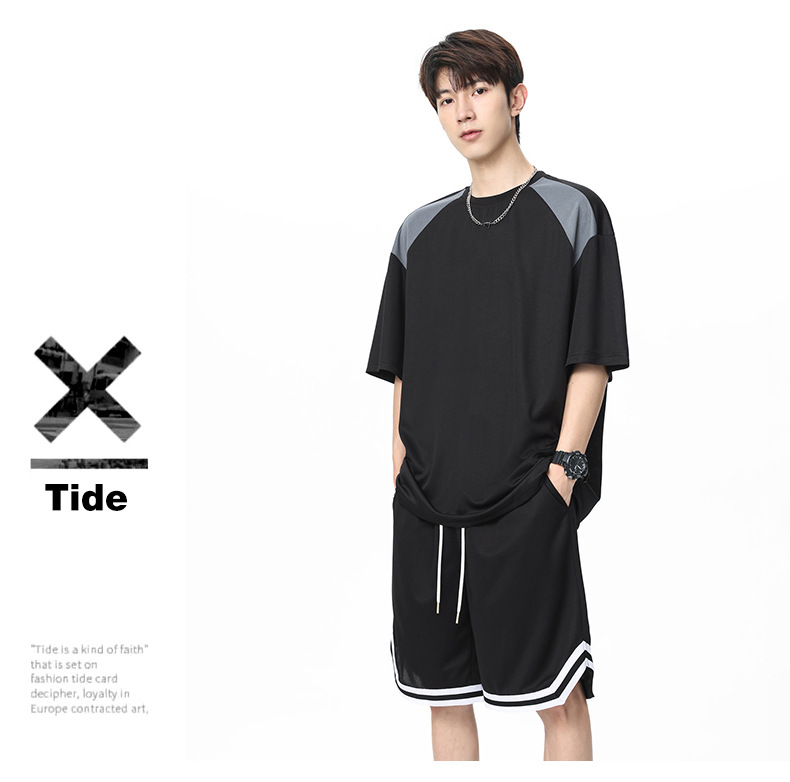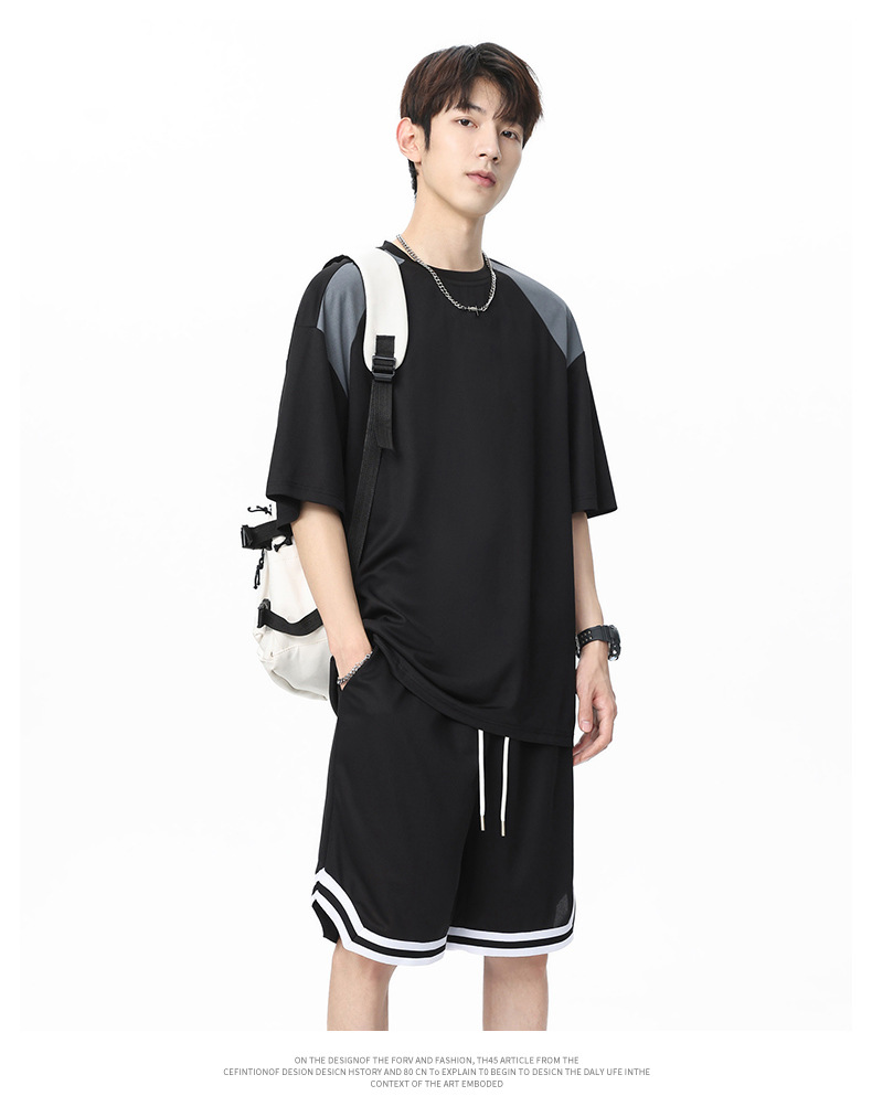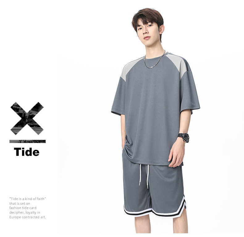 아이스 실크 정장 남성용 아메리칸 콘트라스트 컬러 티셔츠 남성용 여름 2025 새로운 커플 착용 반팔 루즈한 옷