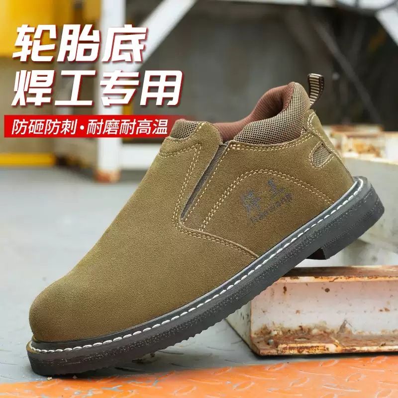 여름철 남성용 두꺼운 타이어 밑창 용접 노동 보호 신발, 통기성, 탈취제, 충격 방지, 찌르기 방지 작업, 고온 저항 및 내마모성 보호스토어 가기
