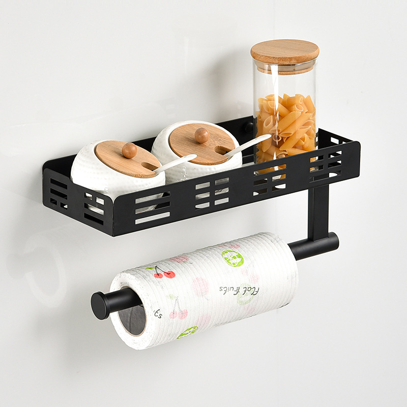 주방용품을 보관할 수 있는 보관 선반이 있는 종이 타월 홀더, 가정용 펀치 없는 벽걸이 접착 필름 선반