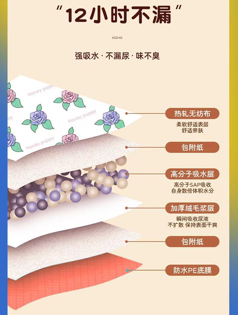 Xinban Honey Pet 기저귀 패드 접착 기저귀 인쇄 개 기저귀 패드 탈취제 고흡수성 애완 동물 용품 패드