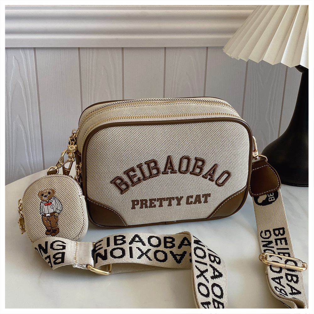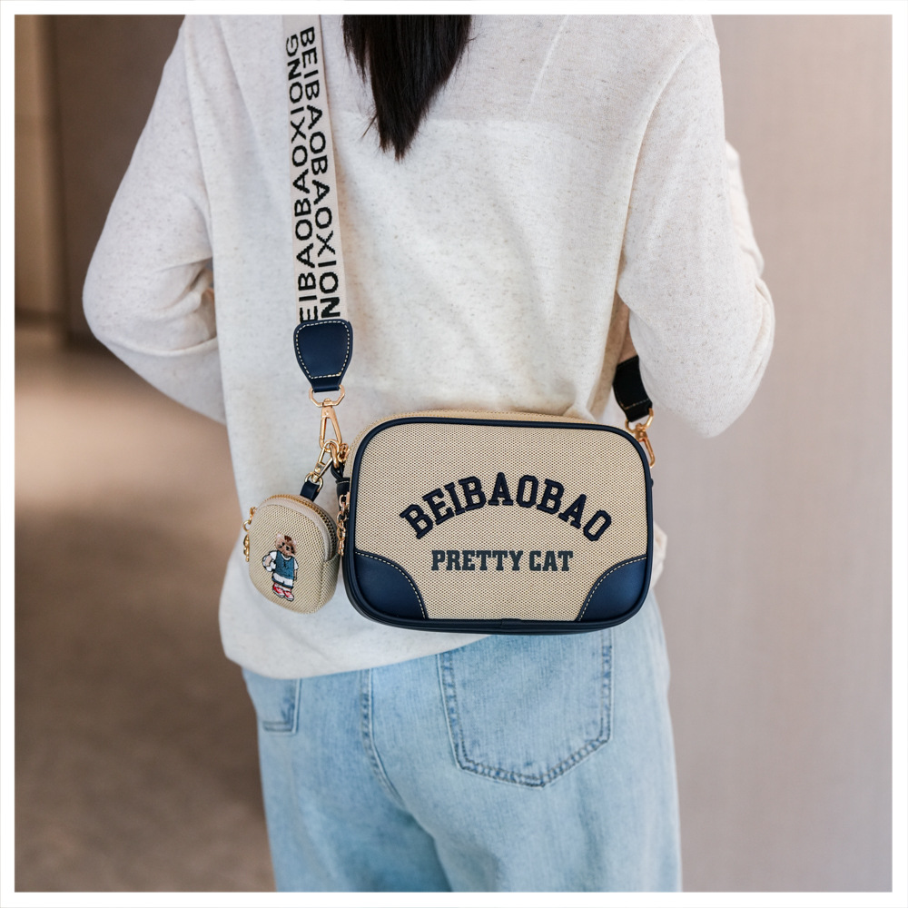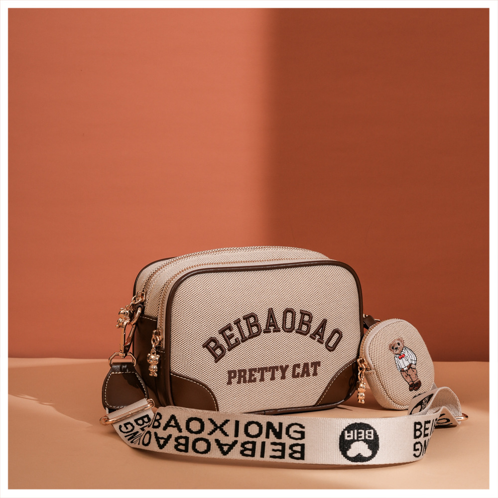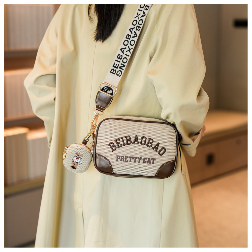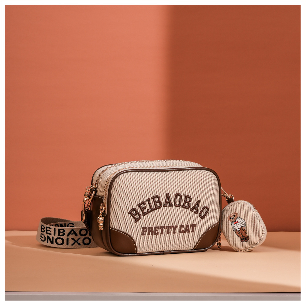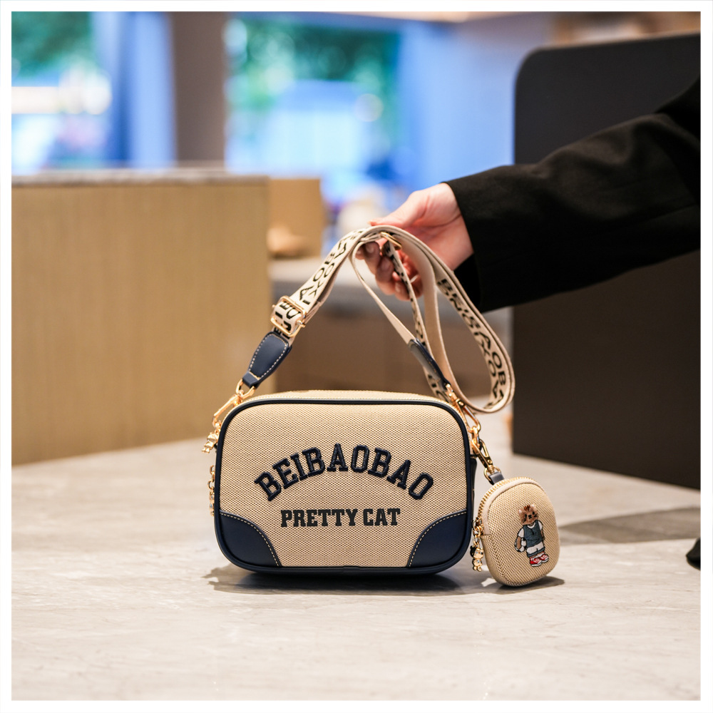 Beibao Yuanfeng 공장 캔버스 크로스 바디 백 다용도 가방 캐주얼 심플 패션 레터 프린트 작은 사각형 가방