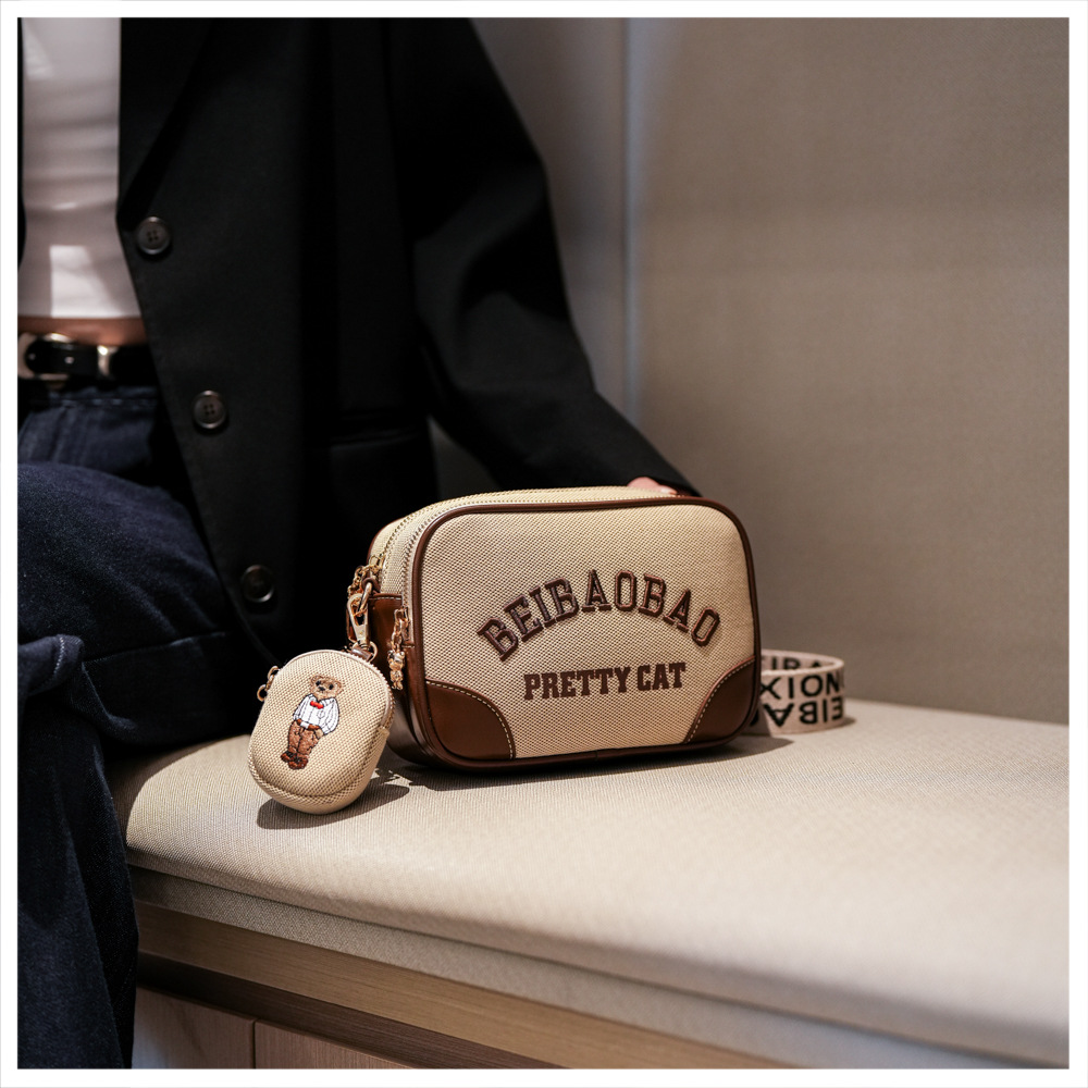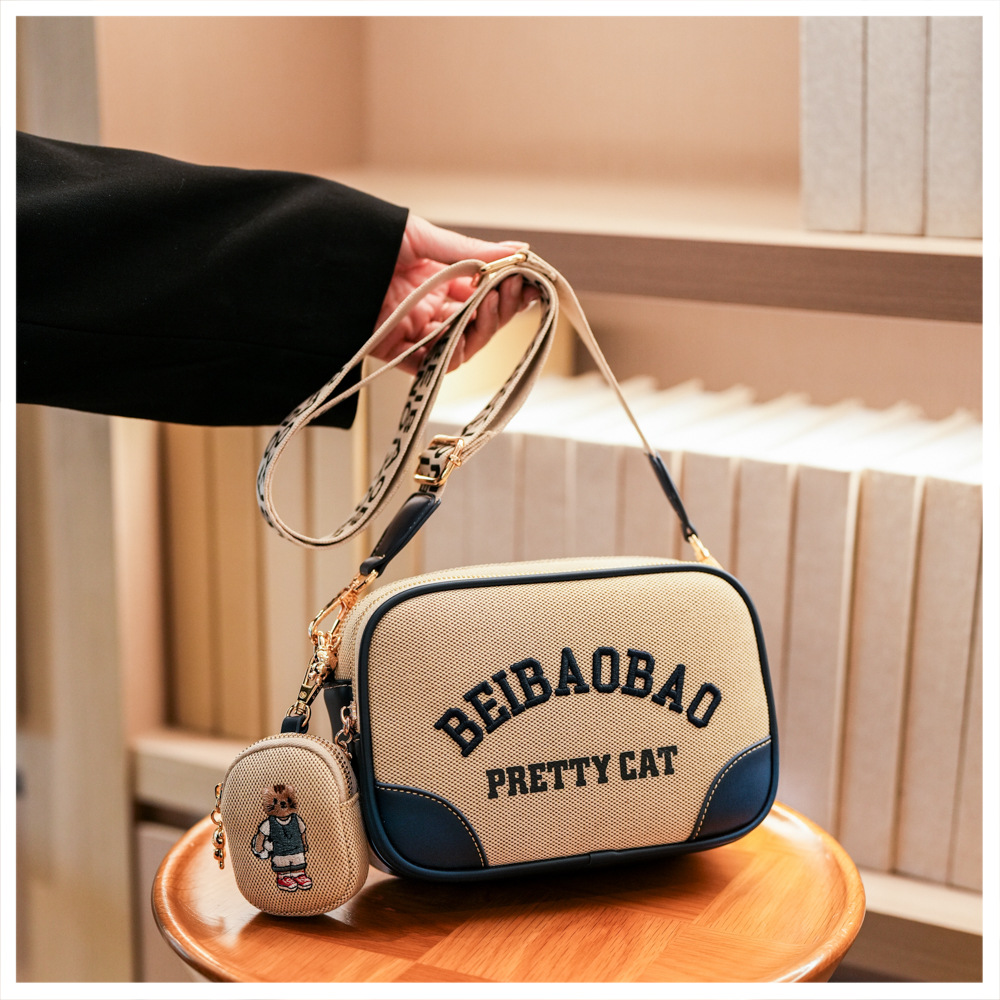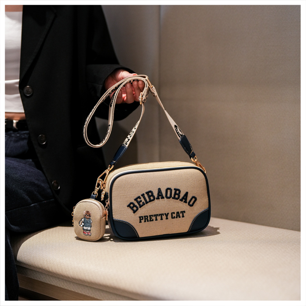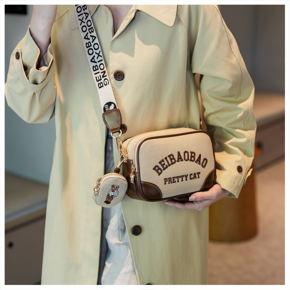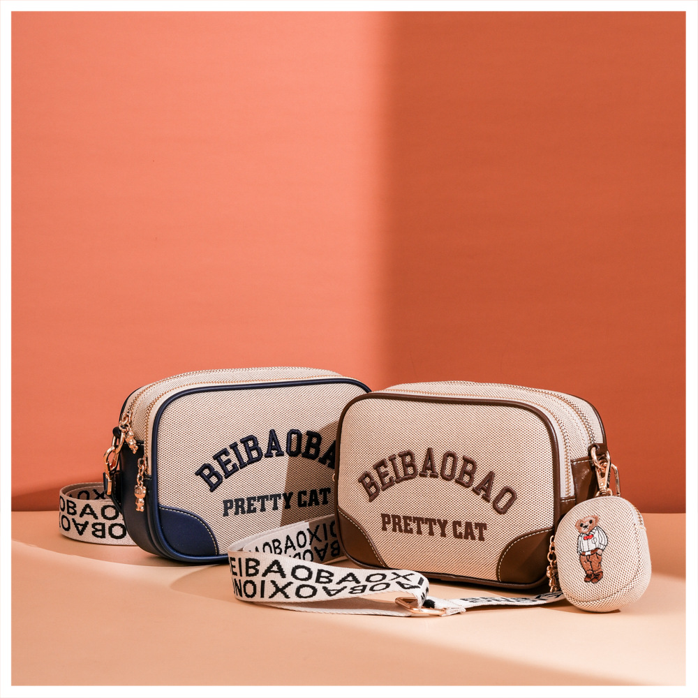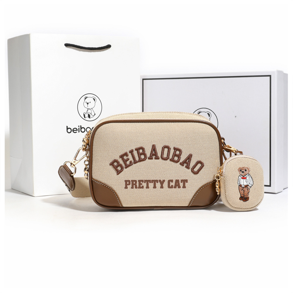 Beibao Yuanfeng 공장 캔버스 크로스 바디 백 다용도 가방 캐주얼 심플 패션 레터 프린트 작은 사각형 가방