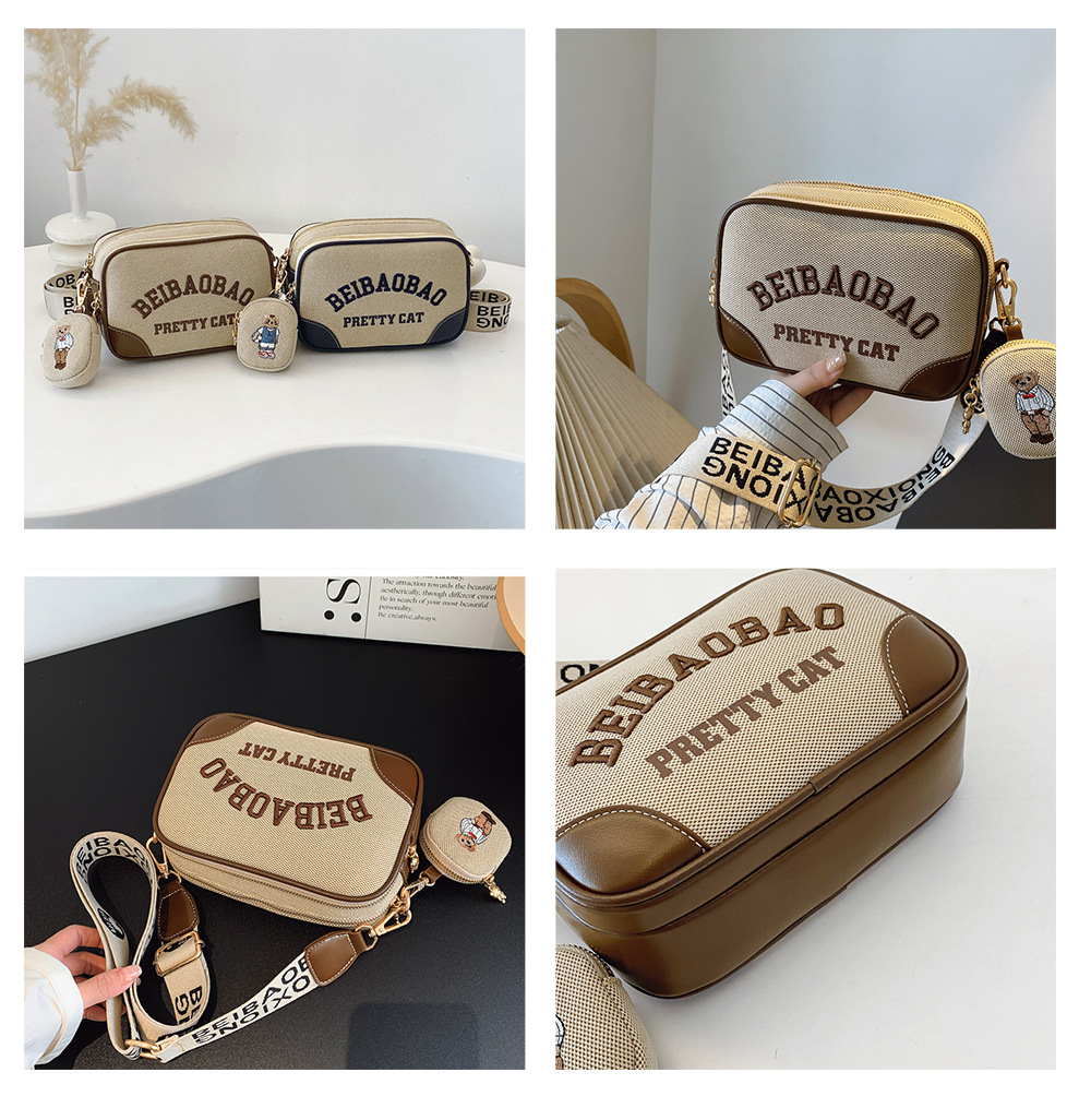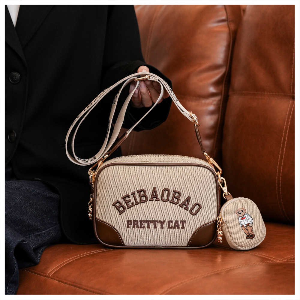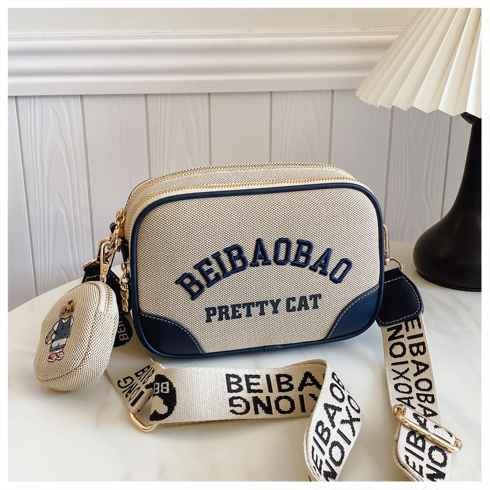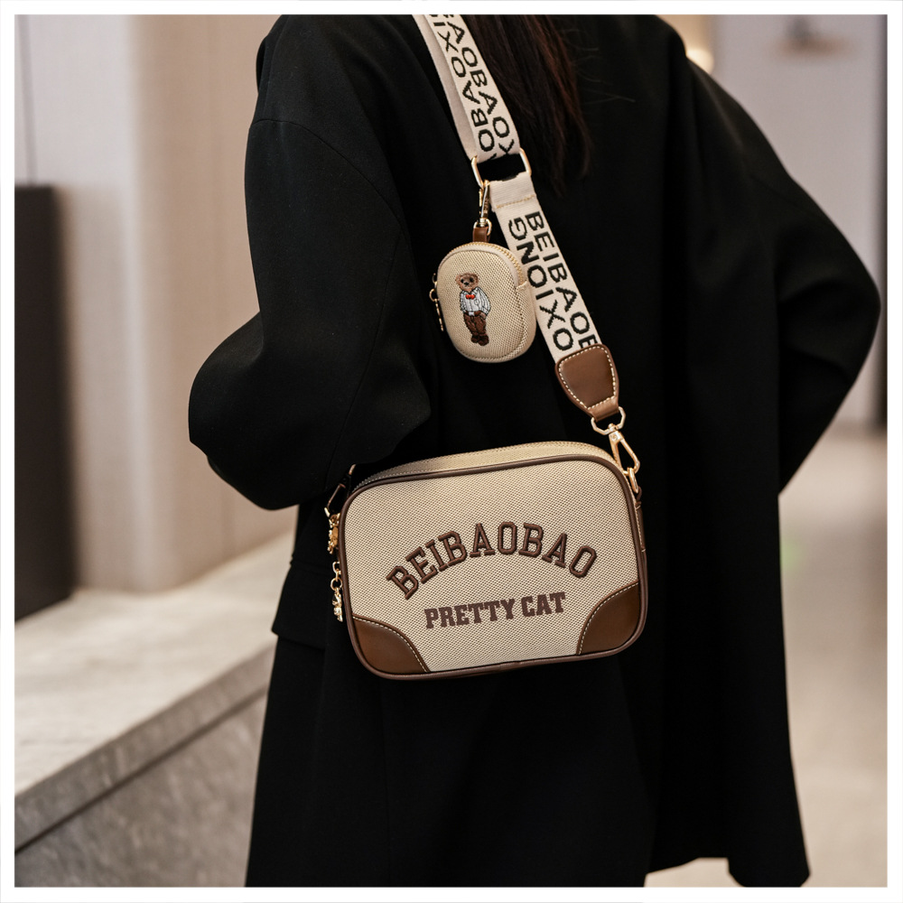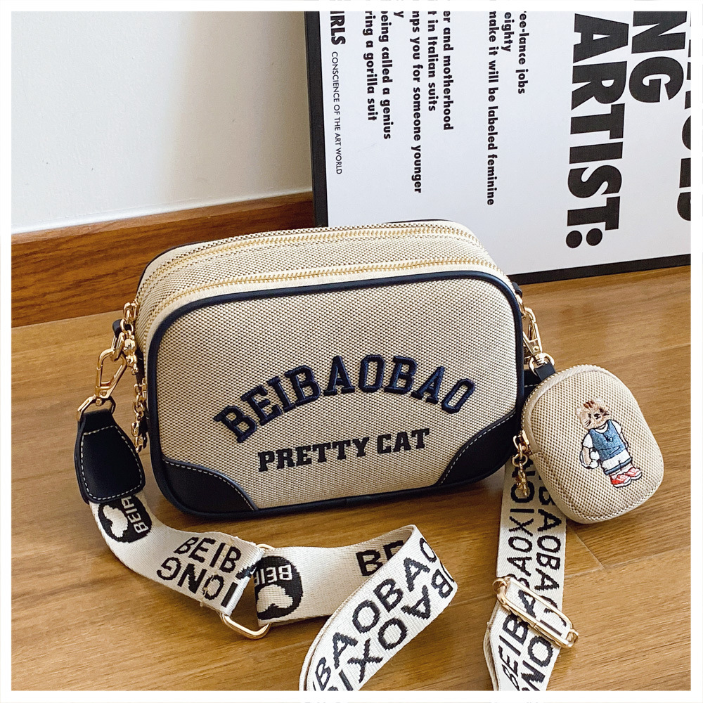 Beibao Yuanfeng 공장 캔버스 크로스 바디 백 다용도 가방 캐주얼 심플 패션 레터 프린트 작은 사각형 가방