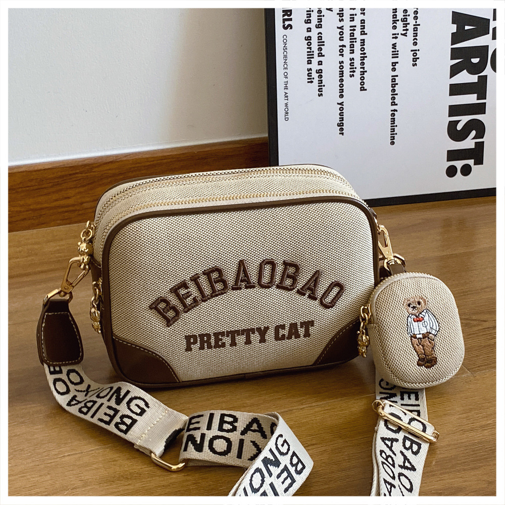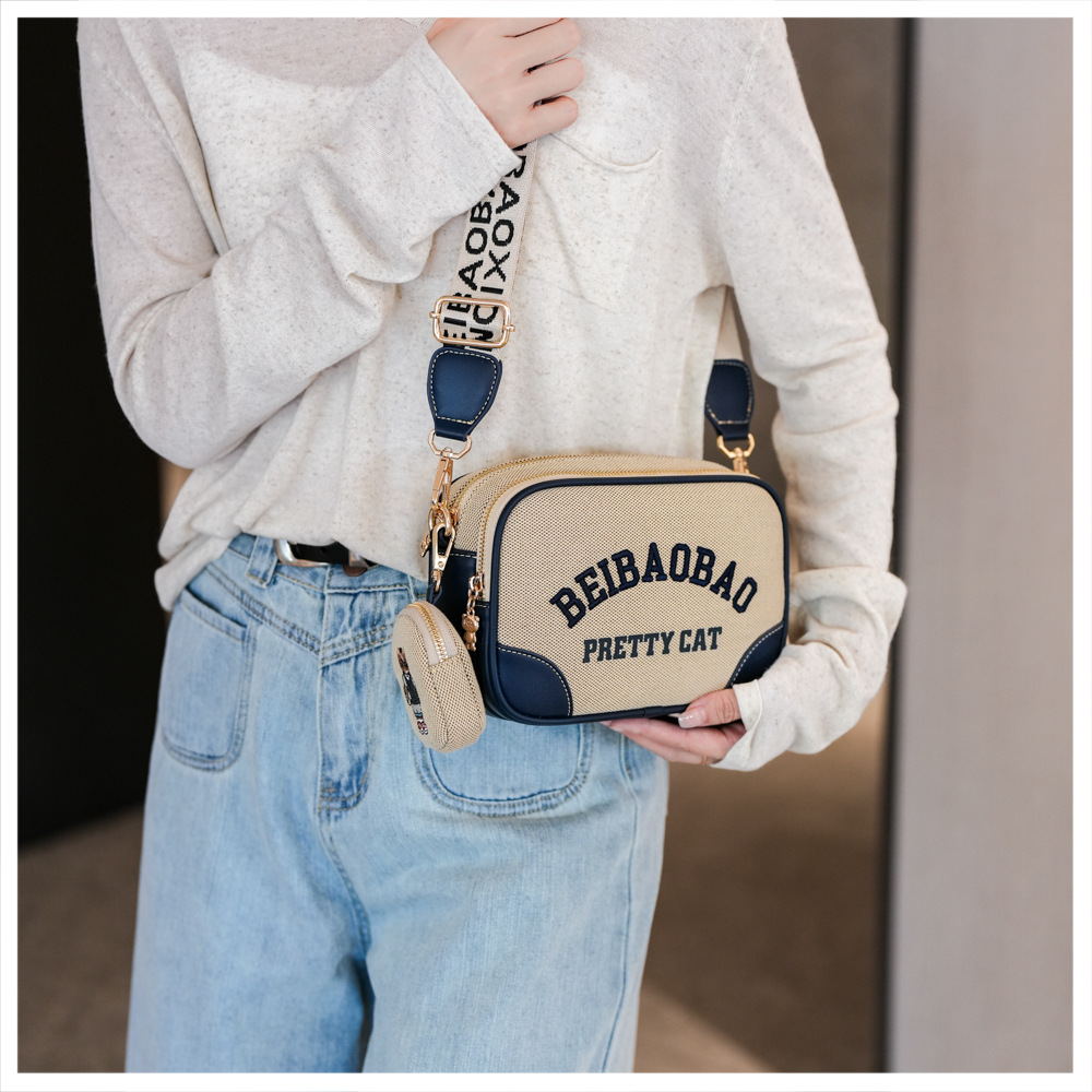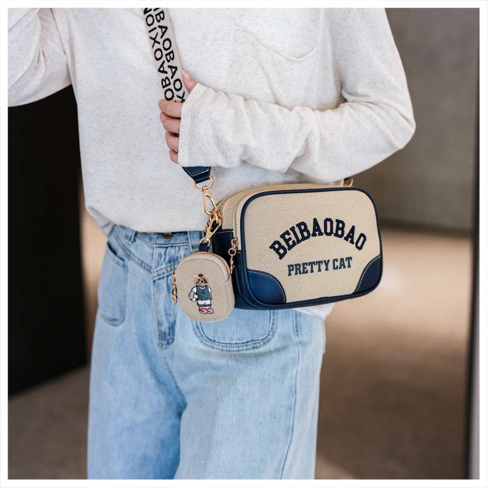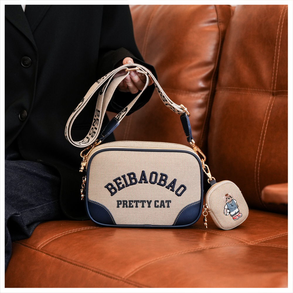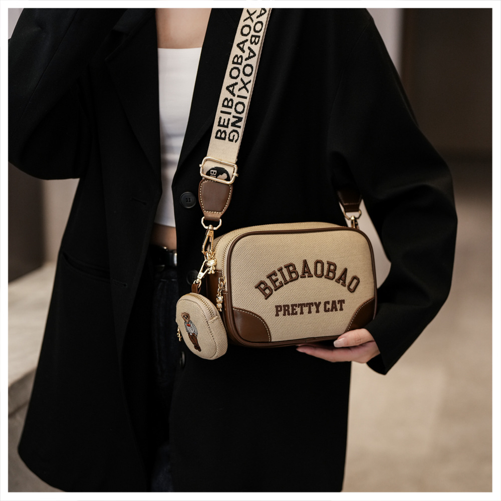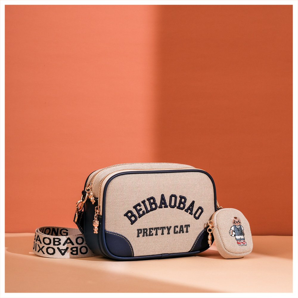 Beibao Yuanfeng 공장 캔버스 크로스 바디 백 다용도 가방 캐주얼 심플 패션 레터 프린트 작은 사각형 가방
