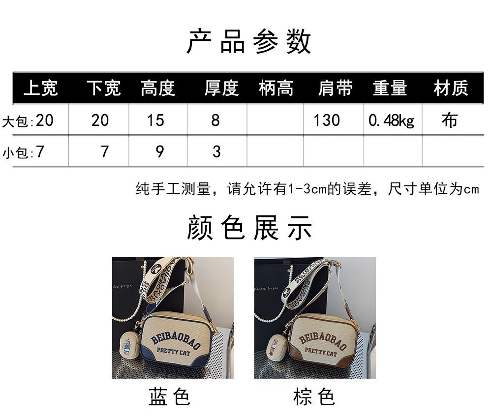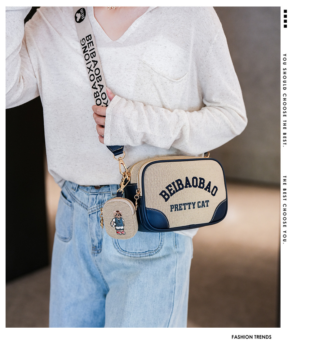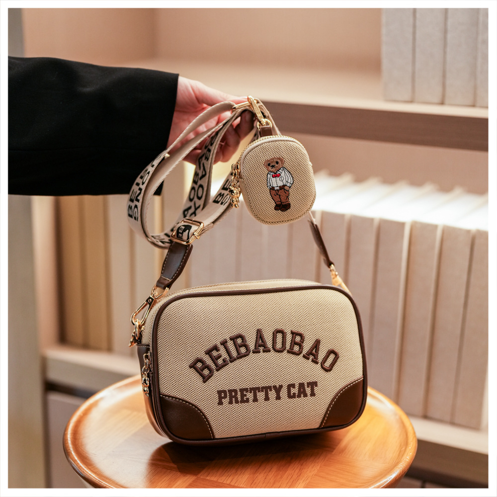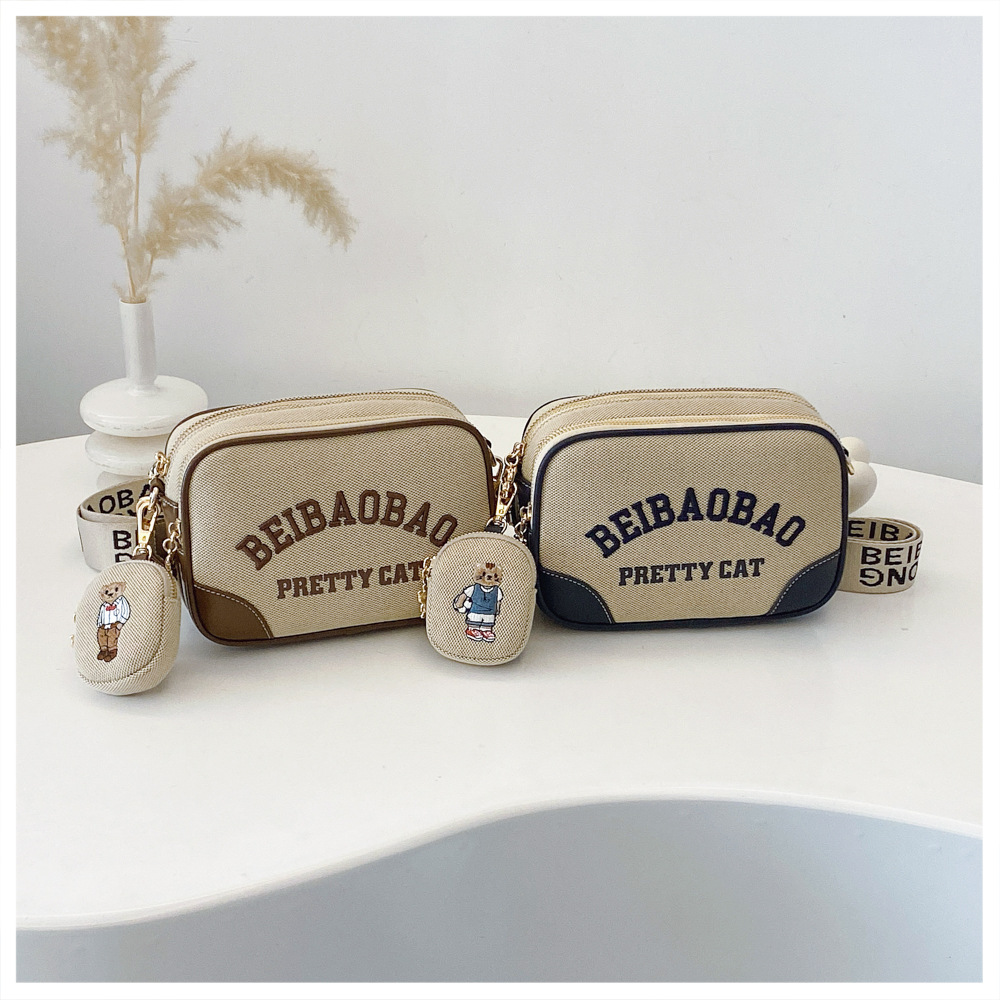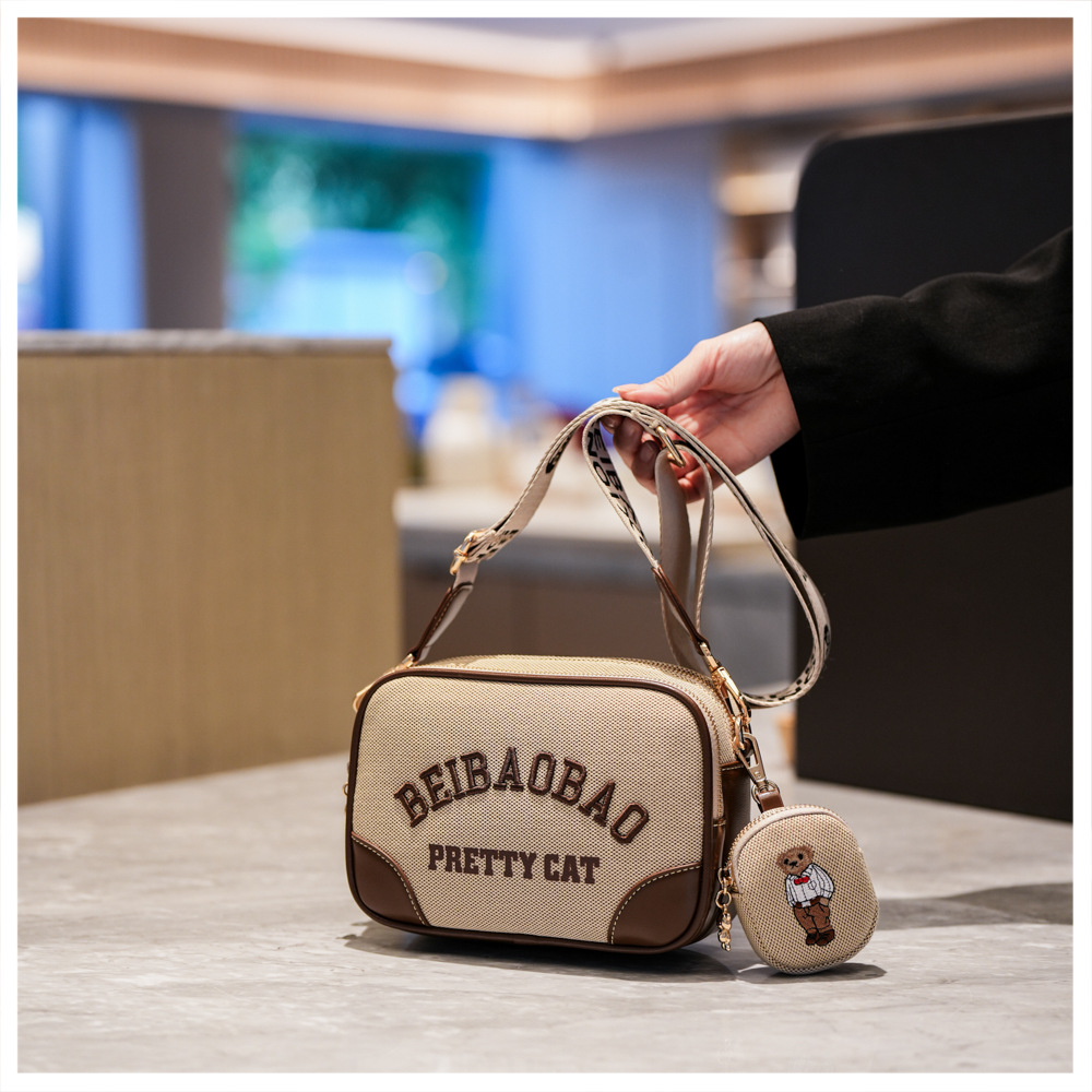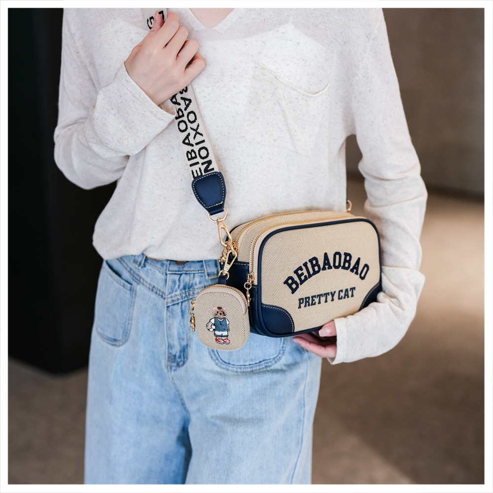 Beibao Yuanfeng 공장 캔버스 크로스 바디 백 다용도 가방 캐주얼 심플 패션 레터 프린트 작은 사각형 가방