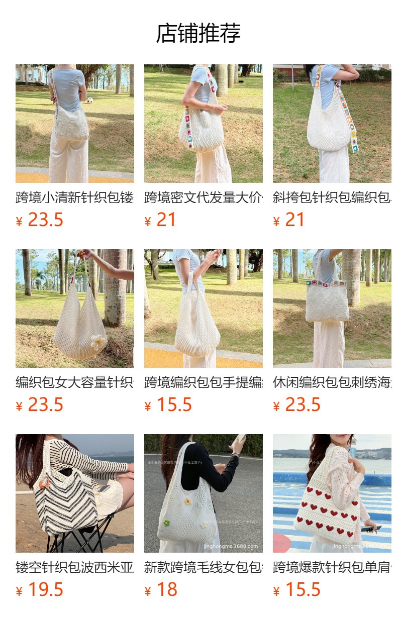 니트 가방 여성용 뜨개질 속이 빈 핸드백 달콤한 스타일의 숄더백 휴가용 비치백 여성용 가방 대용량 크로스백스토어 가기