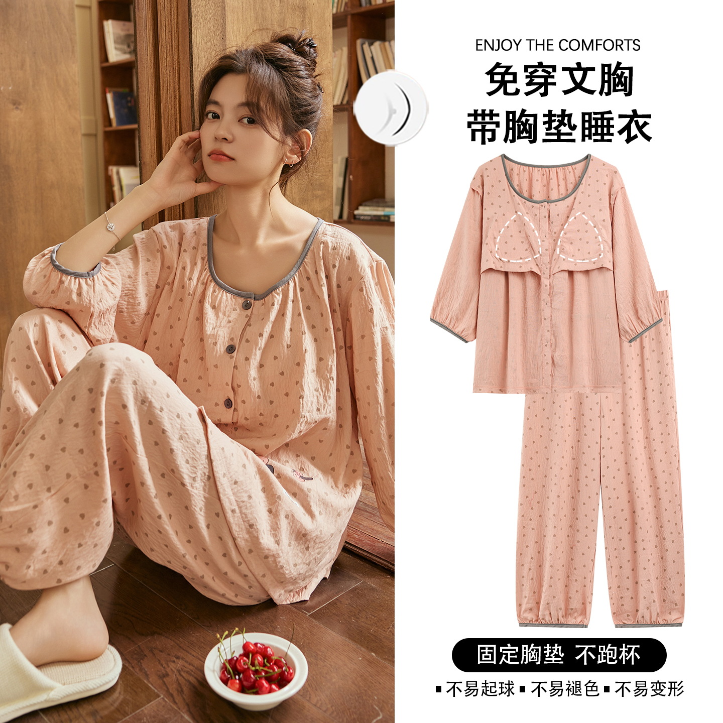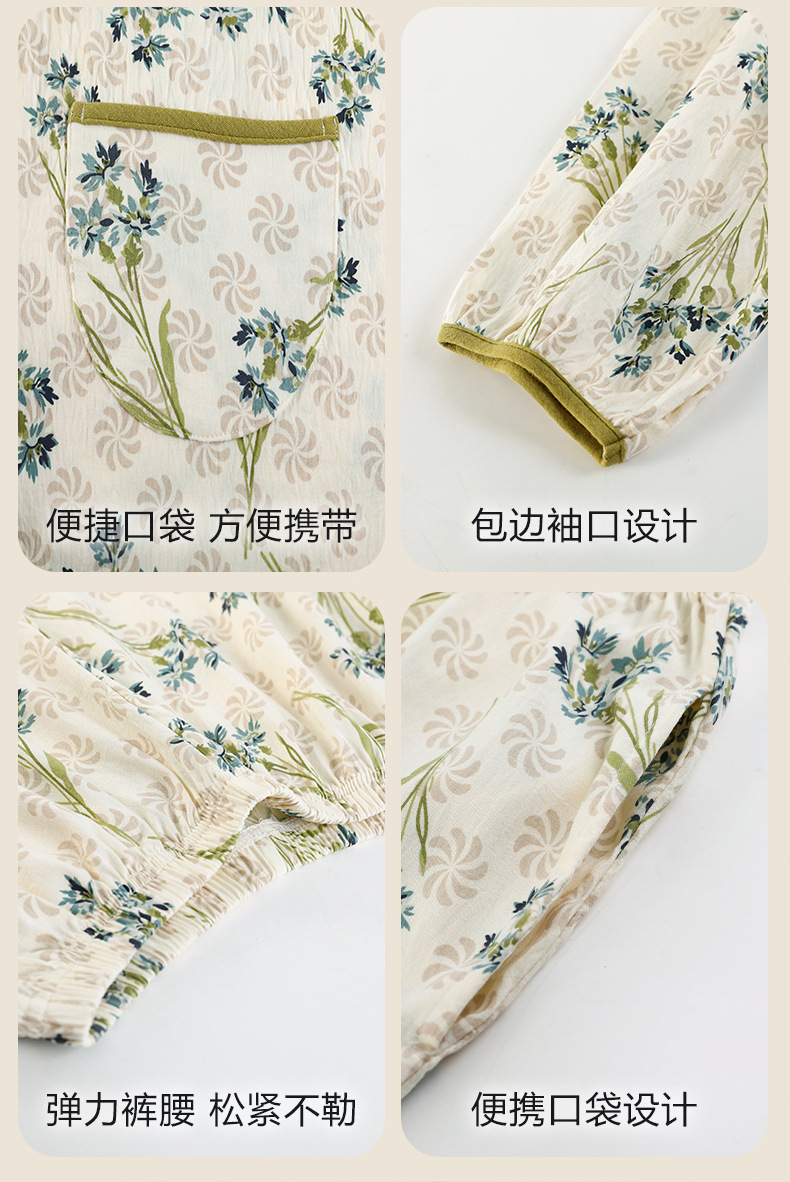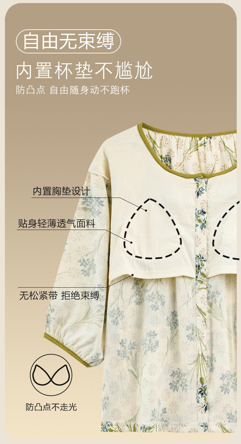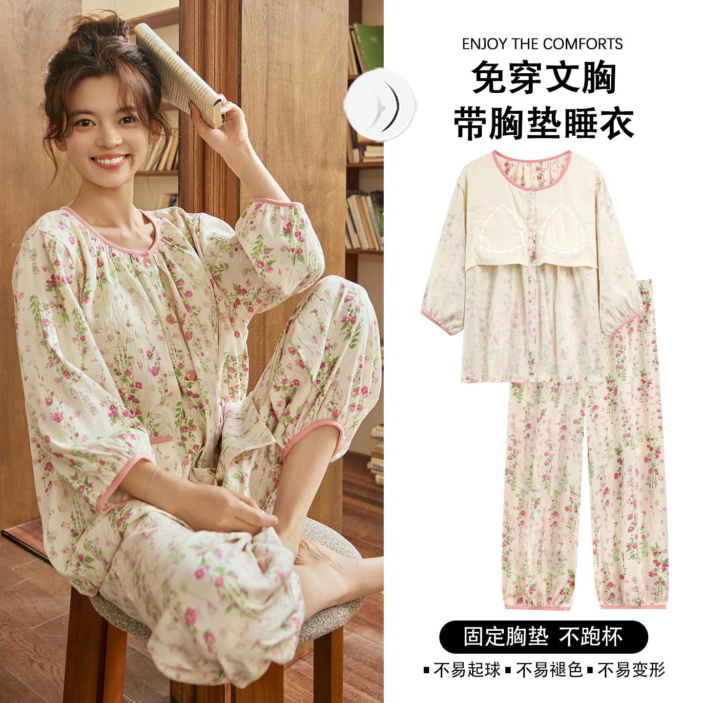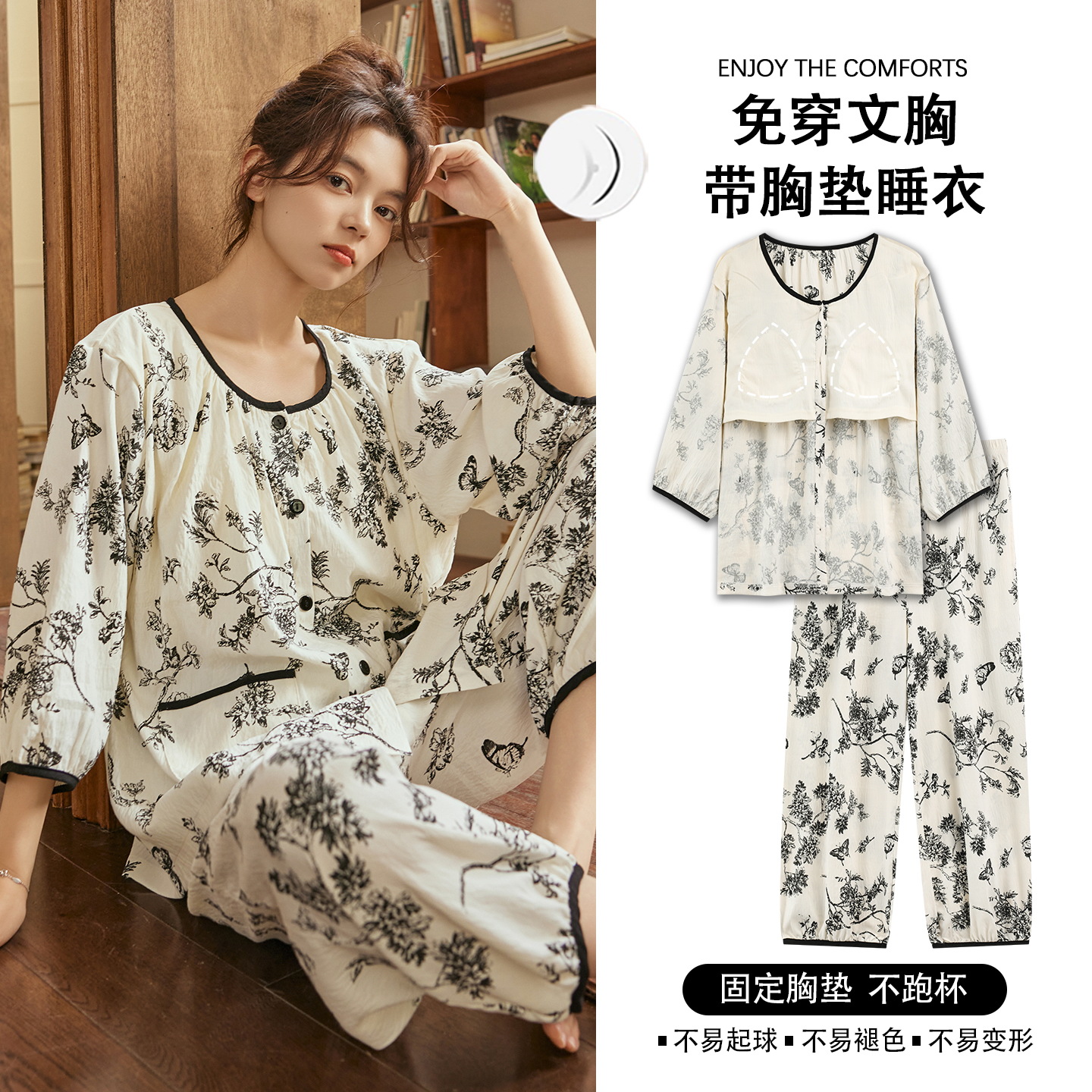 여름 여성을 위한 에어컨 룸 잠옷, 가슴 패드가 있는 7부 소매 클라우드 코튼 새로운 목가적 스타일 여성 홈웨어 세트스토어 가기