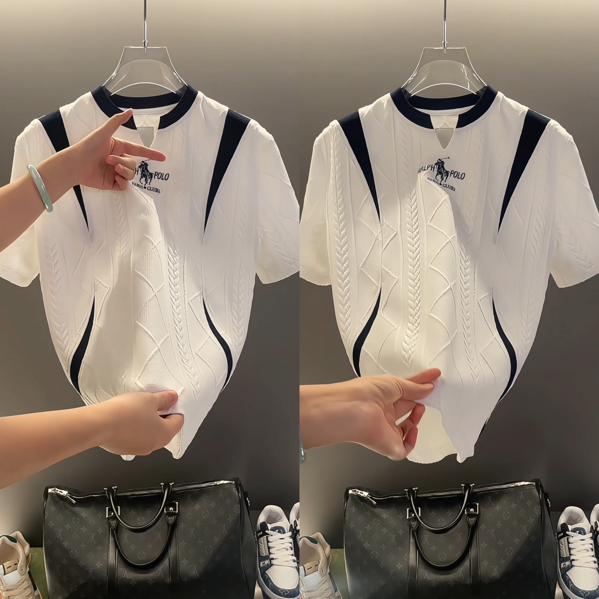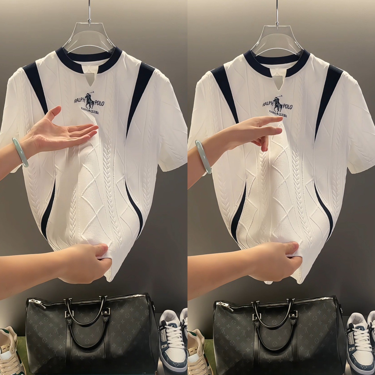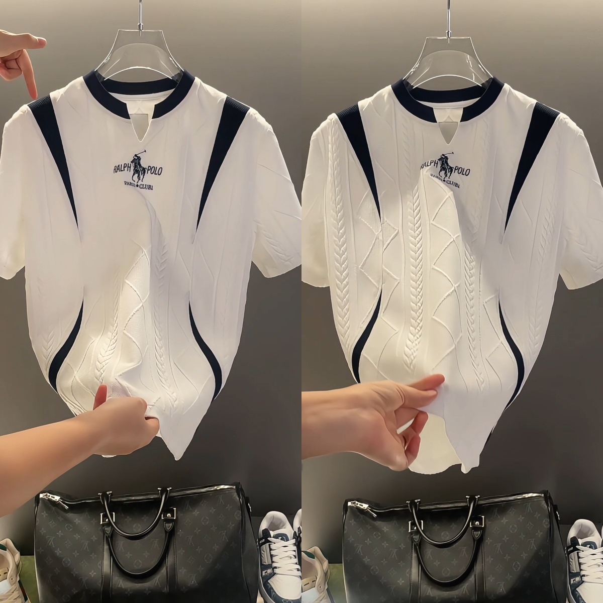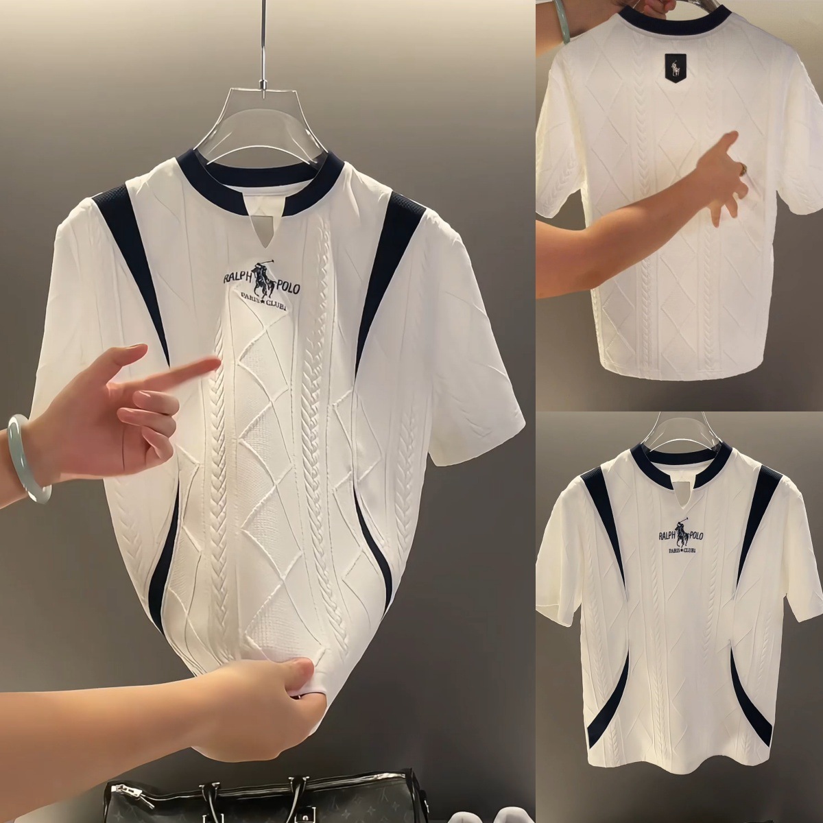 유럽 고급 남성 신상 한국 스타일 트렌디한 고품질 심플한 디자인 스플리싱 반팔 티셔츠스토어 가기