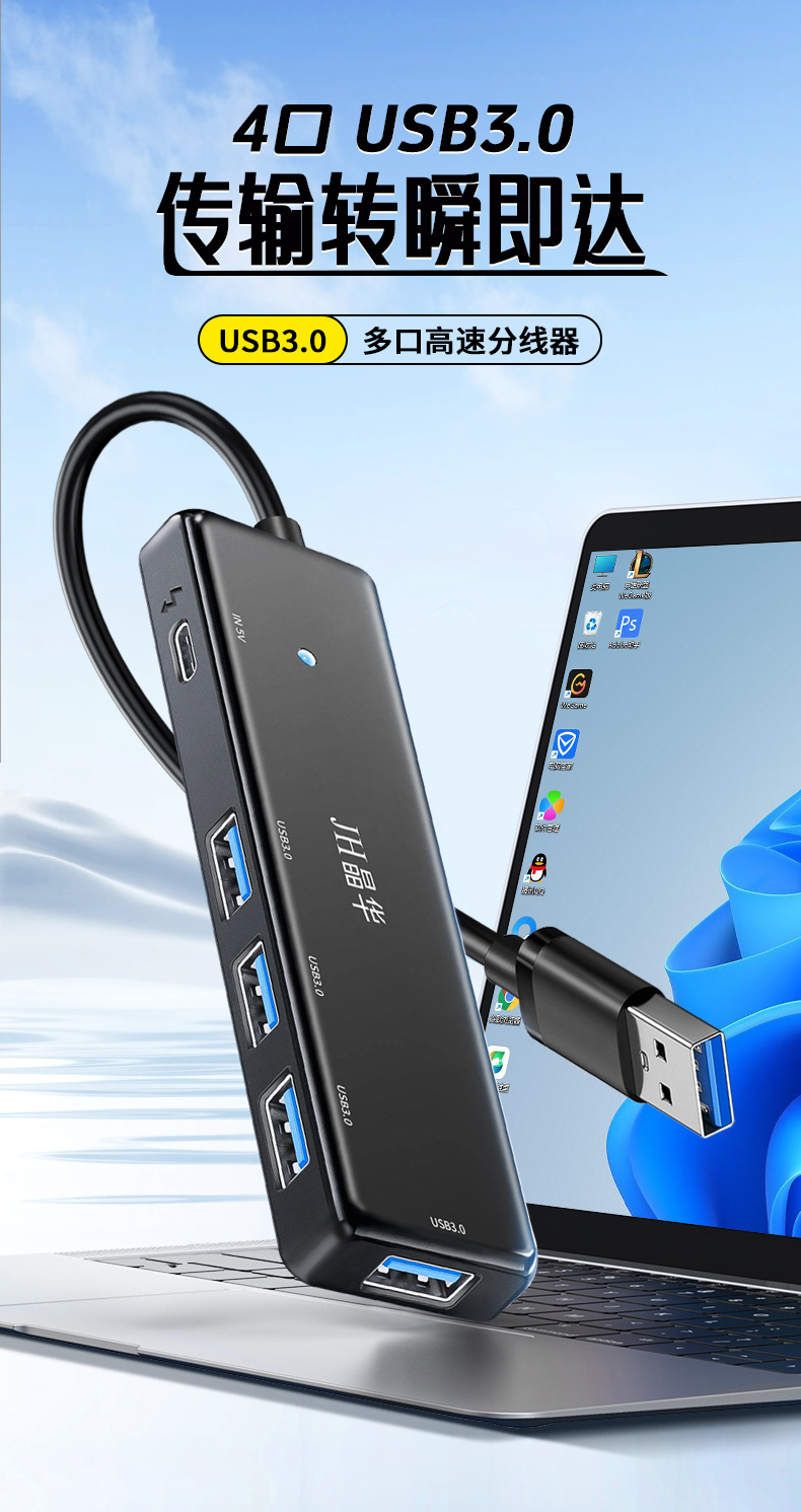 Jinghua USB3.0 허브 1-4 허브 확장기 멀티 인터페이스 usb3.0 분배기 도킹 스테이션 1m스토어 가기