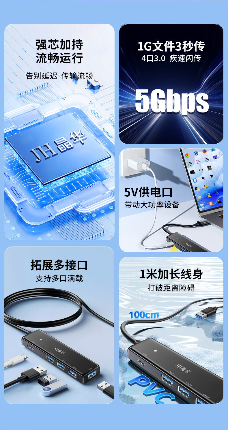 Jinghua USB3.0 허브 1-4 허브 확장기 멀티 인터페이스 usb3.0 분배기 도킹 스테이션 1m