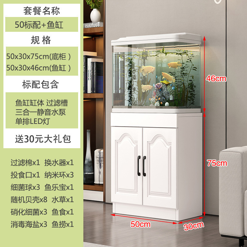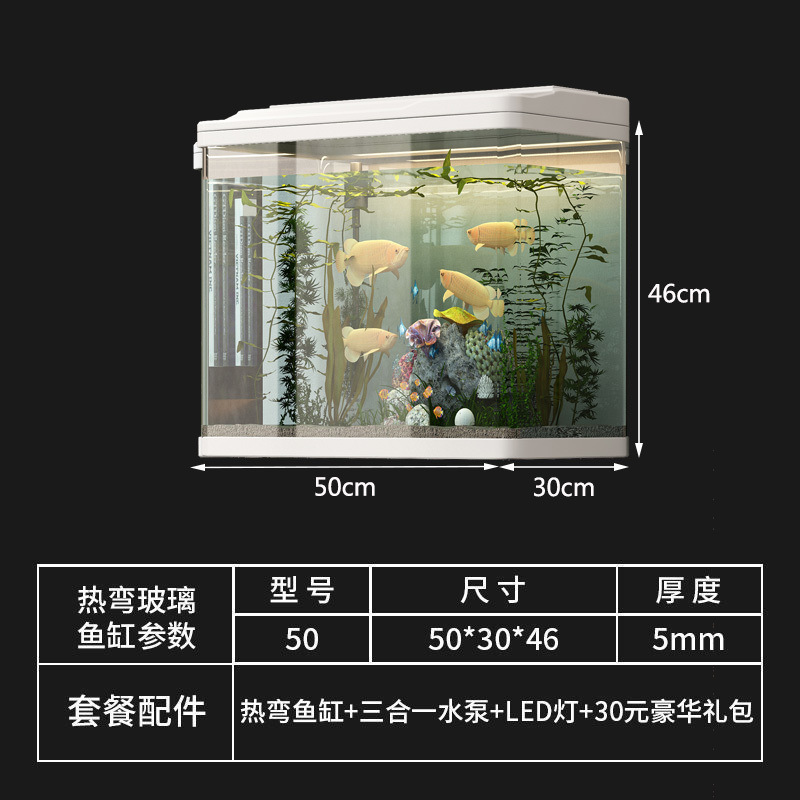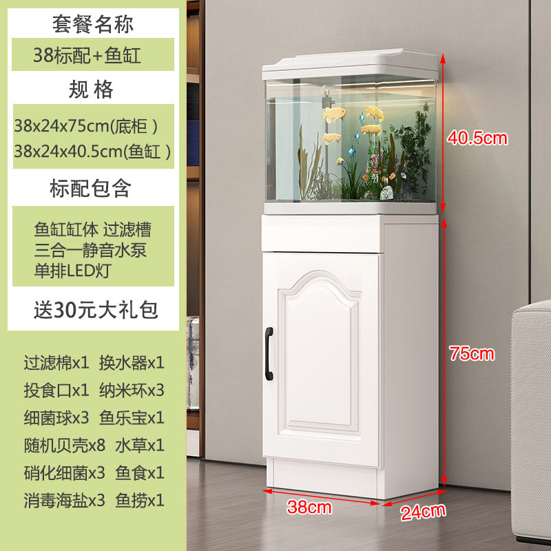 수족관 가정용 물 교환 없음 생태학적 열 구부러진 금붕어 수조(수납 공간이 있는 캐비닛 포함) 소형 및 간단한 전체 세트스토어 가기
