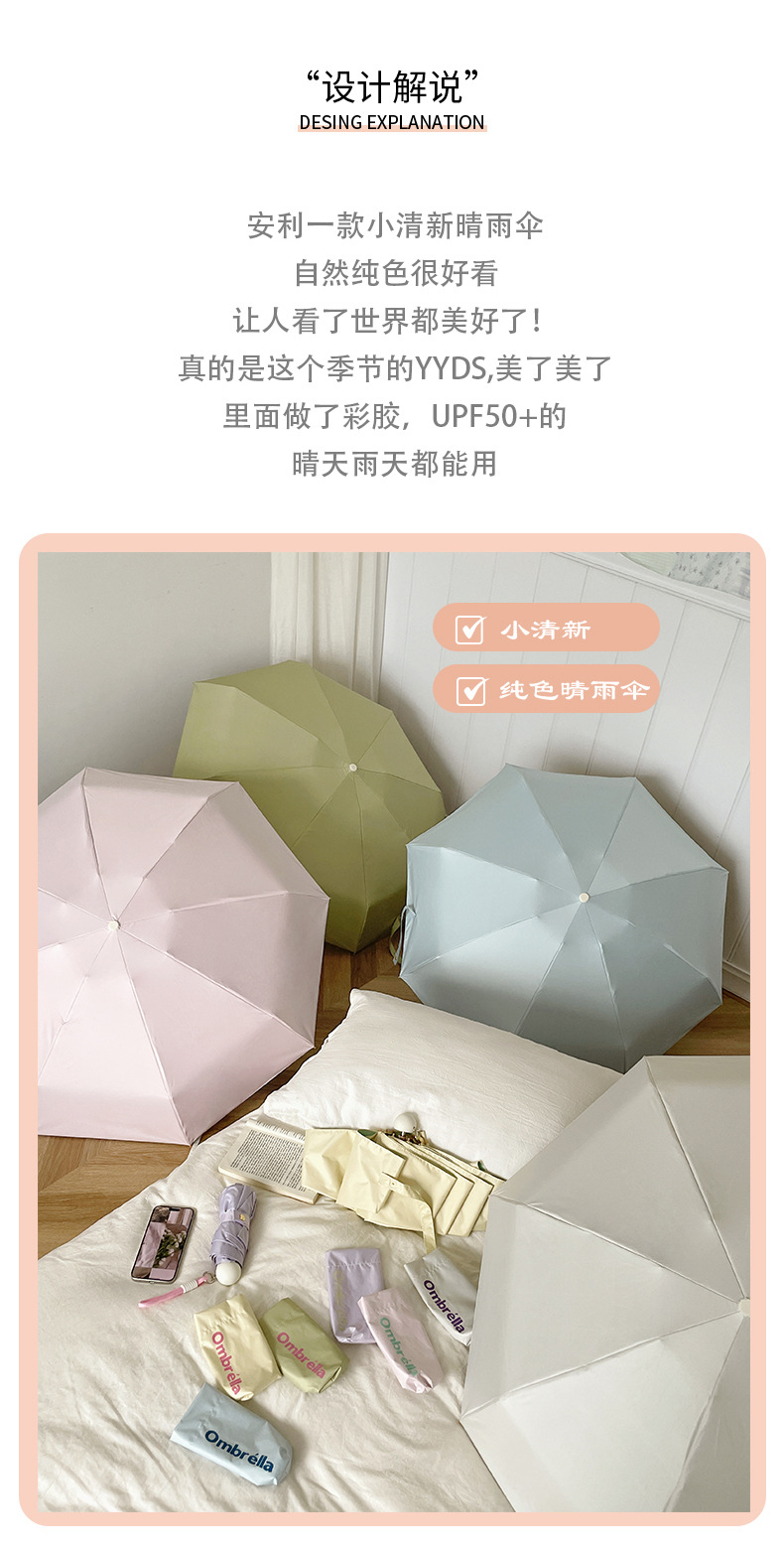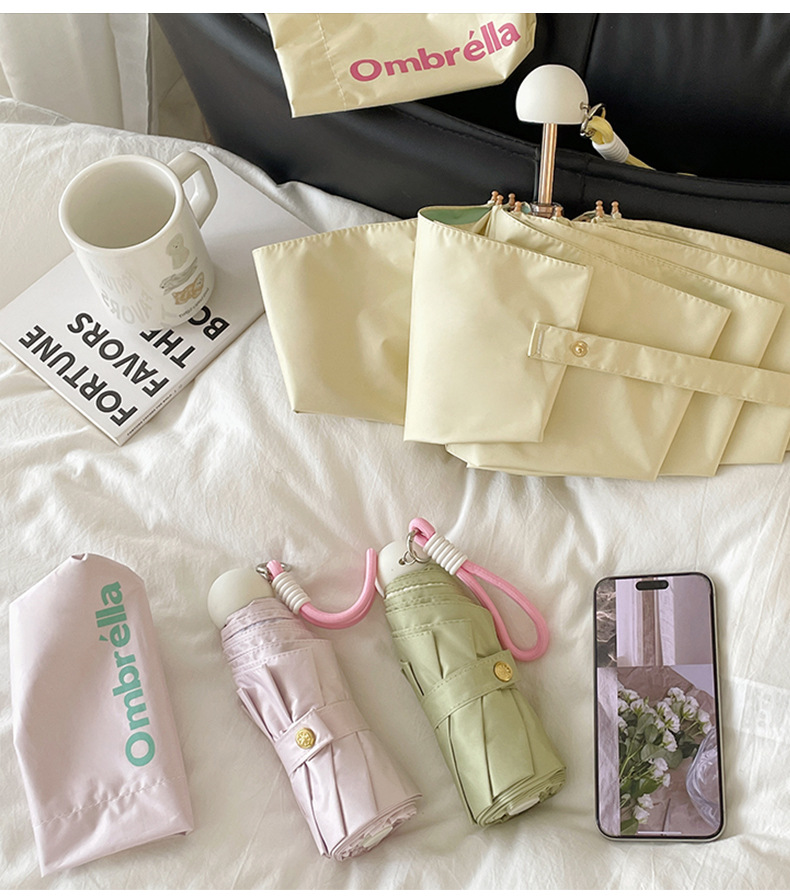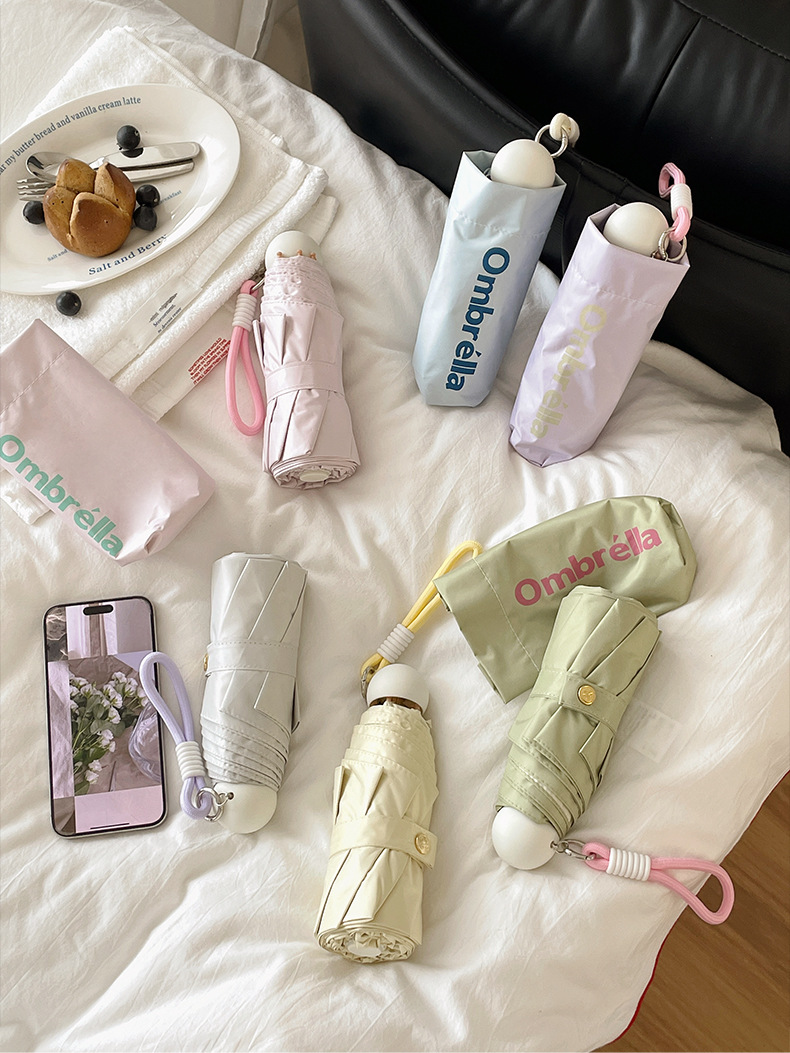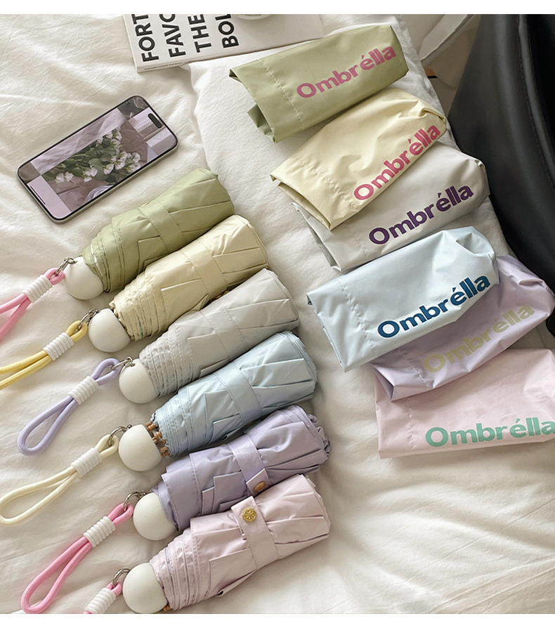대비 색상 접착제 초경량 소형 휴대용 태양 우산 비 또는 샤인 여성 태양 보호 우산 안티 UV 50% off 파라솔