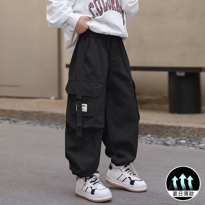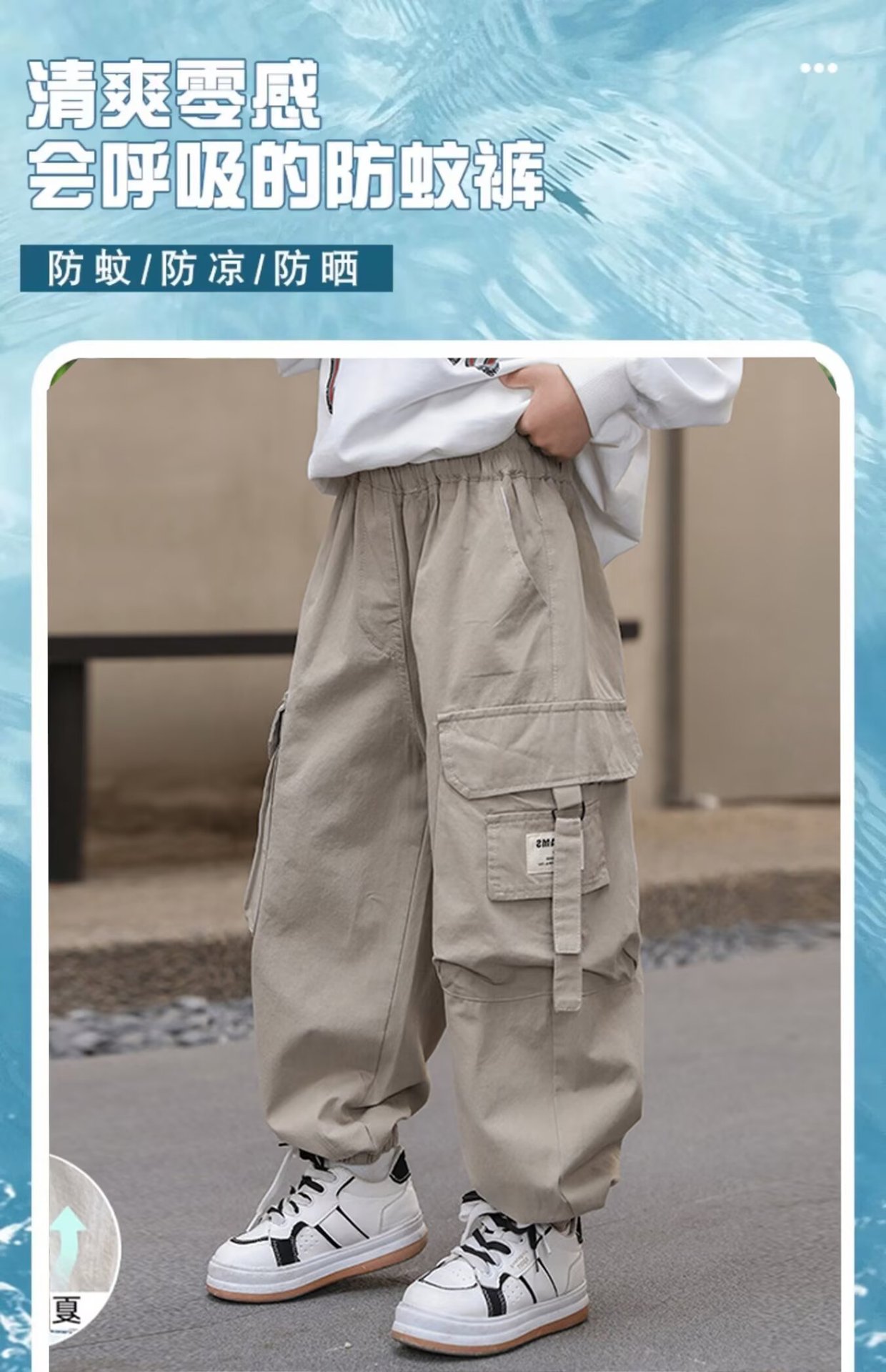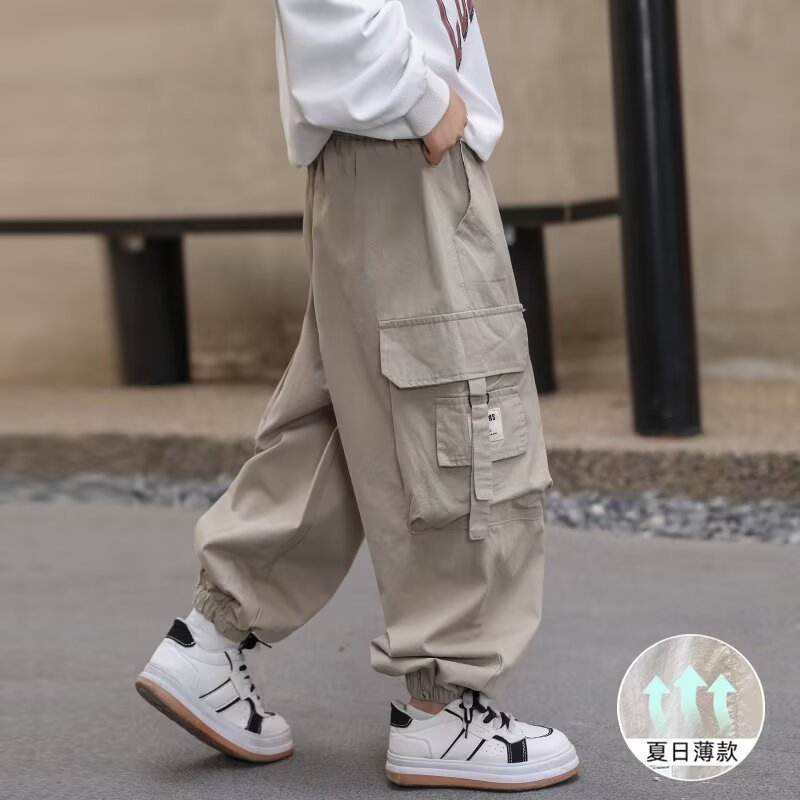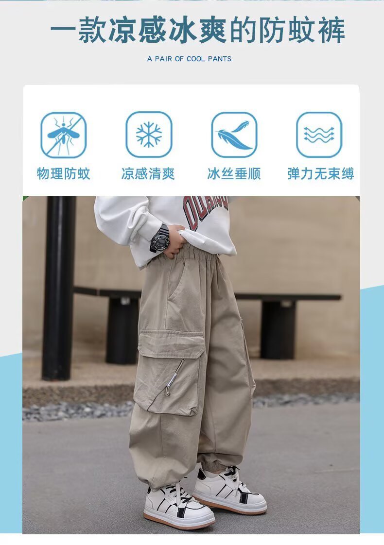소년 바지 여름 얇은 2025 새로운 어린이 여름 작업복 바지 중형 및 대형 소년 얼음 실크 모기 방지 바지스토어 가기