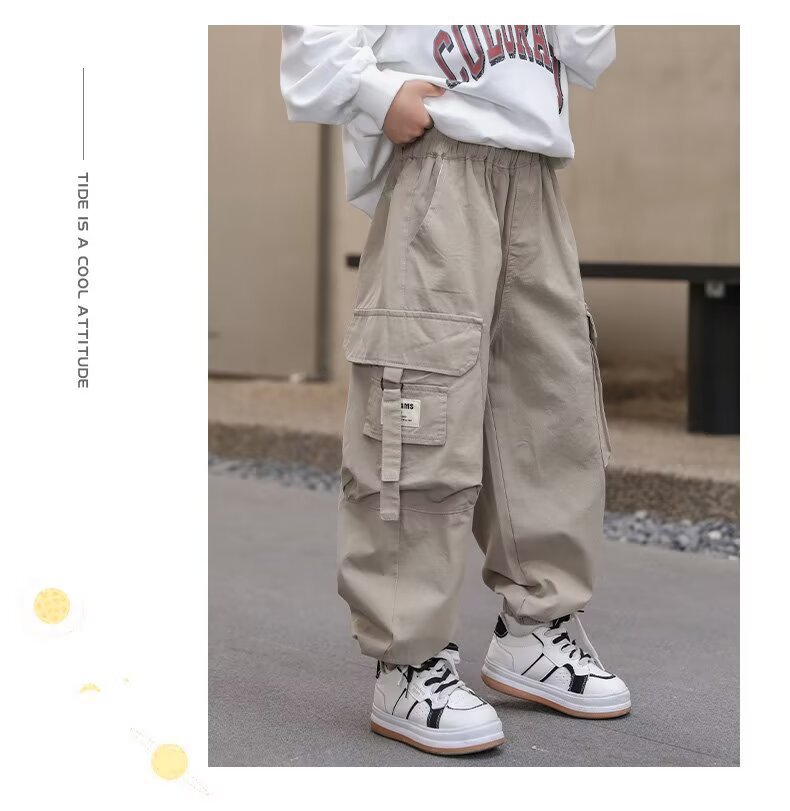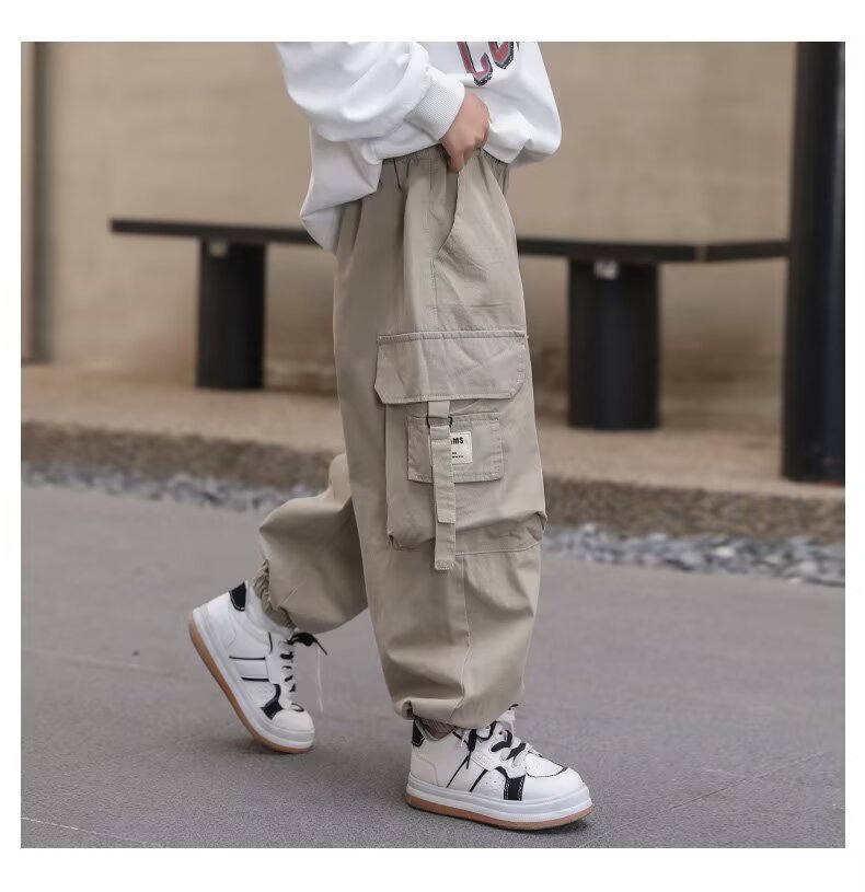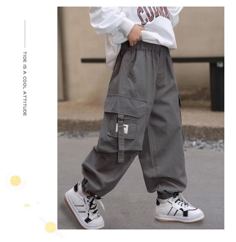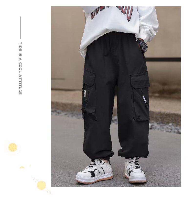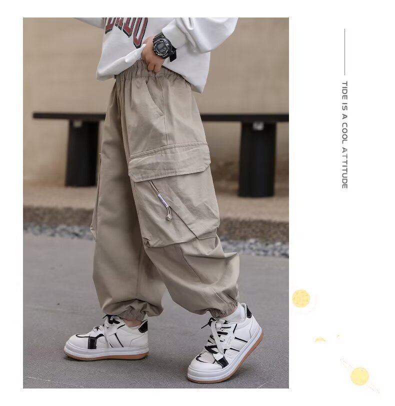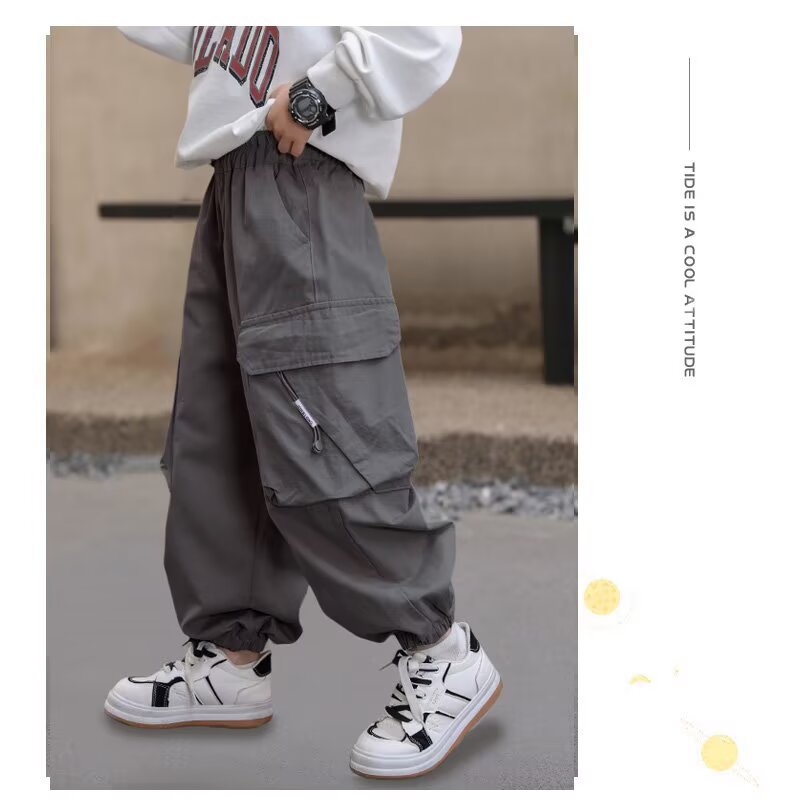 소년 바지 여름 얇은 2025 새로운 어린이 여름 작업복 바지 중형 및 대형 소년 얼음 실크 모기 방지 바지스토어 가기