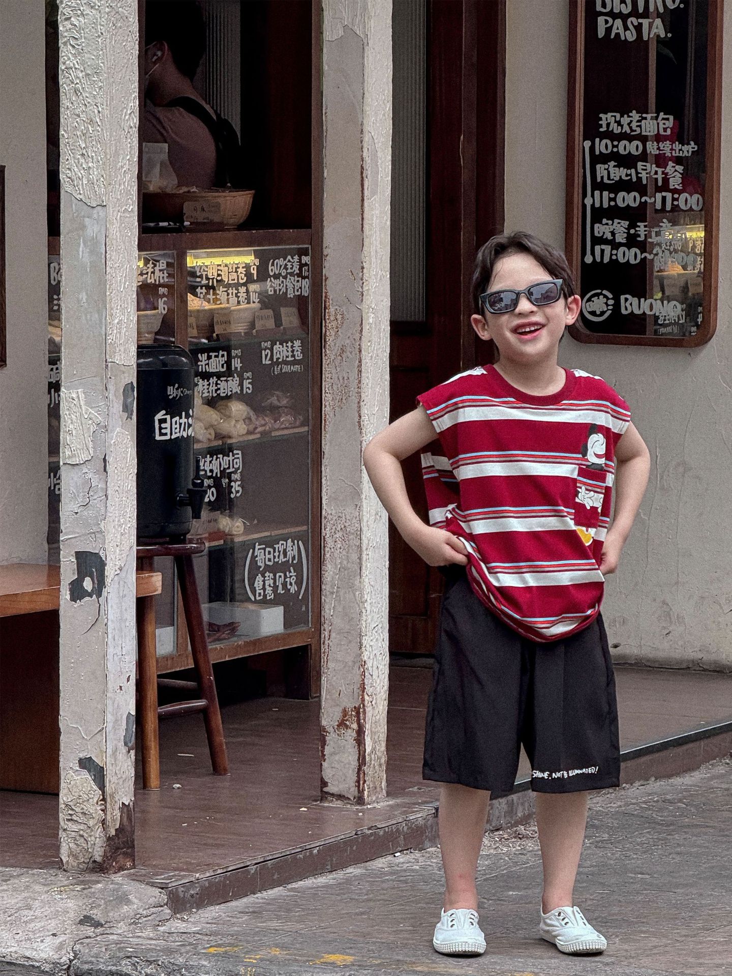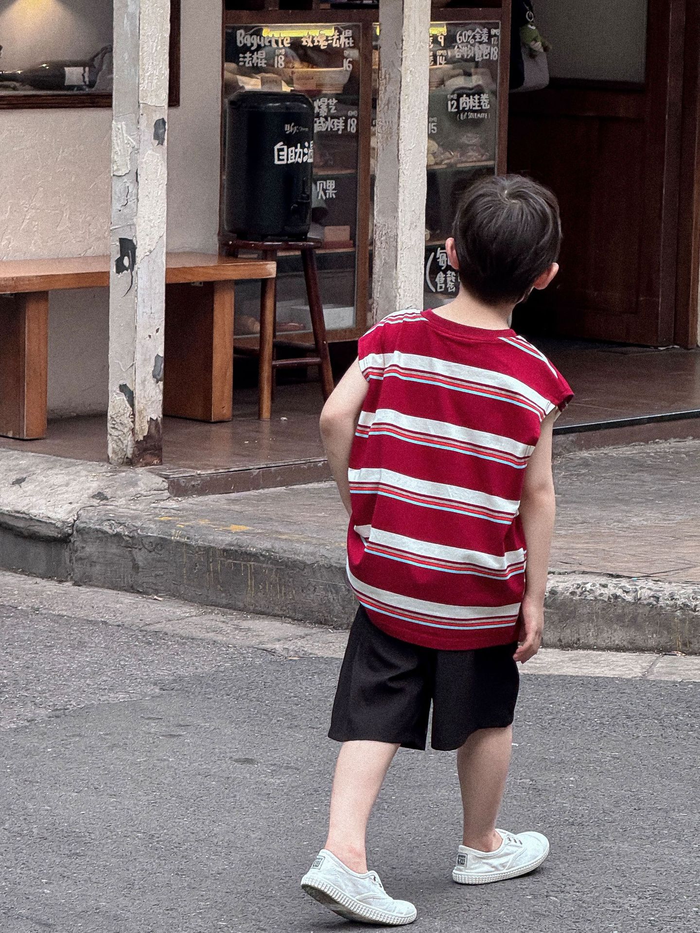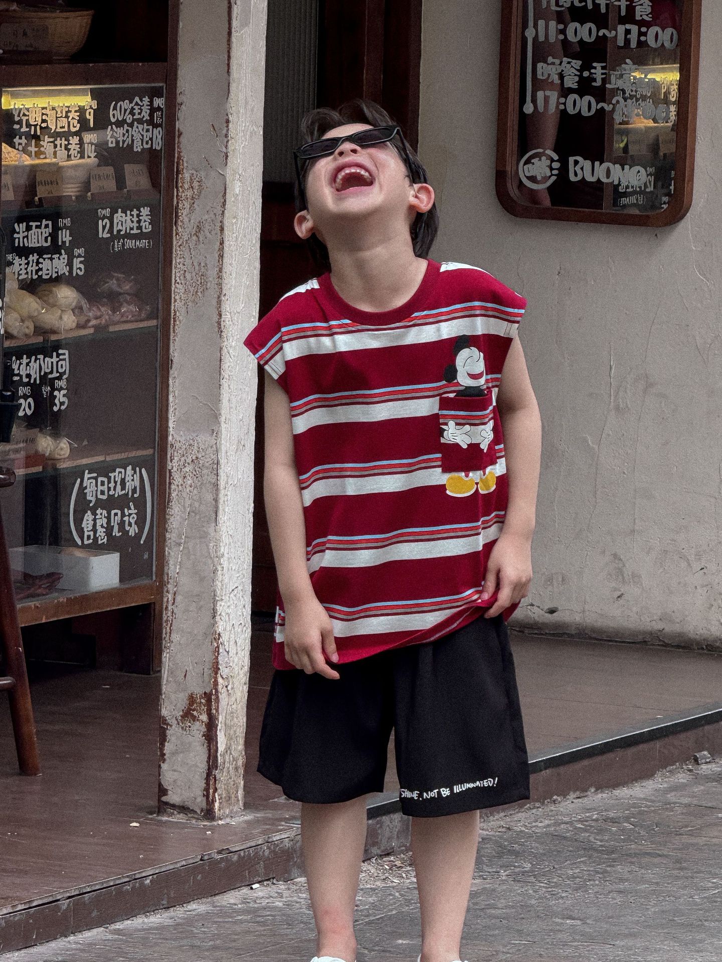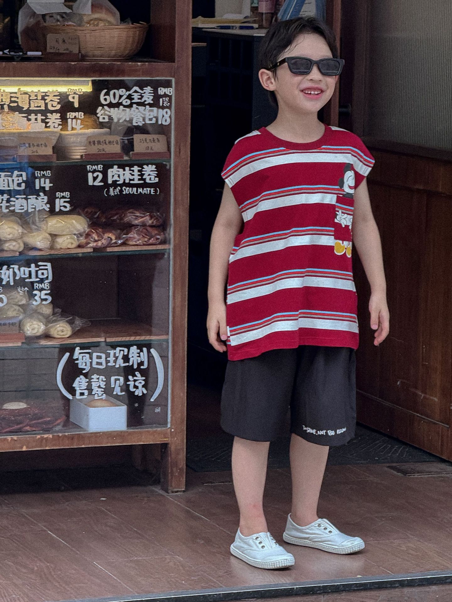 Lanyu 25 여름 한국 아동복 소년과 소녀를위한 빨간 줄무늬 만화 프린트 포켓 민소매 조끼 탑스토어 가기