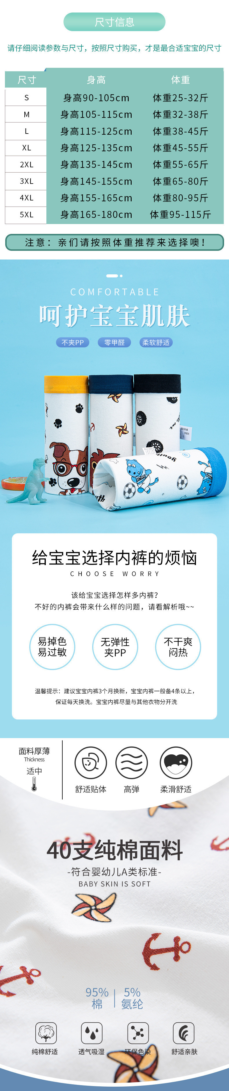 남아용 아동 속옷, 면 100%, 중대형 아동용 사각팬티, A형, 3~9~12세, 공식 사각팬티스토어 가기