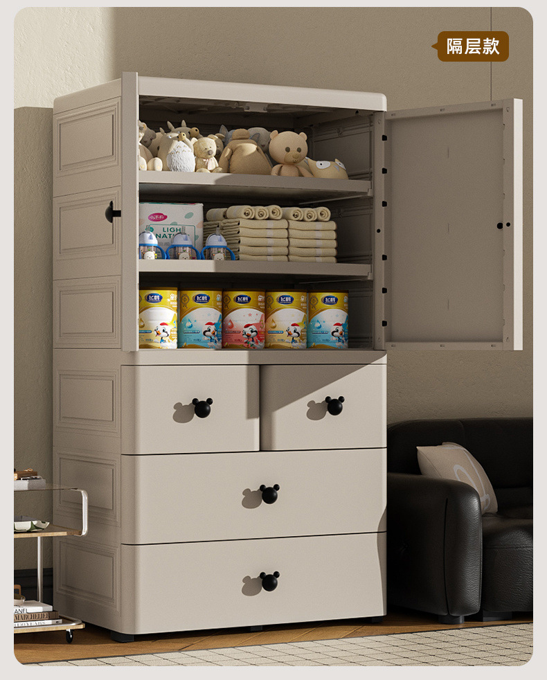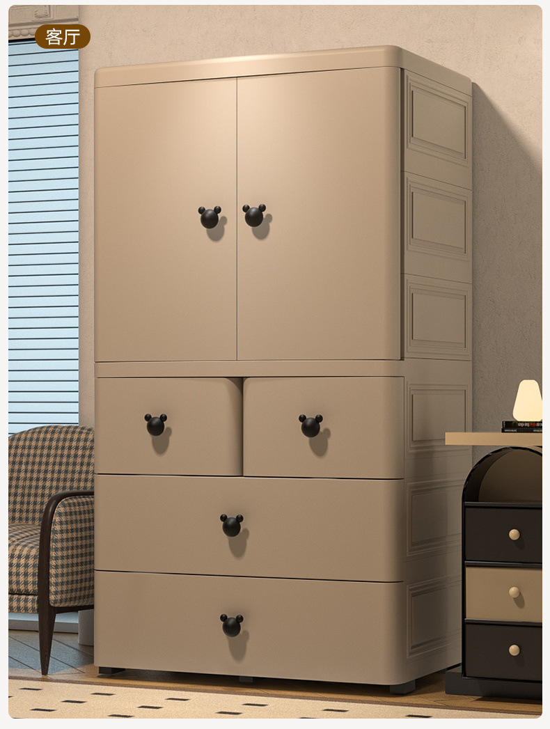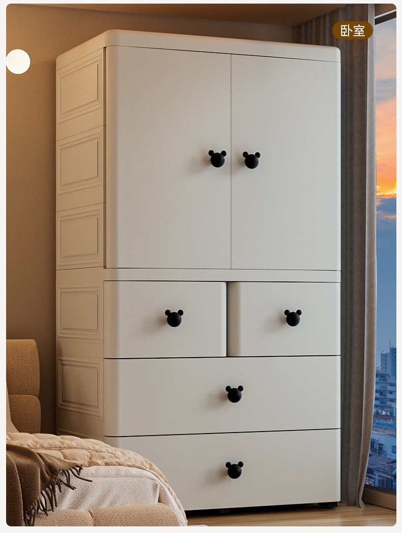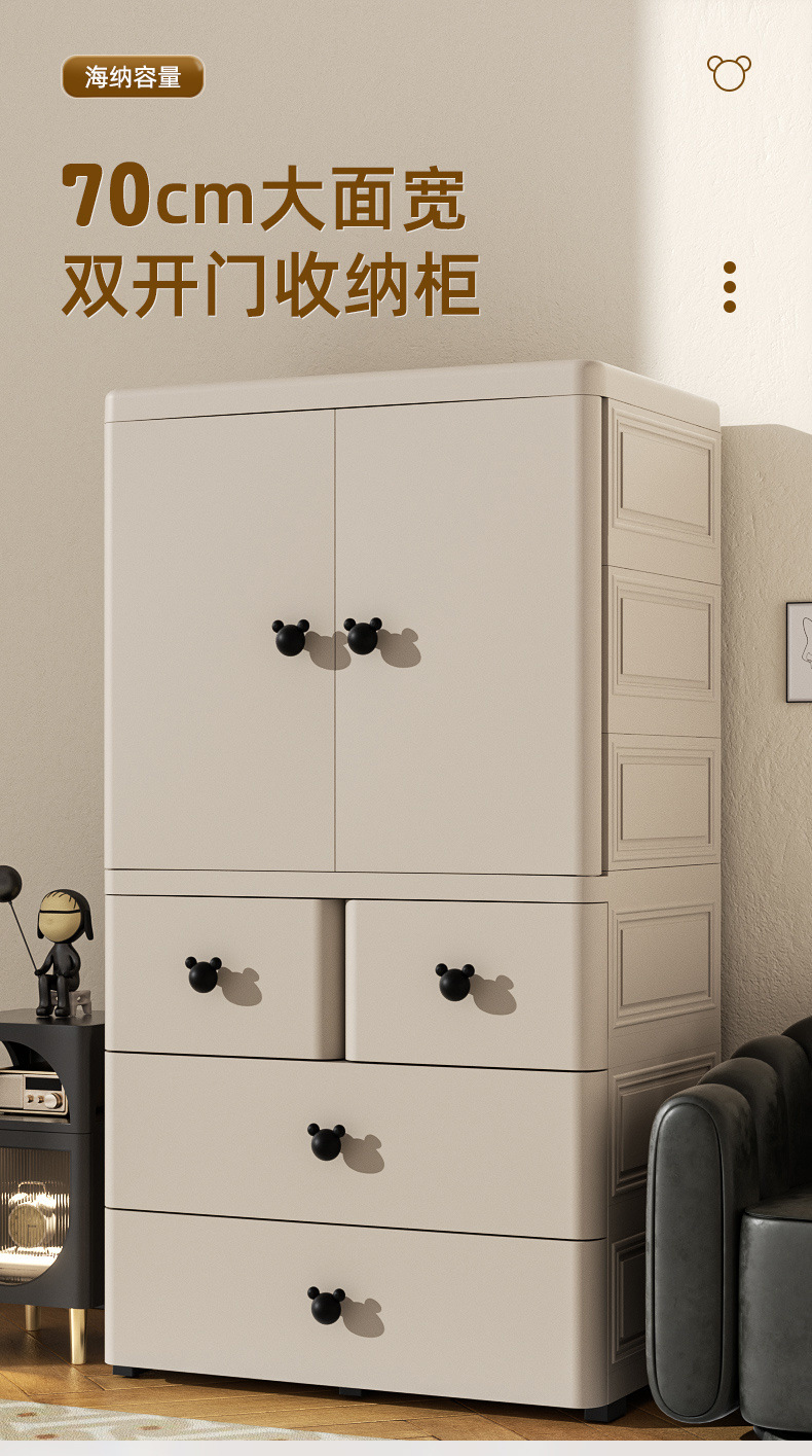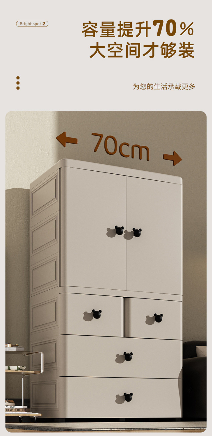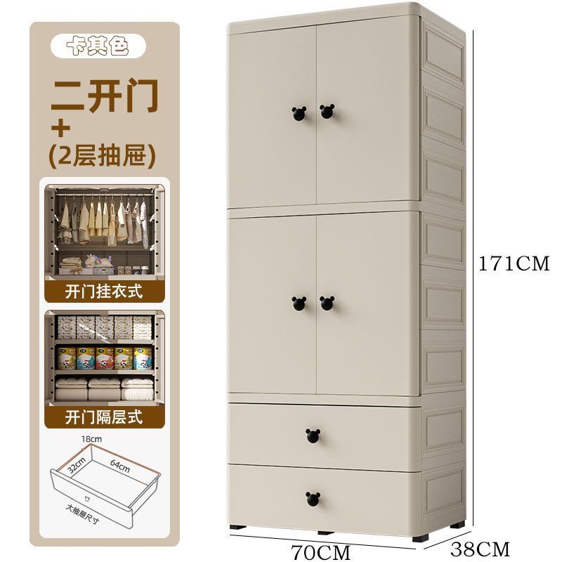 어린이 옷장 70cm 양문 서랍형 수납장 간이 옷장 가정용 서랍장 수납 두꺼워지고 높아짐