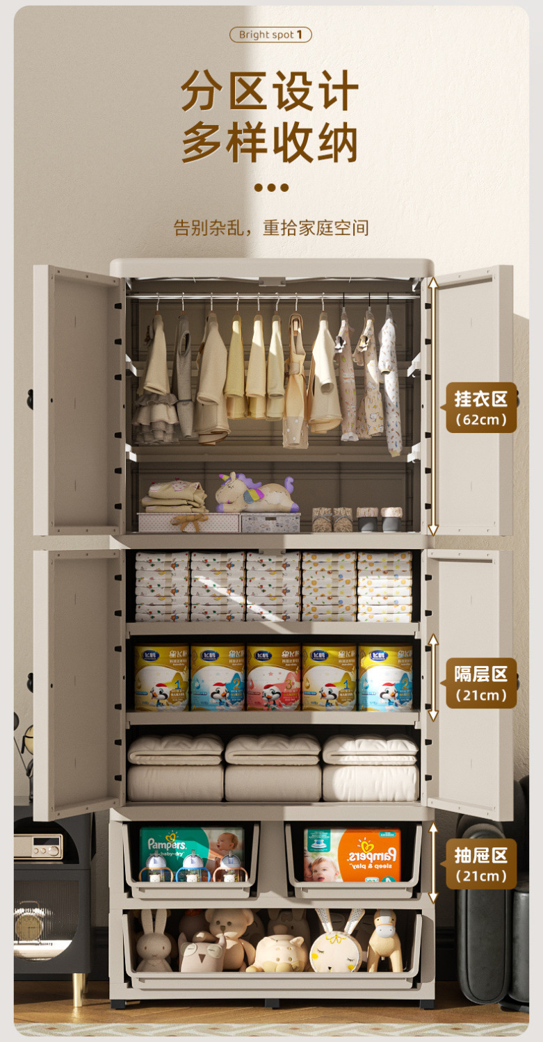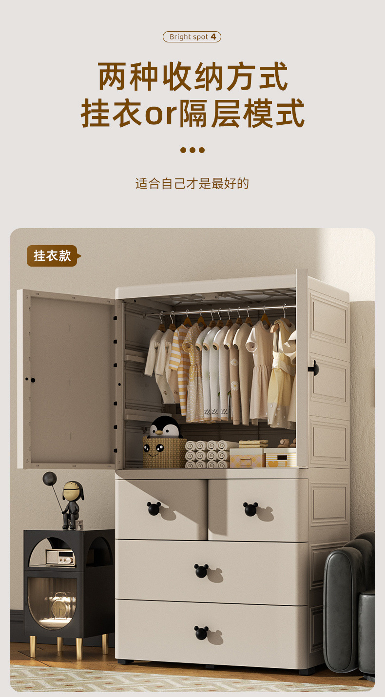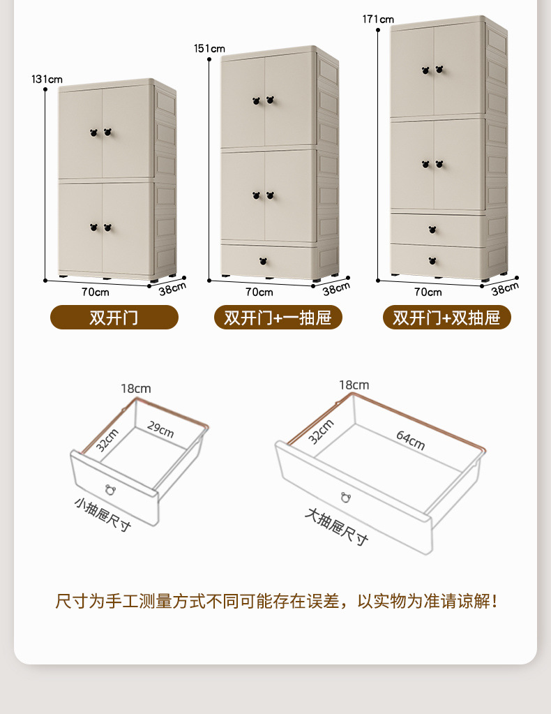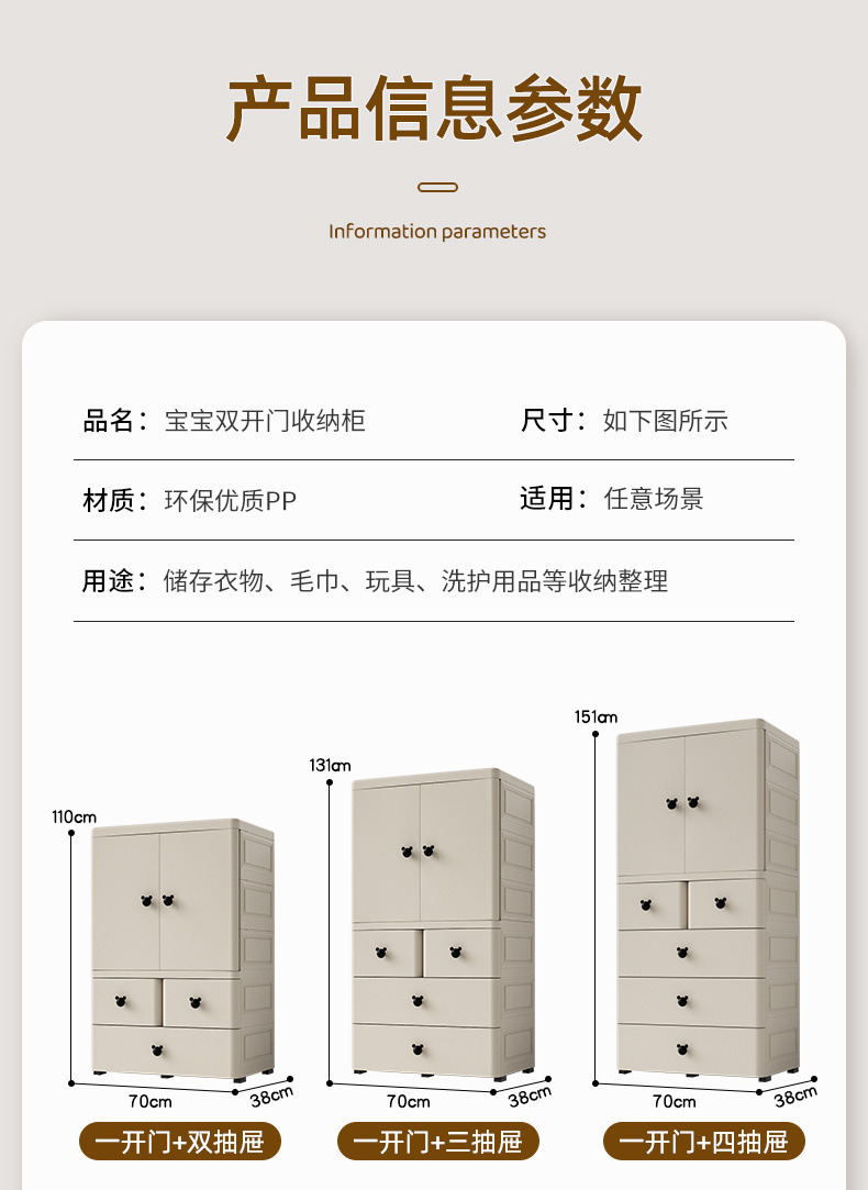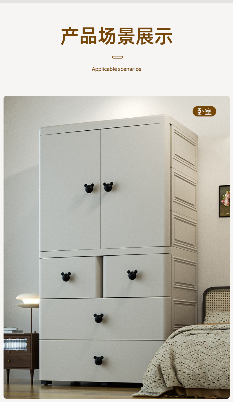 어린이 옷장 70cm 양문 서랍형 수납장 간이 옷장 가정용 서랍장 수납 두꺼워지고 높아짐