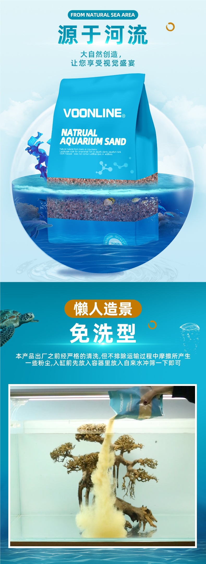 Woveland 어항 바닥 모래 조경 모래 메이크업 모래 물 초원 생 어항 열대 우림 모래 바다 모래 검은 강 모래는 물이 탁하지 않습니다