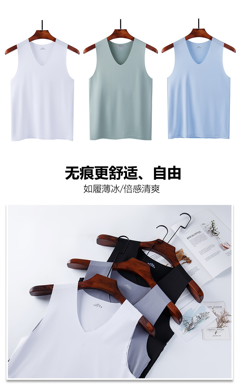 공장 직접 판매 얼음 실크 원활한 남성 조끼 남성 여름 슬림 청소년 스포츠 허들 민소매 속옷 기본 레이어