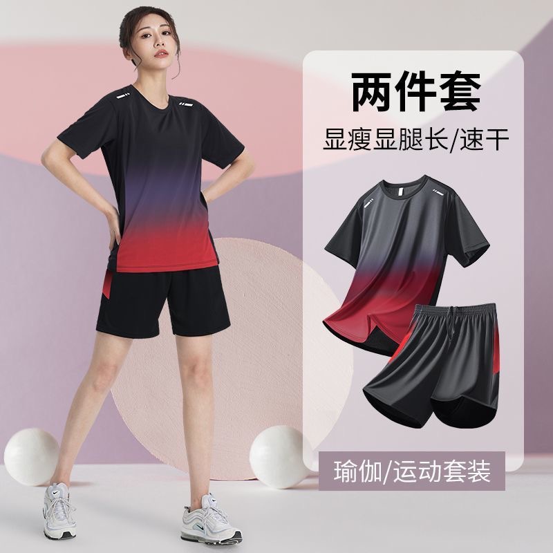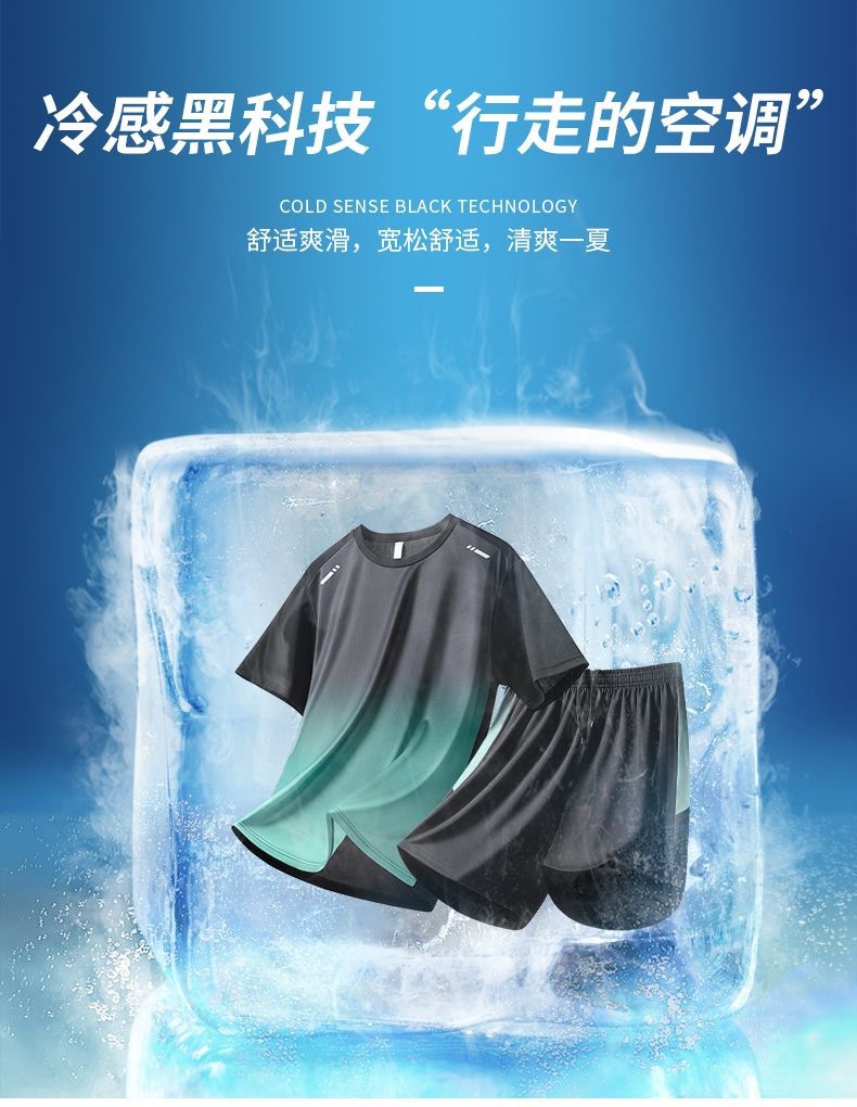 얇은 얼음 실크 통기성 스포츠 슈트 여름 남성과 여성의 달리기 스포츠 속건성 피트니스 대형 야외 아침 달리기 슈트스토어 가기