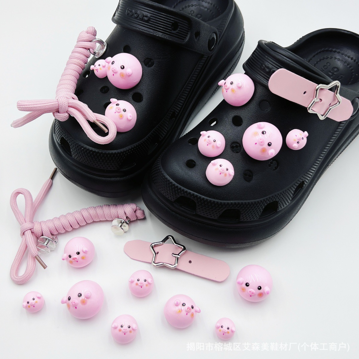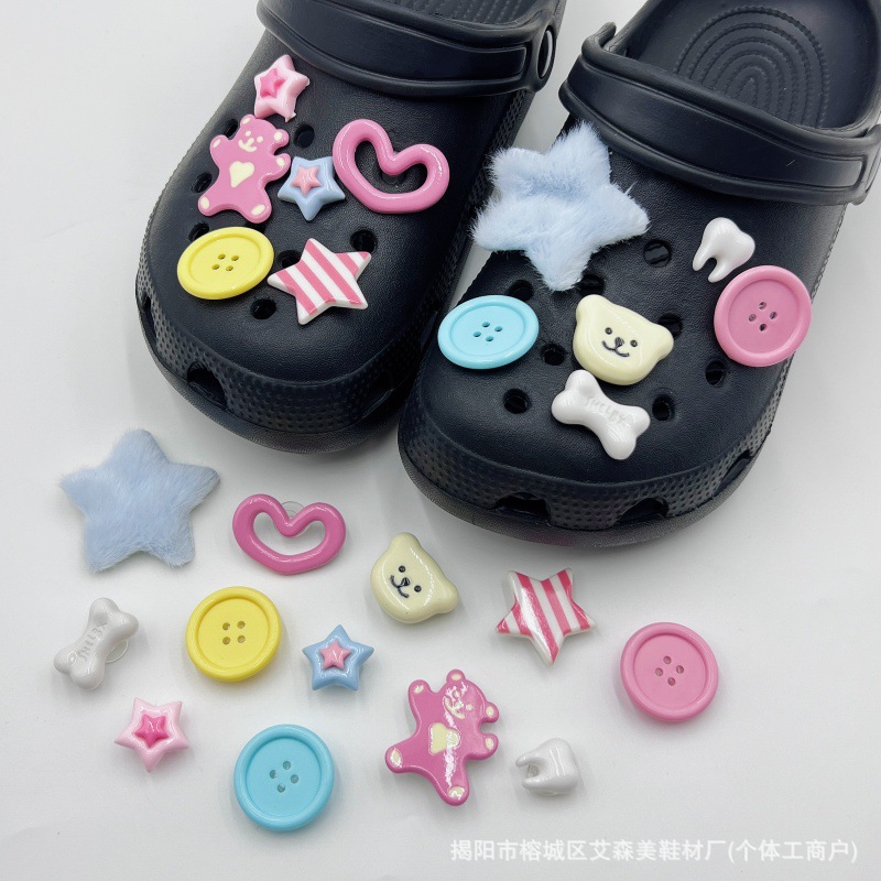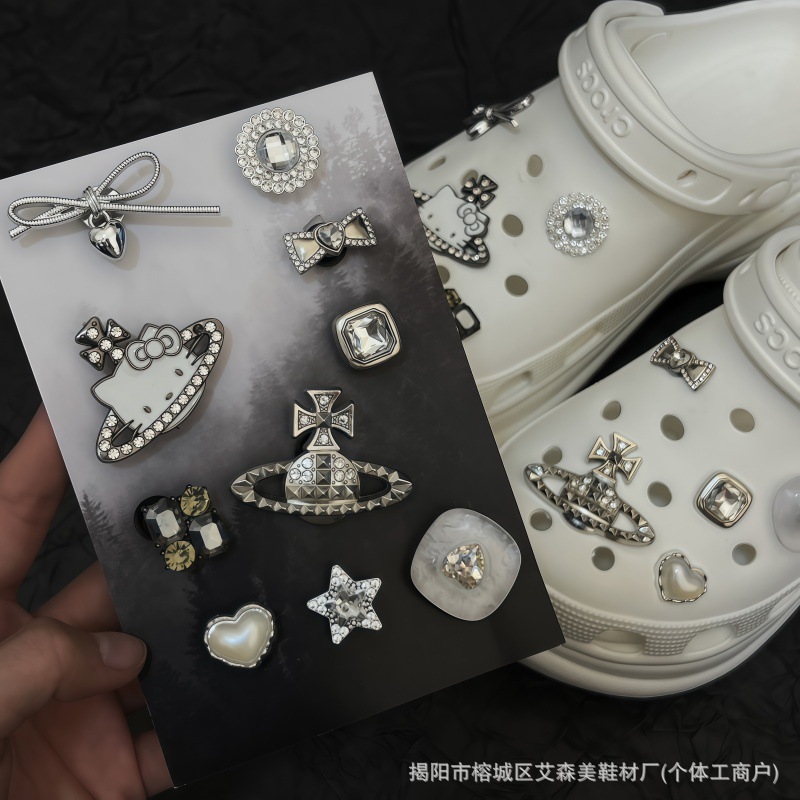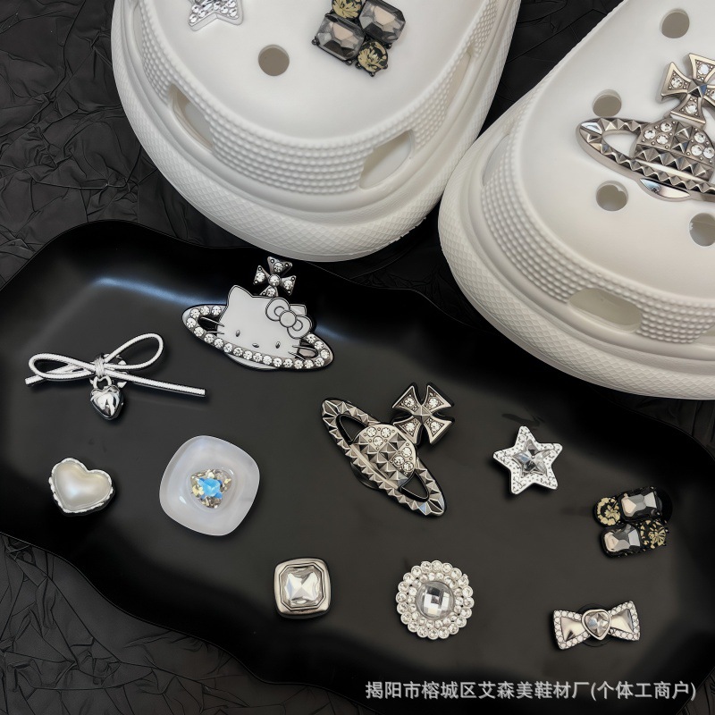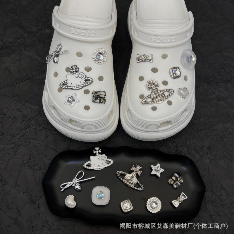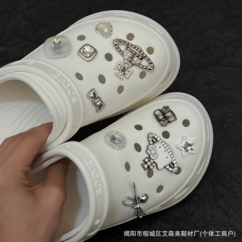핑크 KT 나막신 신발 꽃 신발 버클 액세서리 diy 장식 여름 도파민 귀여운 반짝 이는 나막신 꽃스토어 가기