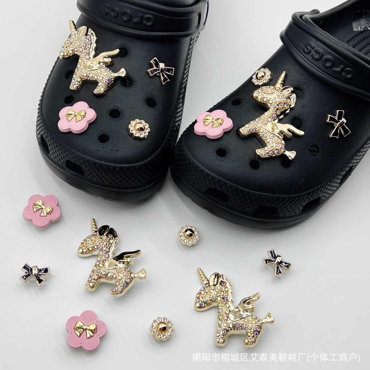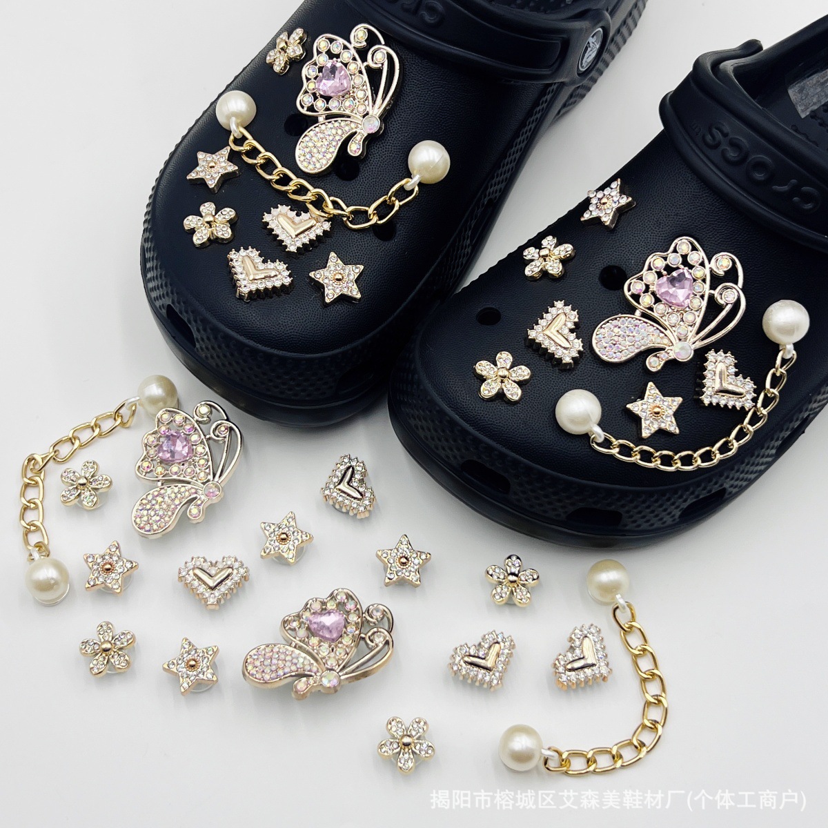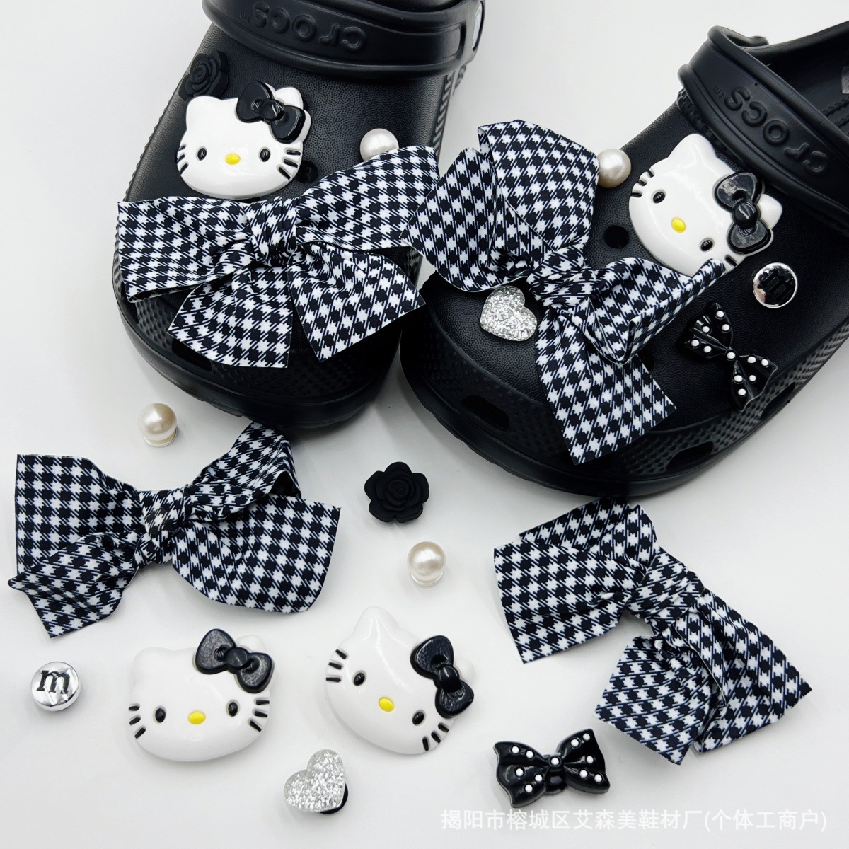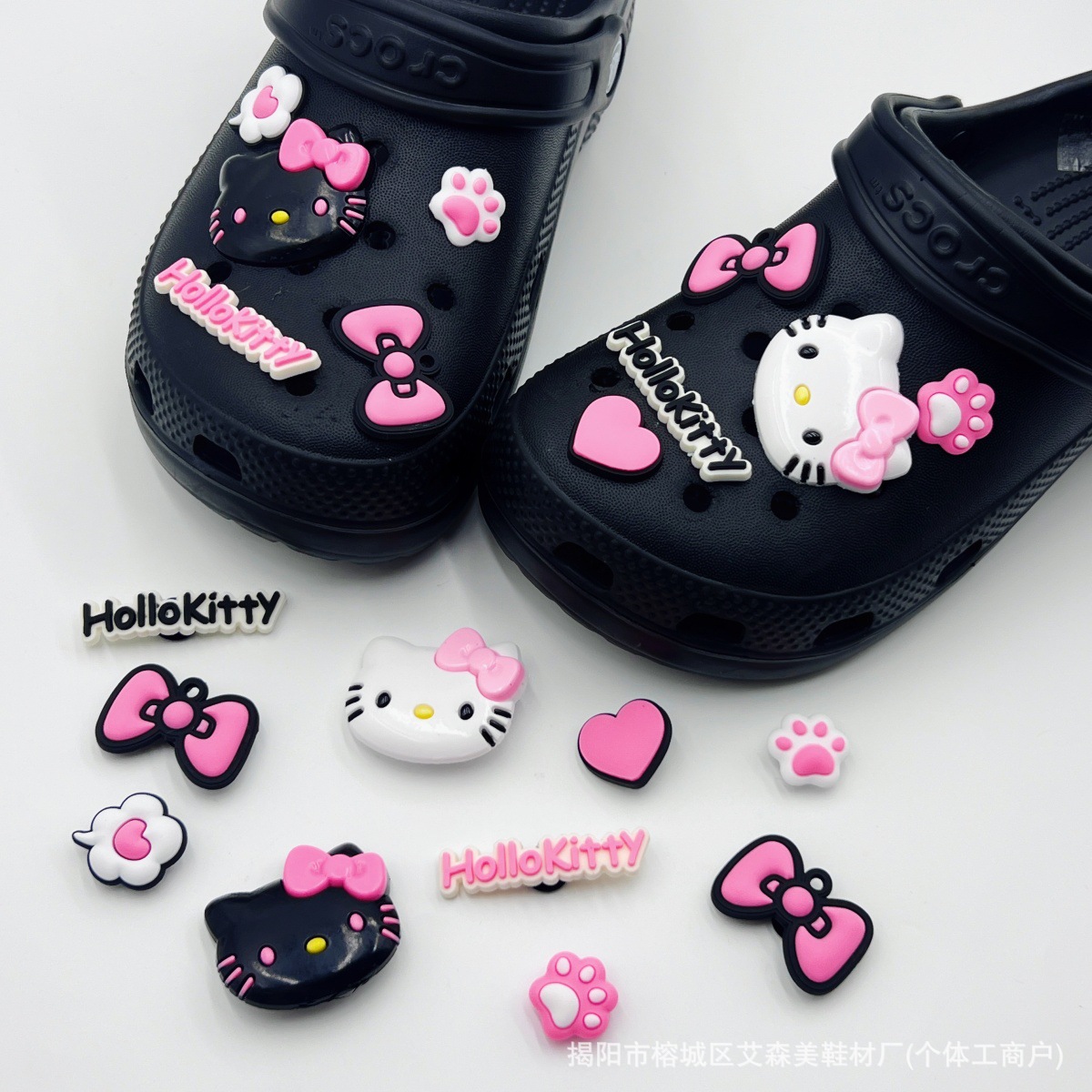 핑크 KT 나막신 신발 꽃 신발 버클 액세서리 diy 장식 여름 도파민 귀여운 반짝 이는 나막신 꽃스토어 가기