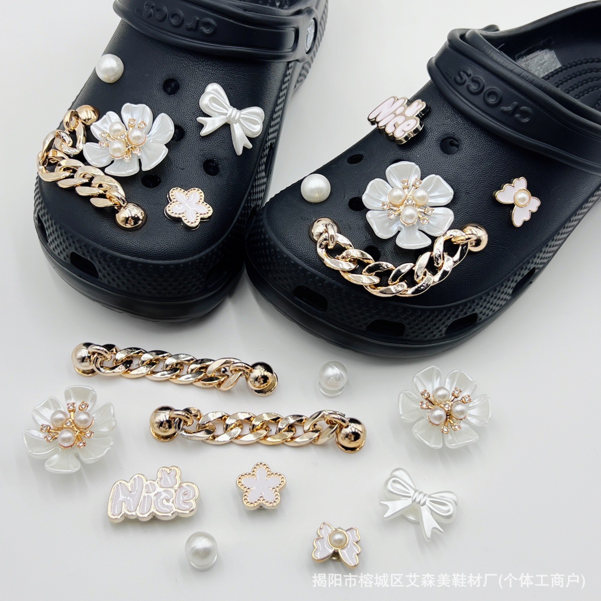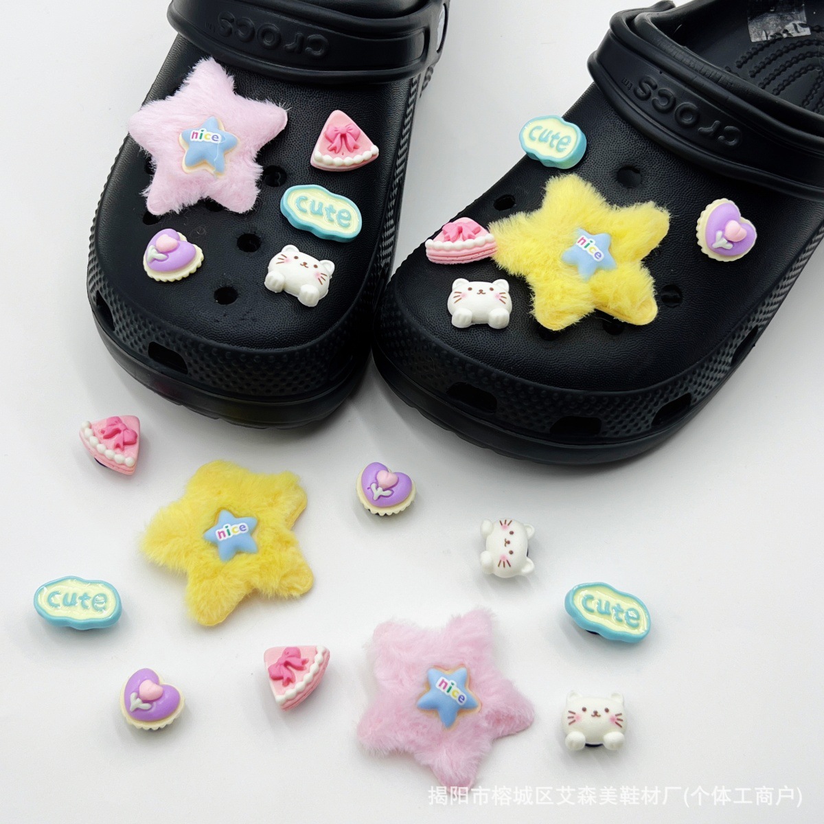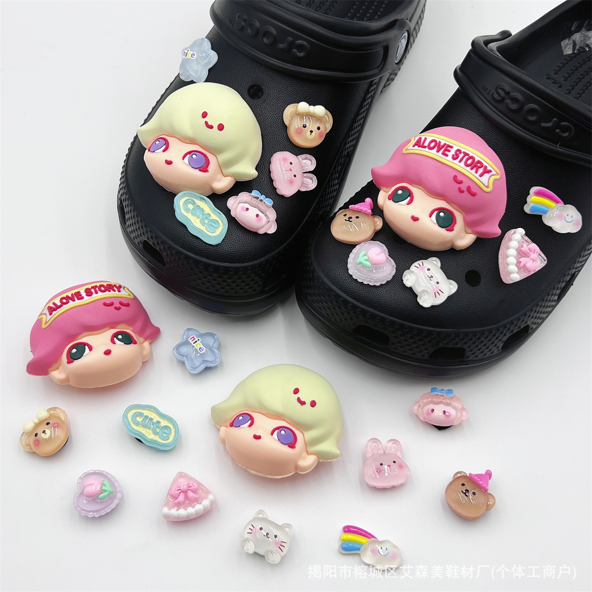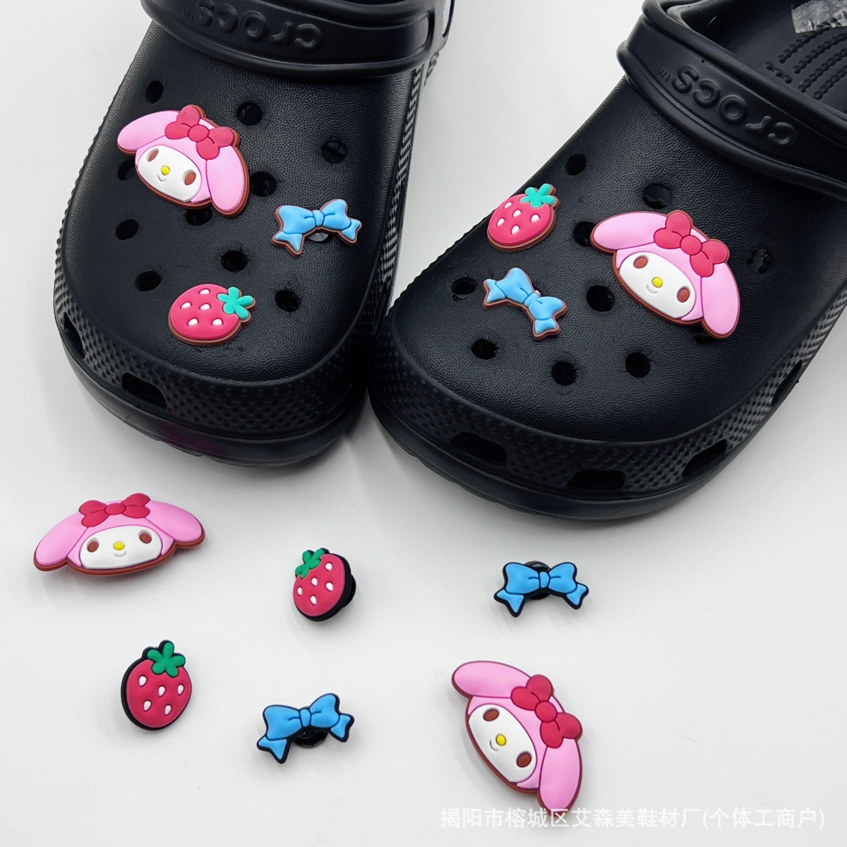핑크 KT 나막신 신발 꽃 신발 버클 액세서리 diy 장식 여름 도파민 귀여운 반짝 이는 나막신 꽃스토어 가기