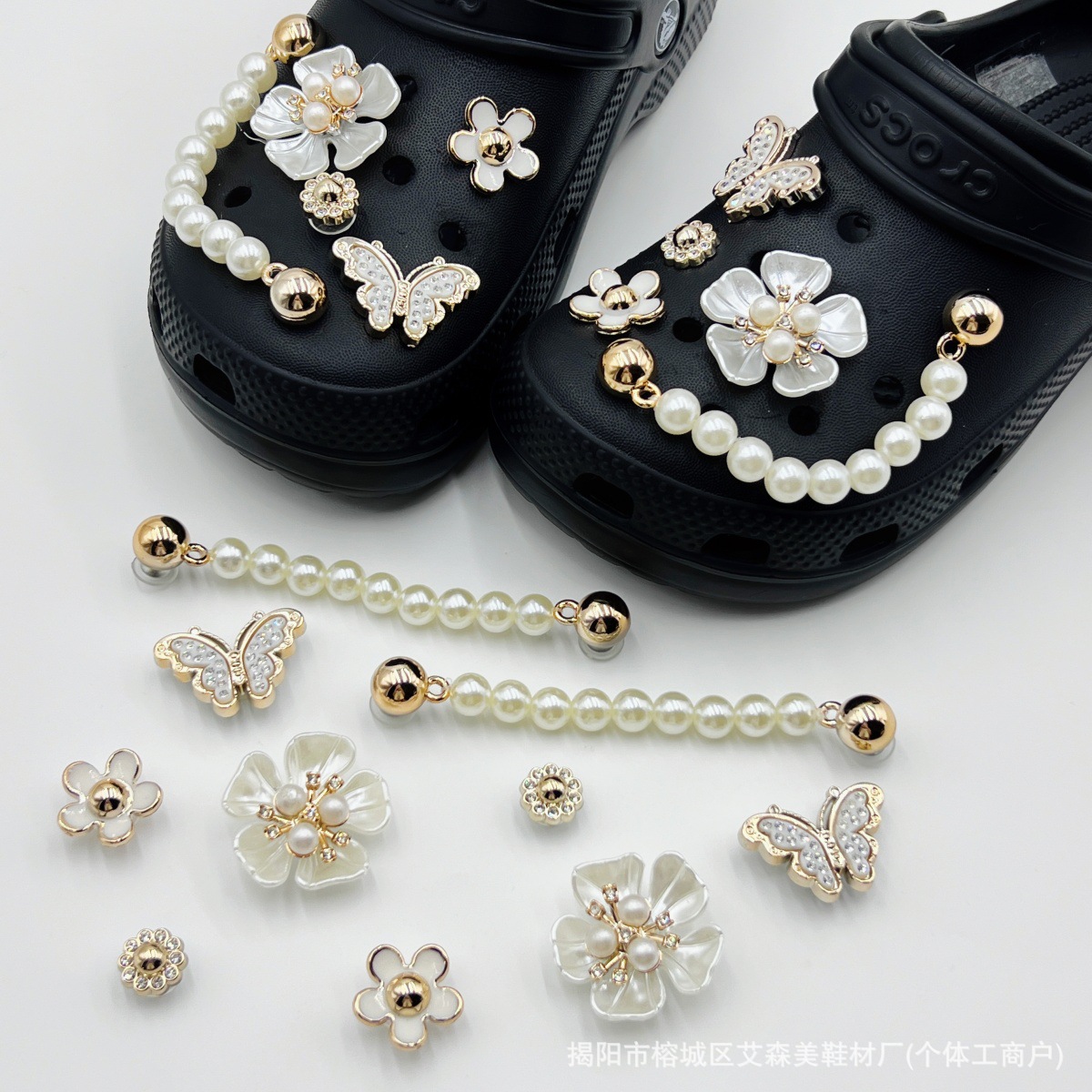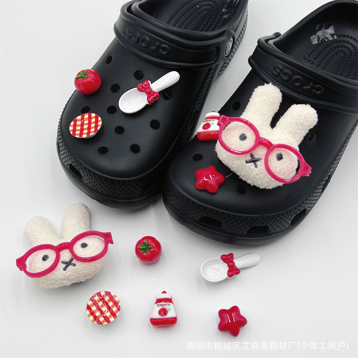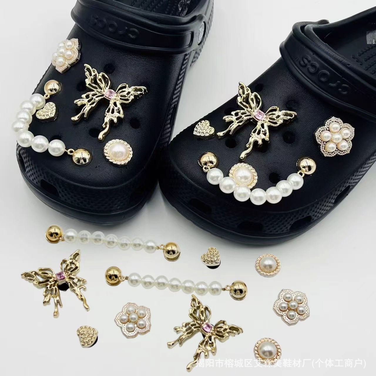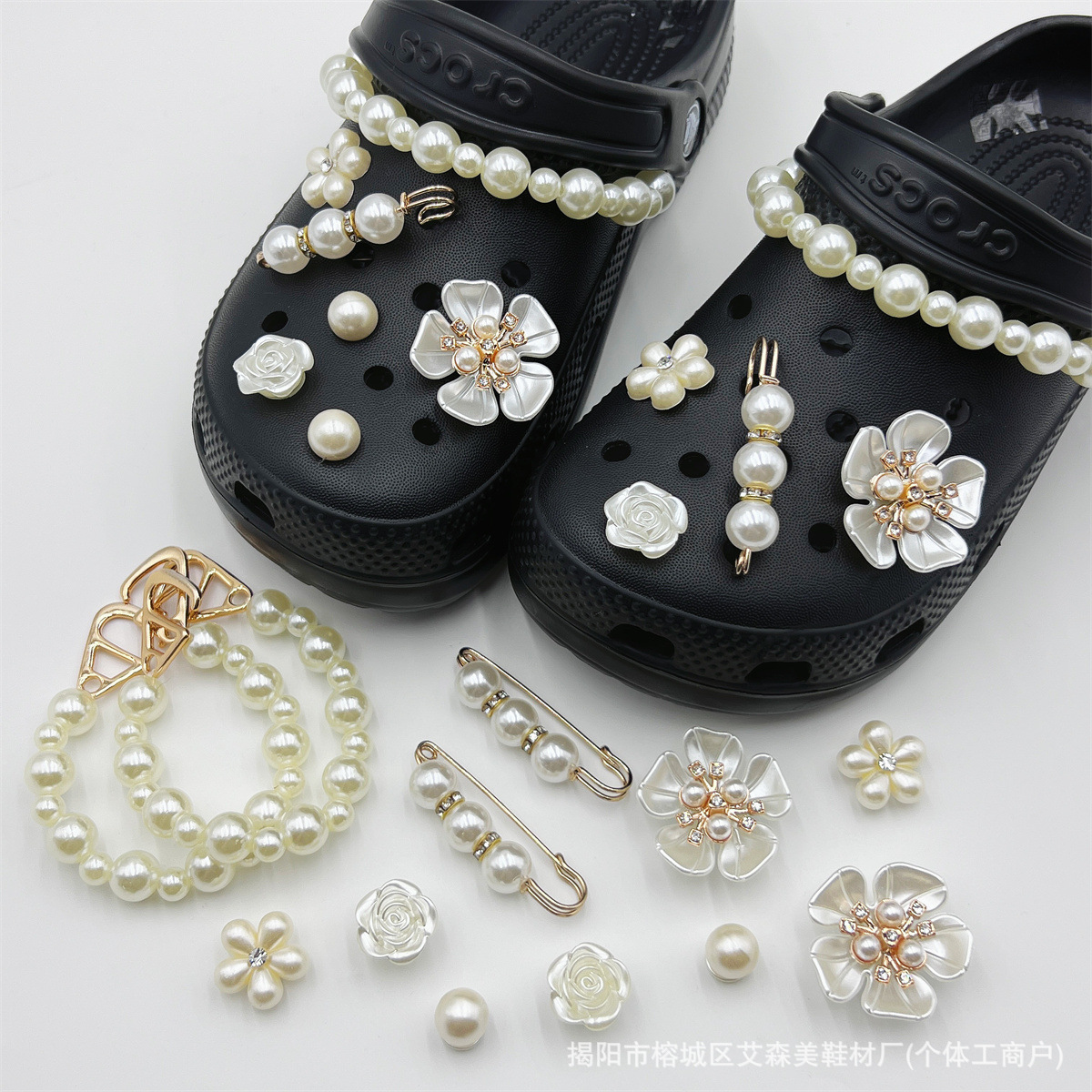 핑크 KT 나막신 신발 꽃 신발 버클 액세서리 diy 장식 여름 도파민 귀여운 반짝 이는 나막신 꽃스토어 가기