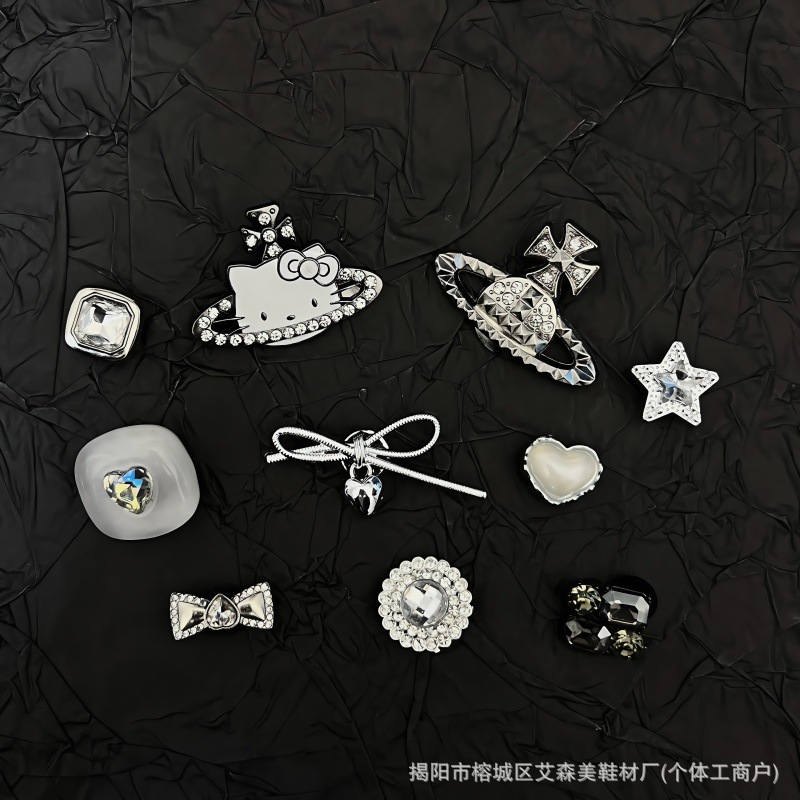핑크 KT 나막신 신발 꽃 신발 버클 액세서리 diy 장식 여름 도파민 귀여운 반짝 이는 나막신 꽃