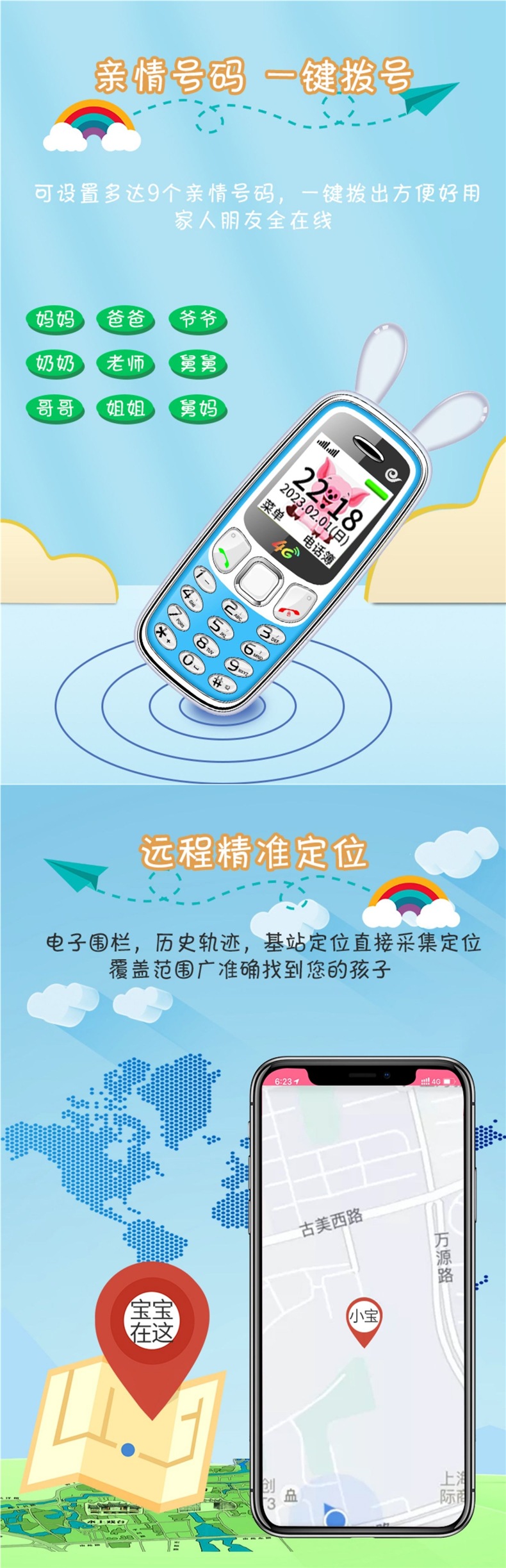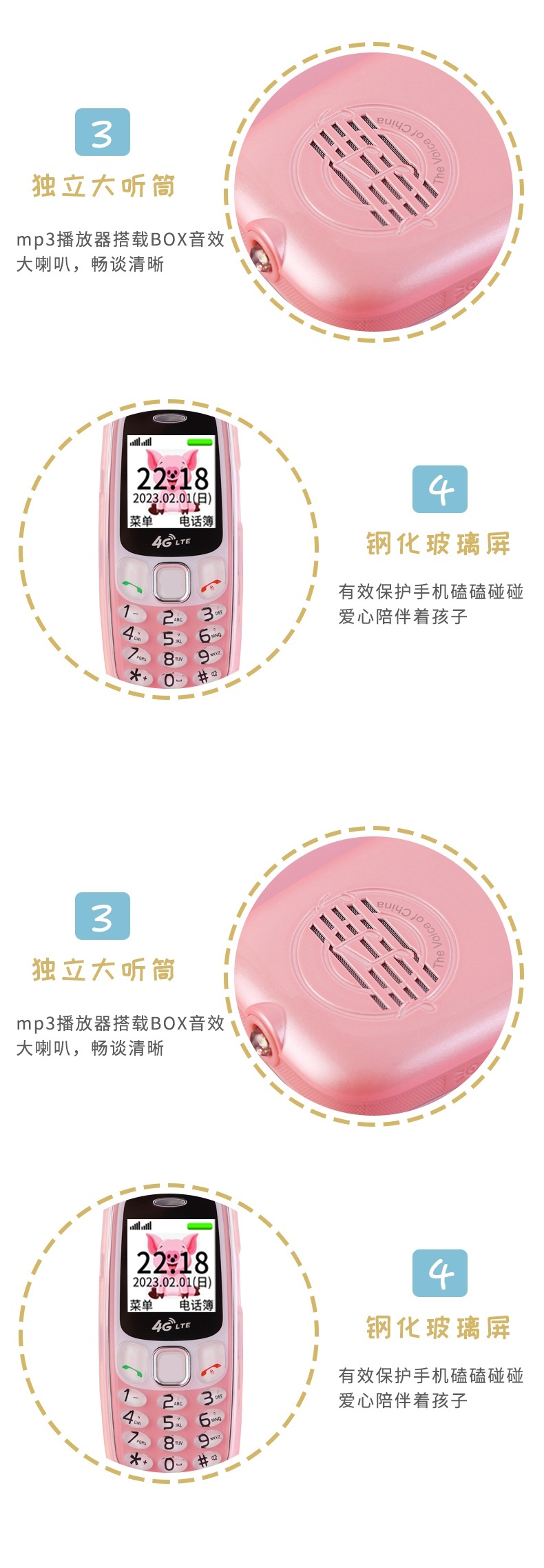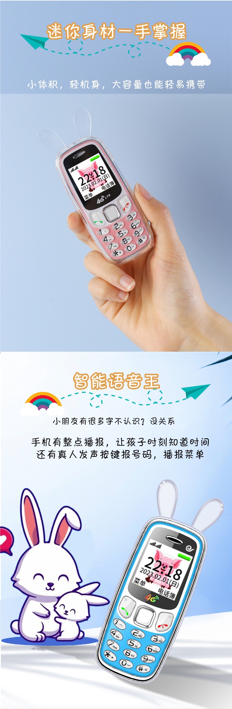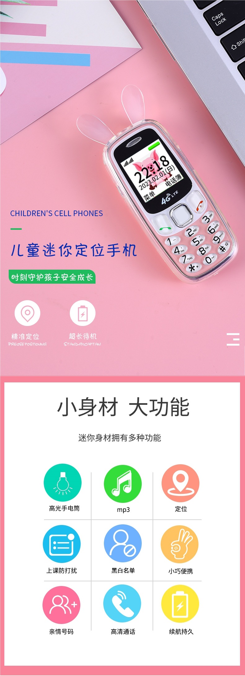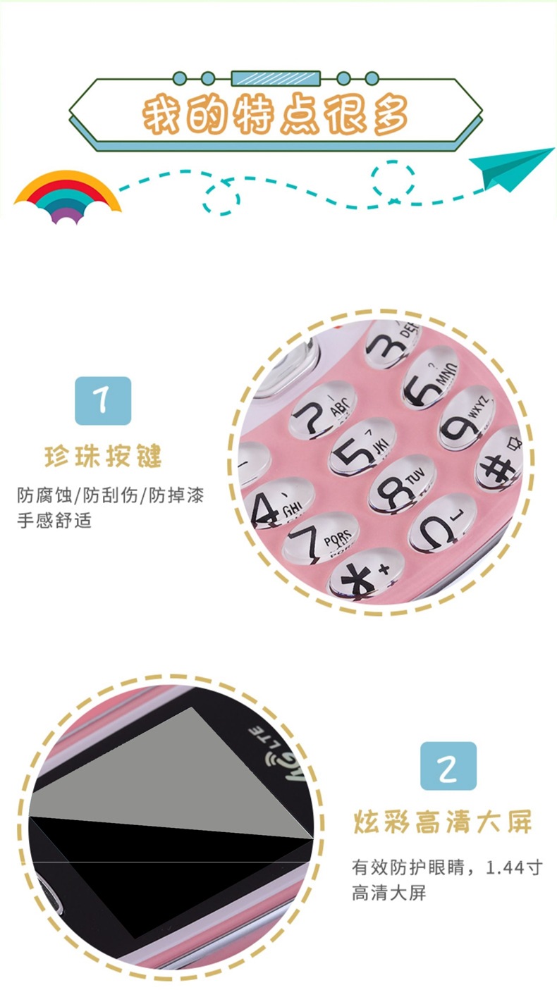 [플래그십] 4G 어린이 및 학생용 미니 휴대폰, 중학생 및 고등학생의 인터넷 중독 방지, 소년 소녀를 위한 귀여운 만화스토어 가기
