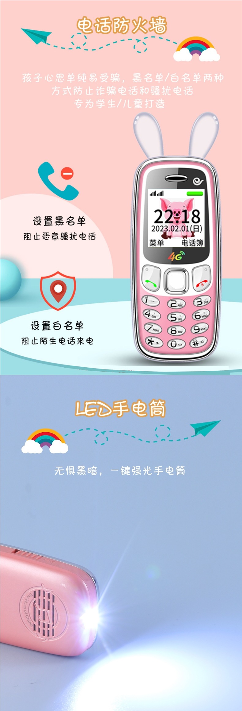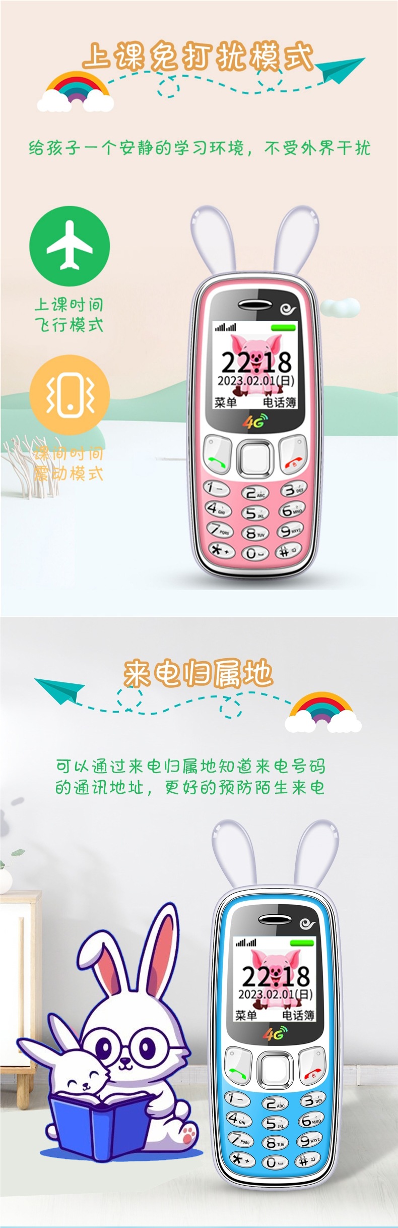 [플래그십] 4G 어린이 및 학생용 미니 휴대폰, 중학생 및 고등학생의 인터넷 중독 방지, 소년 소녀를 위한 귀여운 만화