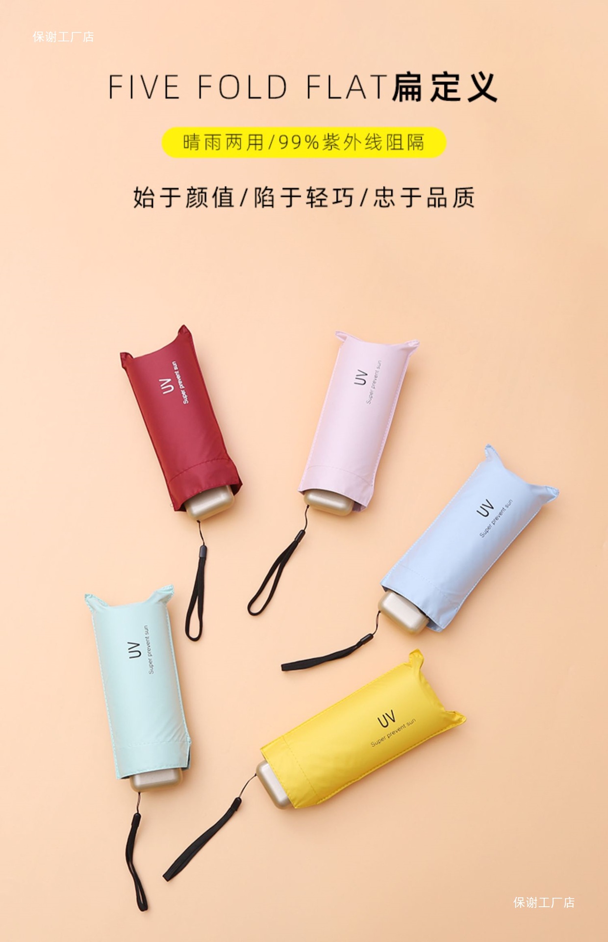 미니 50% off 태양 우산 태양 보호 UV 이중 목적 우산 여성 소형 휴대용 접는 파라솔 캡슐 우산스토어 가기
