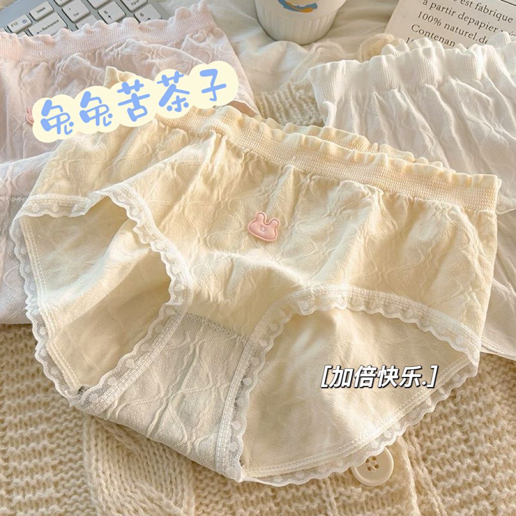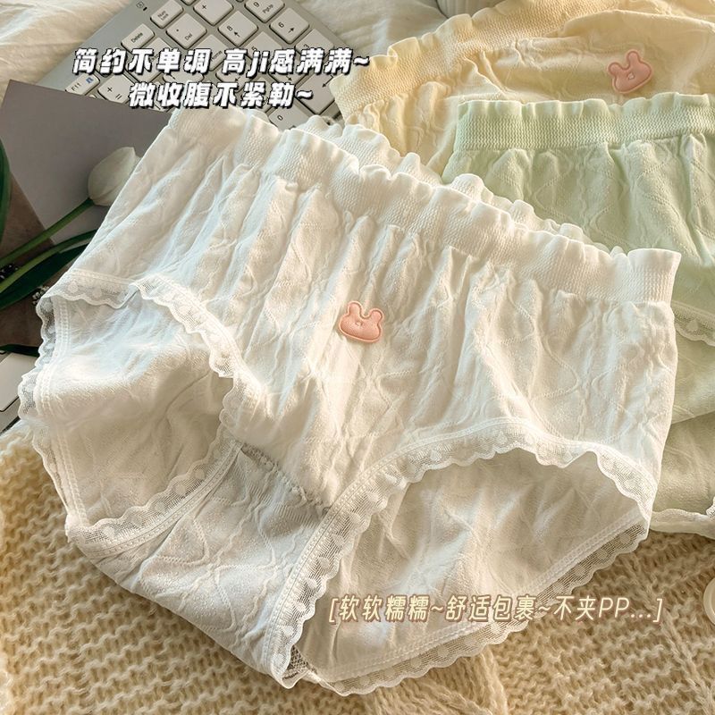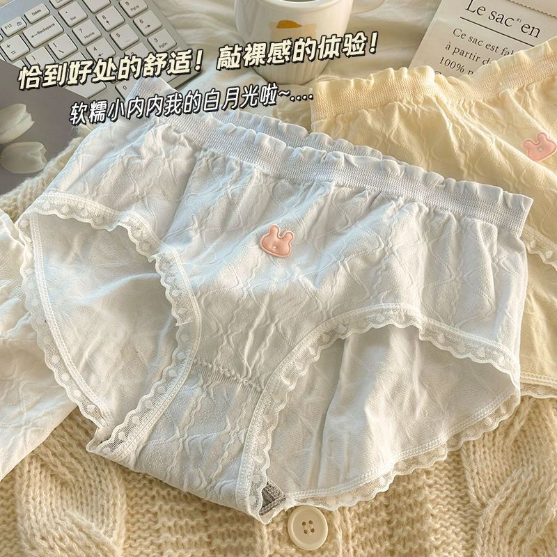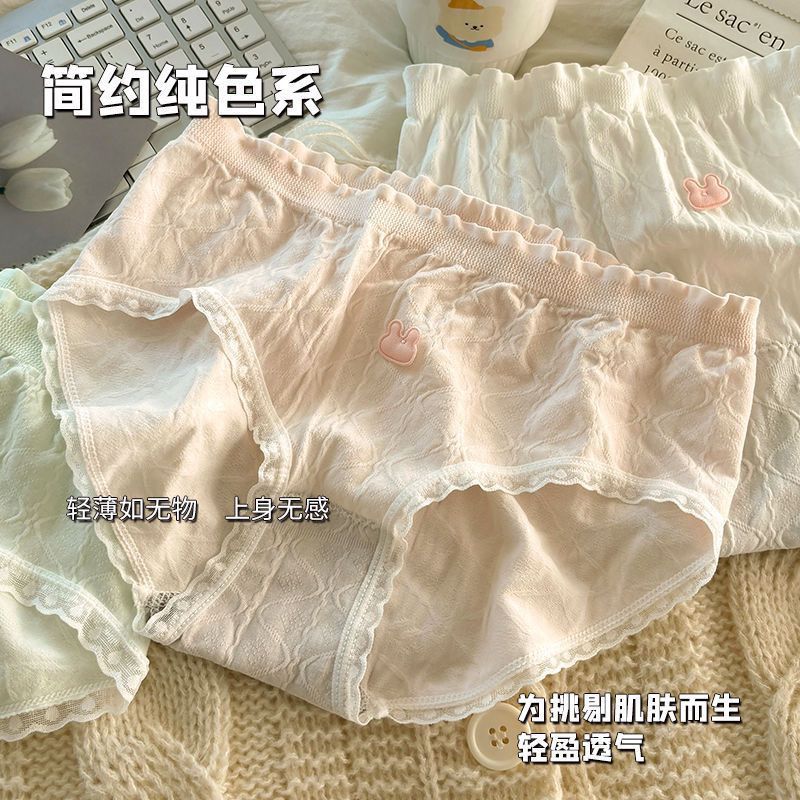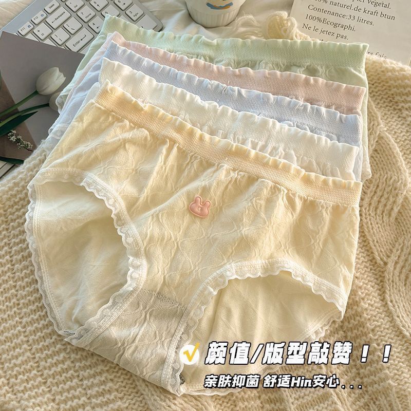 여성을위한 새로운 달콤한 속옷 순수 코튼 항균 일본식 중간 허리 여자 학생 통기성 코튼 가랑이 팬티스토어 가기