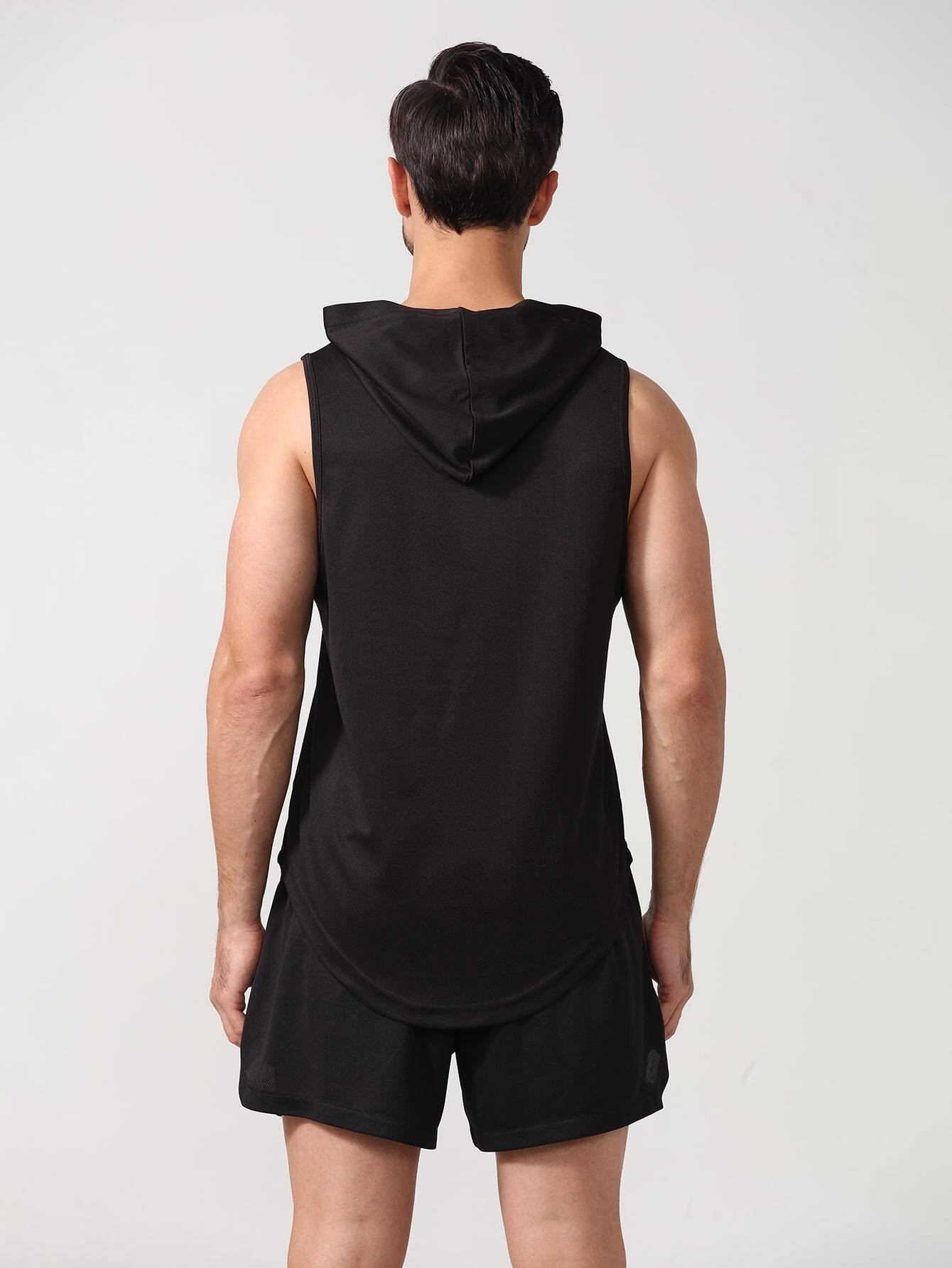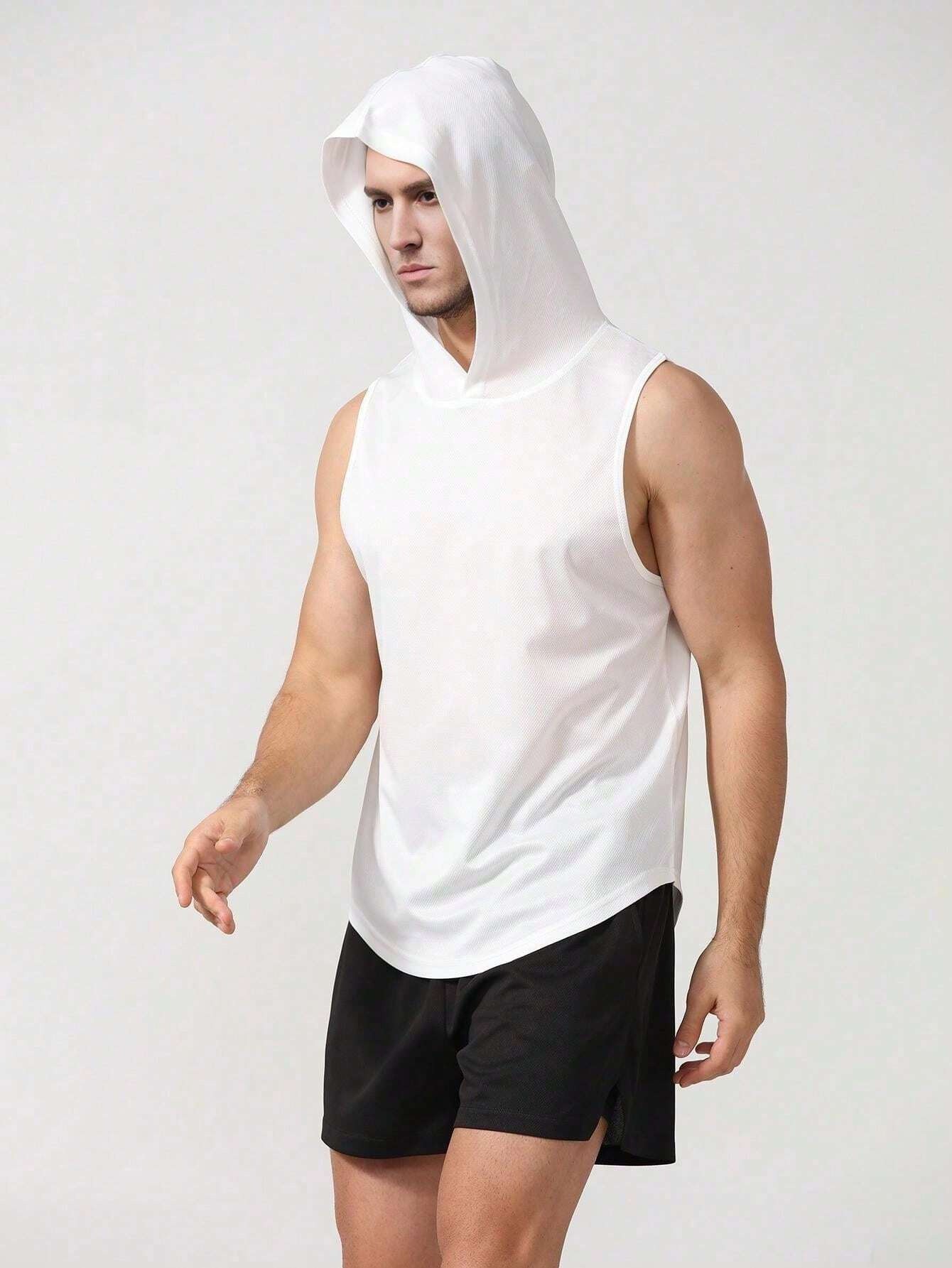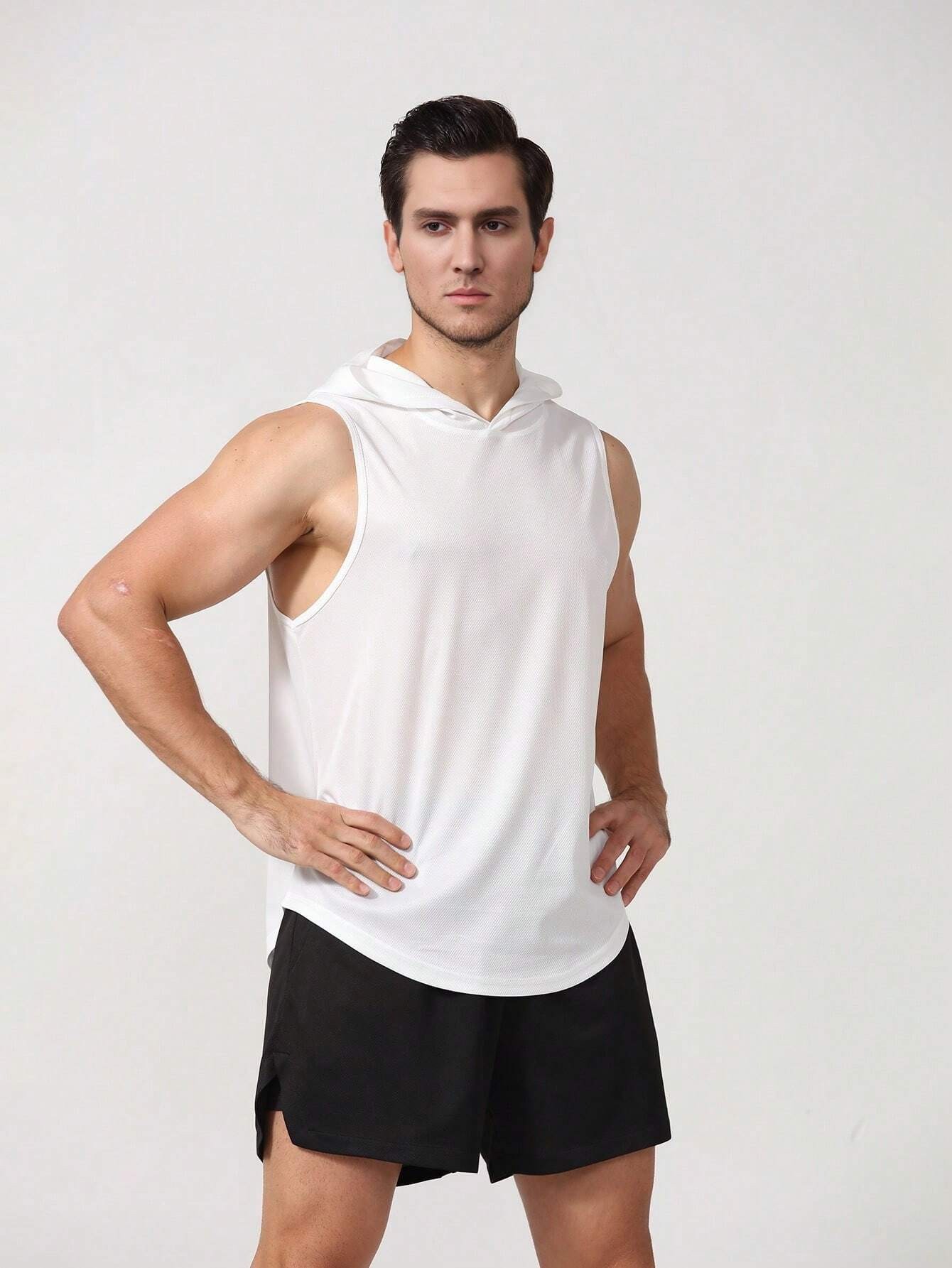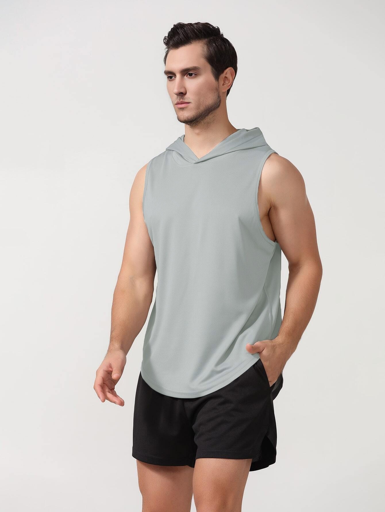국경 간 2025 신상품 여름 남성 유럽 사이즈 후드 스포츠 조끼 솔리드 컬러 피트니스 조끼 풀오버 유럽과 미국의 대외 무역
