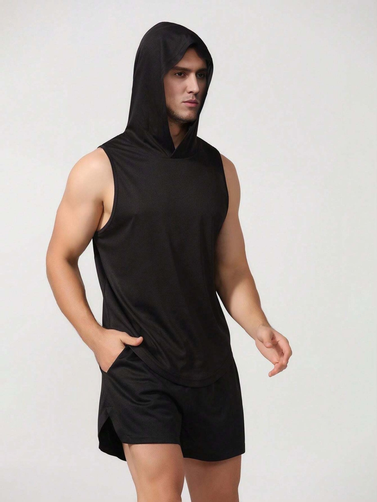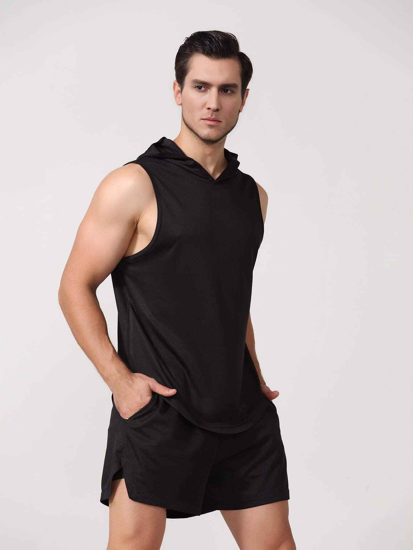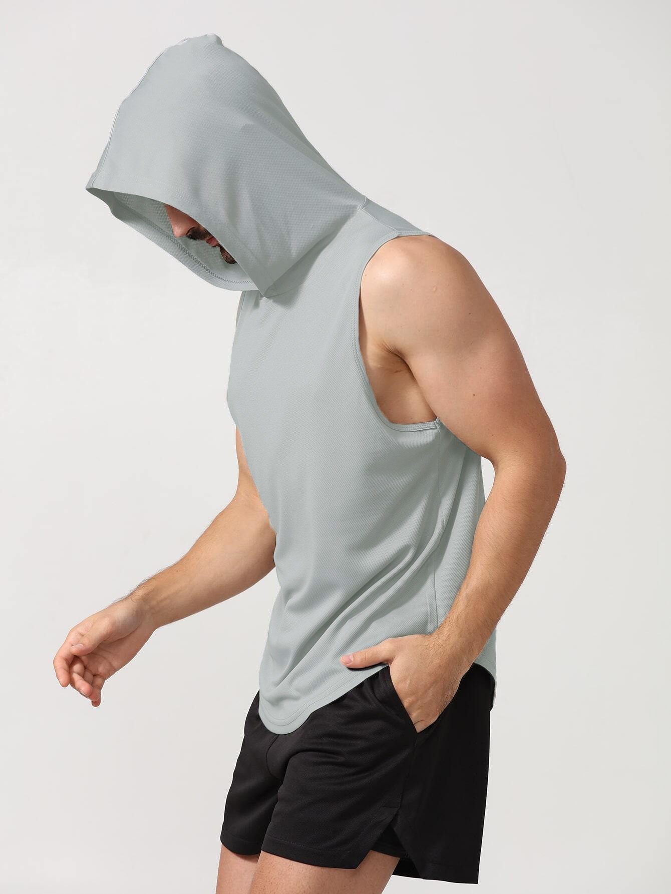 국경 간 2025 신상품 여름 남성 유럽 사이즈 후드 스포츠 조끼 솔리드 컬러 피트니스 조끼 풀오버 유럽과 미국의 대외 무역스토어 가기