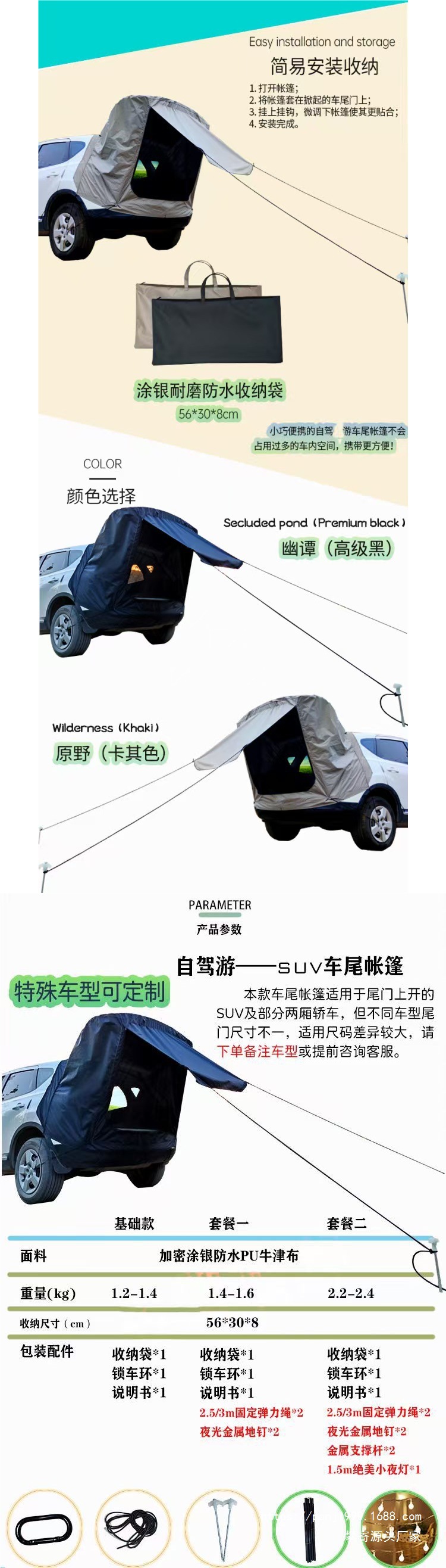 트렁크 자동차 텐트, 필드 캠핑카 지붕, 야외 SVU 자동차 테일 확장, 자율 주행 여행, 모기 방지 및 비 방지 텐트