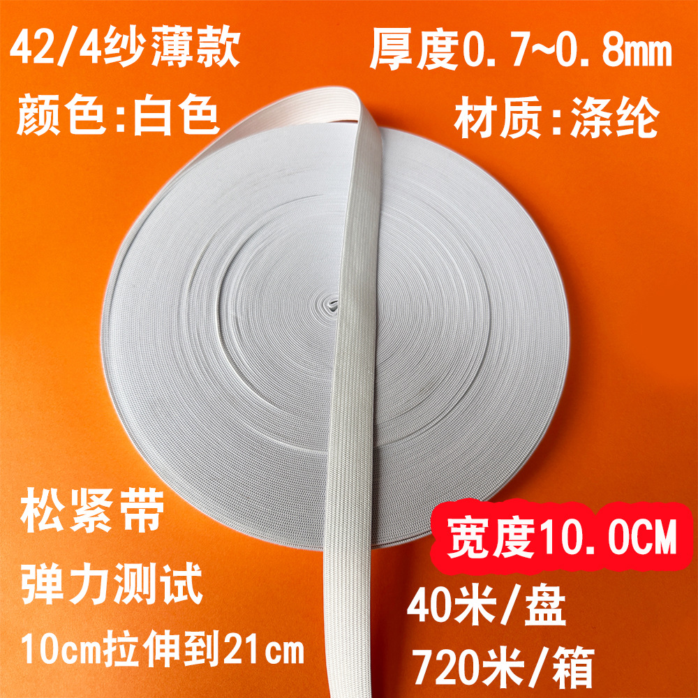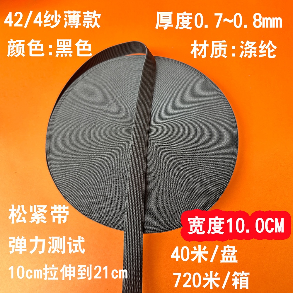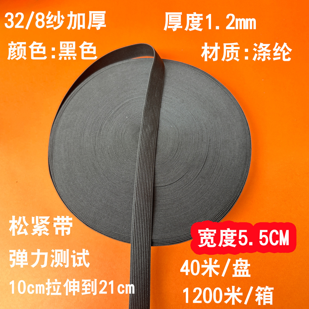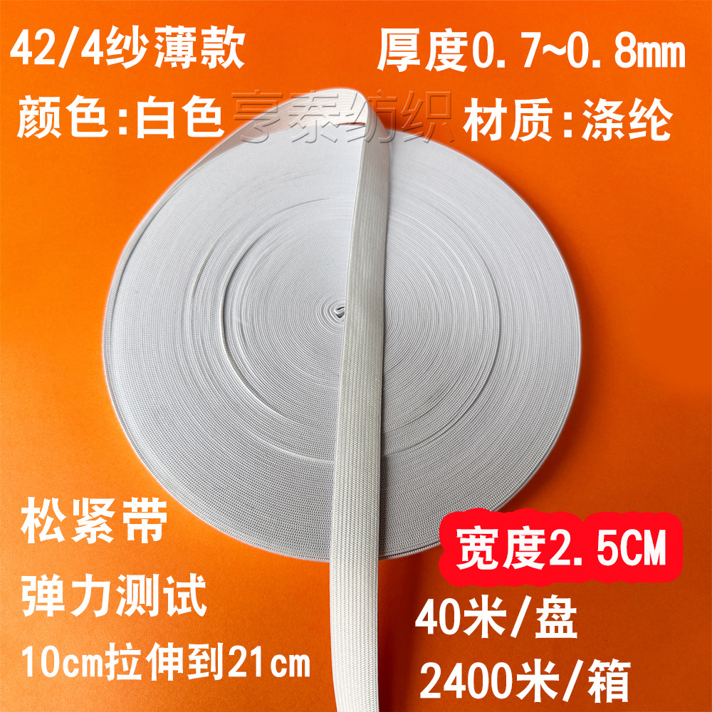 钩编松紧带 宽度0.6~10cm 厚度0.7~1.3mm 拉伸比 10厘米拉伸到21厘米